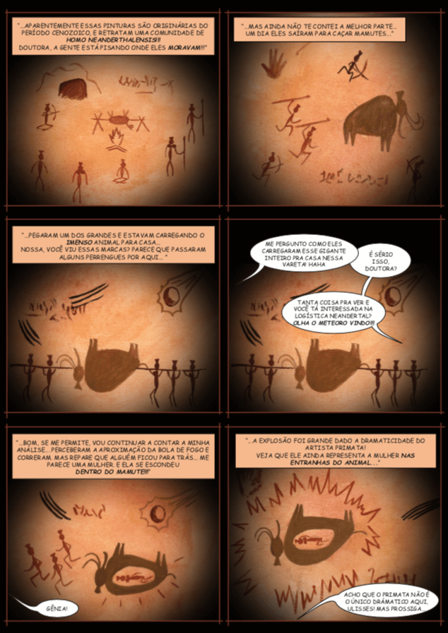 Personagem: O quadrinho mostra uma arqueóloga descobrindo através de pinturas em uma caverna a primeira heroína (período Cenozoico). Uma mulher se escondeu em um mamute ao ver um cometa cair. Com a explosão a mulher sofreu uma mutação e se fundiu com o Mamute, tornando-se a Megalamute, e com seus poderes começou a proteger todos da sua aldeia.