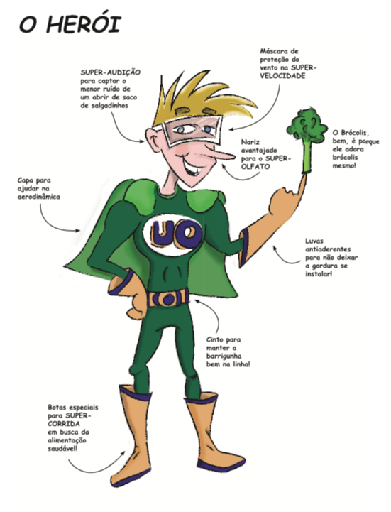 Personagem: O Ultra Orgânico, também conhecido como UÓ veio para salvar as pessoas de uma alimentação ruim, combatendo alguns vilões cruéis como os agrotóxicos, açúcares, corantes, conservantes e etc... Substituindo alimentos ruins por alimentos saudáveis, nutritivos, e claro, orgânicos.
