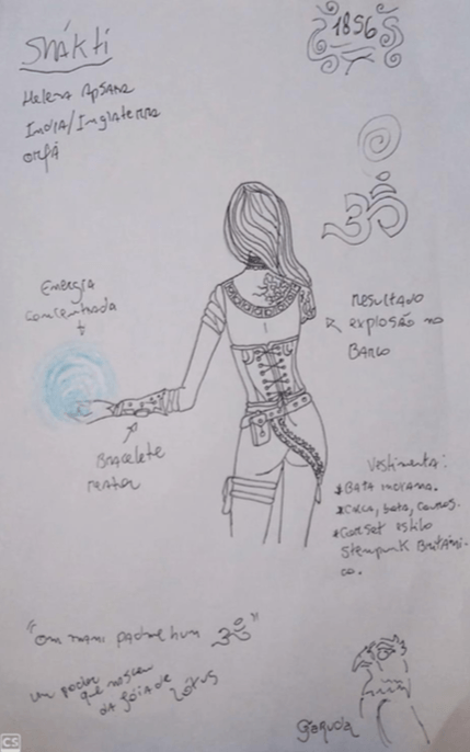Personagem: Laila, ainda criança teve seus pais assassinados e foi criada por sua tia. Elas sempre tiveram que se esconder, pois Laila era uma criatura da noite, e sentia que seus poderes eram mais fortes na escuridão. Ela sempre precisa se esconder quando vai treinar seus poderes, mas sente que um dia quer ajudar algumas pessoas, não o povo que assassinou seus pais, mas as pessoas que sentir que valem a pena salvar.