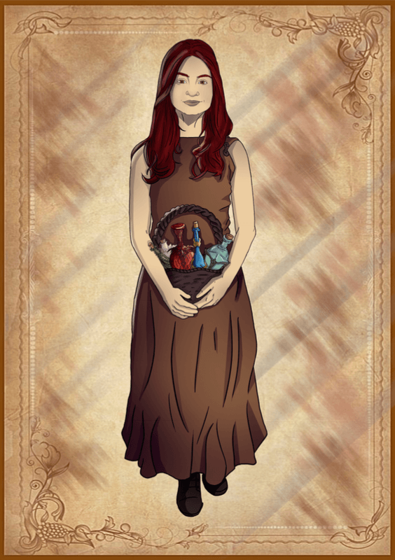 Personagem: Guerreira com poderes divinos. Protege seu vilarejo de saqueadores e monstros.