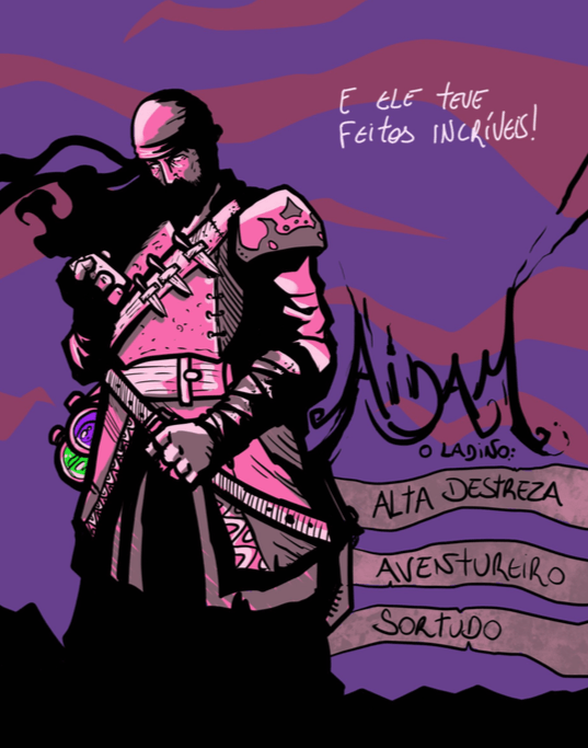 Personagem: O personagem é o próprio autor que encontra em Aidan, seu personagem nos jogos de RPG e no seu grupo, a fantasia de ser um grande herói, enfrentando Orcs, dragões e outros perigos. Ao ficar mais velho, Diego ficou com as lições de coragem e determinação, e hoje não precisa mais dos dados, ele faz sua própria sorte, claro que isso não o impede de revisitar o herói da fantasia.