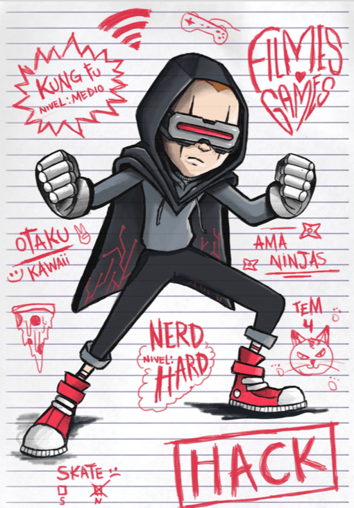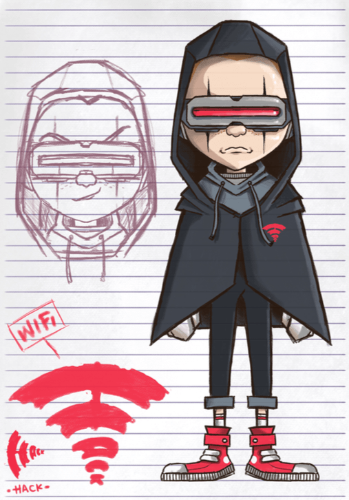 Personagem: Shad Red é um garoto de 16 anos que é apaixonado por ciências. Em uma feira de ciências ao realizar a apresentação de um dispositivo capaz de ativar aparelhos por meio de movimentos algo inexplicável aconteceu dando poderes de controlar e se comunicar com aparelhos. Shad então se torna o Hack e decidi usar seus novos poderes para melhorar o sistema e ajudar os indefesos e injustiçados.