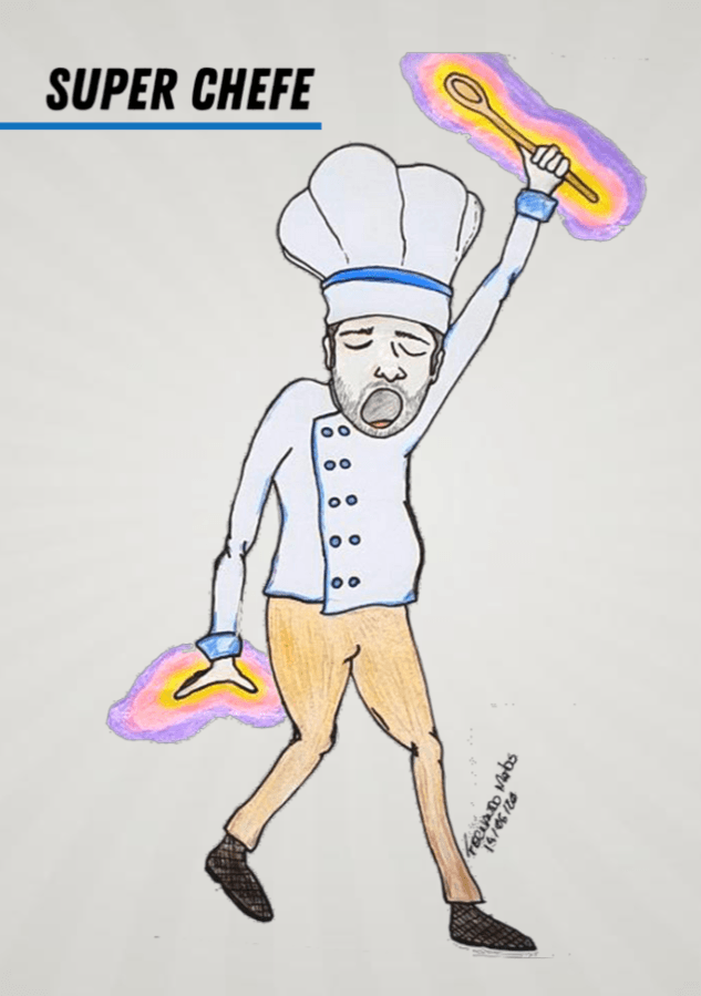 Personagem: Fernando, um homem jovem, recebe a notícia que o mundo está enfrentando uma Pandemia e que terá que ficar em casa em isolamento. Para passar o tempo ele tenta fazer alguns cursos e o que mais gosta de aprender é gastronomia. Um dia foi levar o lixo para fora junto com seu cachorro Sírius, foi quando um meteoro caiu no seu quintal, causando uma grande explosão. Aquele acidente lhe deu super poderes de transformar qualquer comida em um alimento divino e foi assim que ele se tornou o Super Chefe!