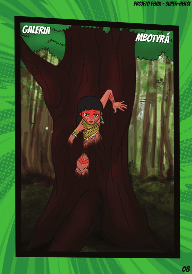 Personagem: Mbotyrá é uma índia que ganhou seus poderes ainda criança. Durante um embate, seus pais esconderam-na dentro de uma árvore sagrada. Após sua tribo ser dizimada por seringueiros e madeireiros, o Deus das florestas Tane-Mahuta concedeu toda a energia e poderes daquela árvore para que ela se torna-se a nova guardiã das florestas, sempre contando com a ajuda do seu amigo Tukana.