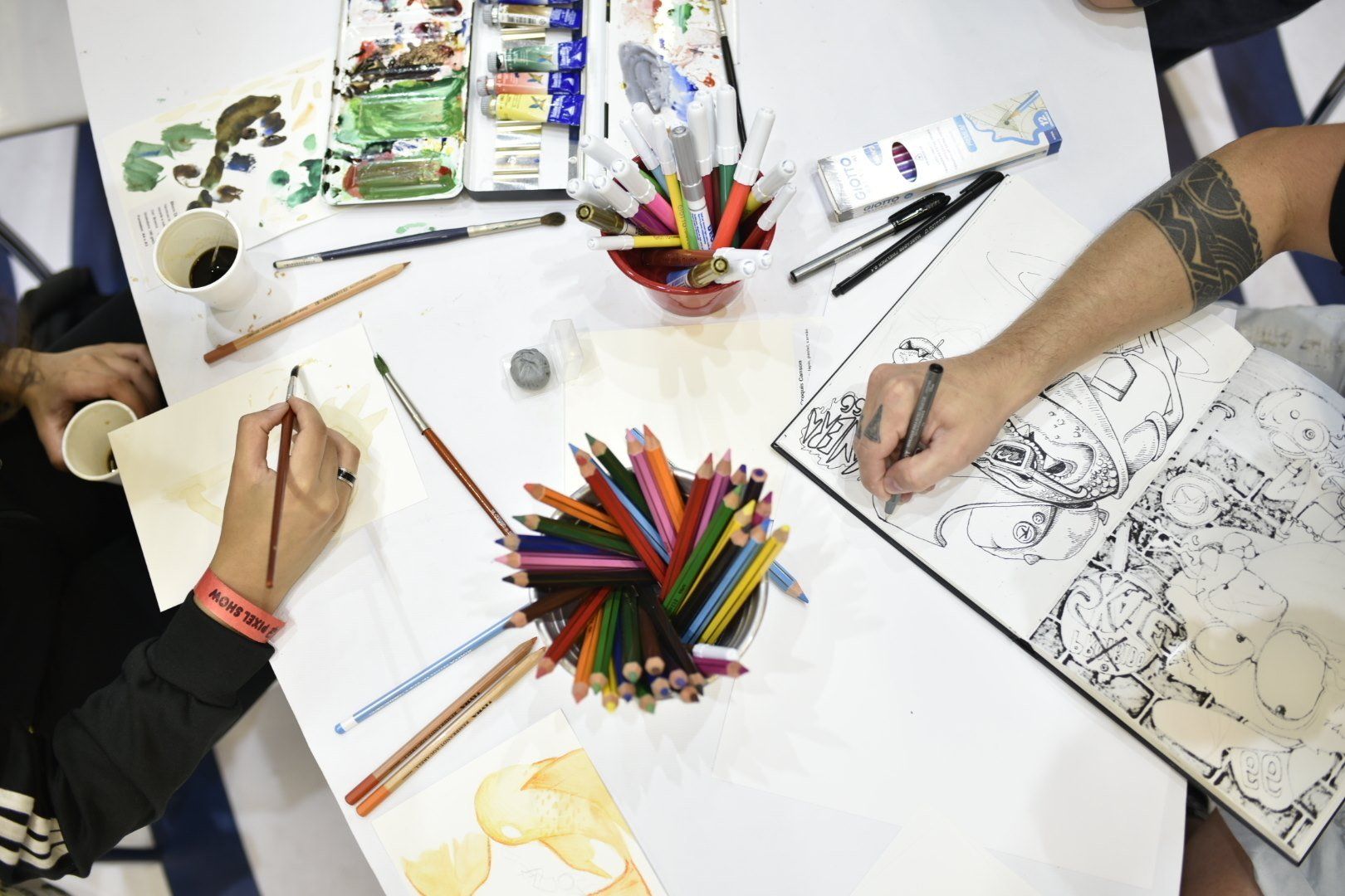 O público também pôde aprender na prática participando de workshops. Este ano deve ter sido bem difícil de escolher, porque foram realizados 40 workshops! Rolou de tudo um pouco, ilustração, bordado, paper craft, colagem, lambe-lambe, aquarela, lettering, encadernação, diagramação.... e escultura.