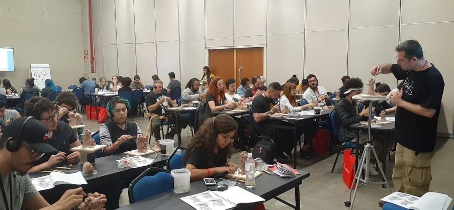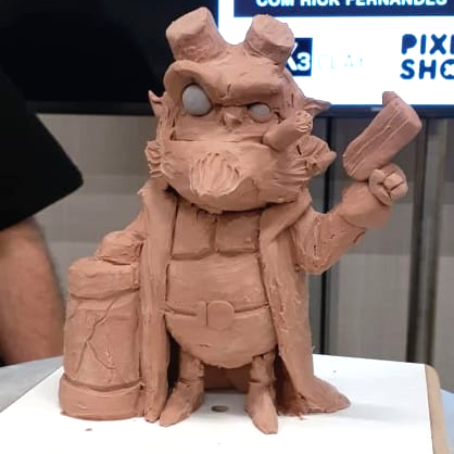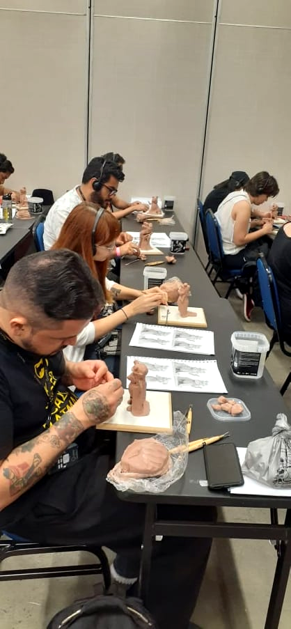 Além do workshop de escultura do Rick, o pessoal pode contar com mais 3 workshops de escultura oferecidos por nossos amigos Ricardo Zacariotti modelando o Banguela, o Henrique Rainha modelando a Coraline, e o Heleno Lyra modelando o irmão do Jorel.