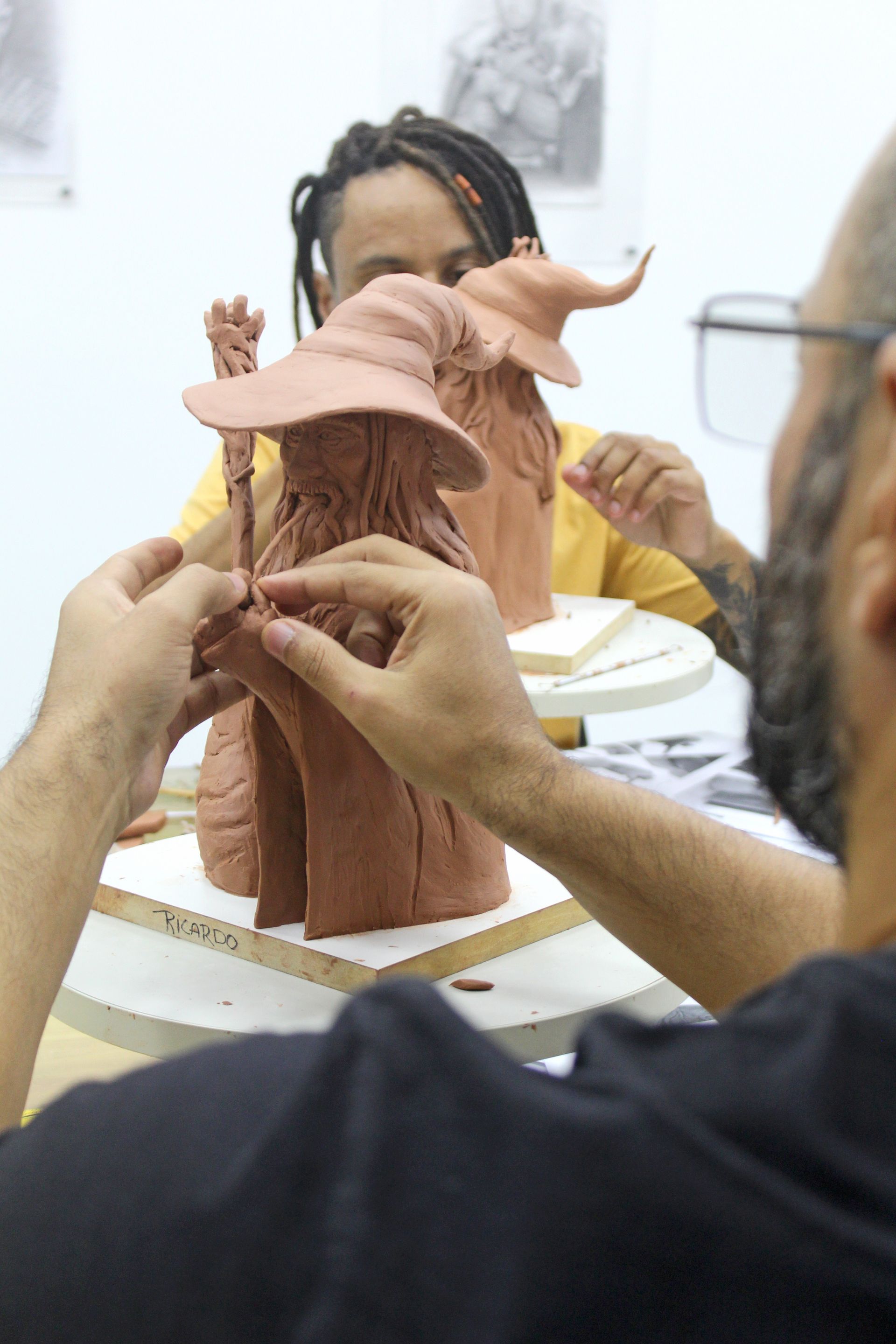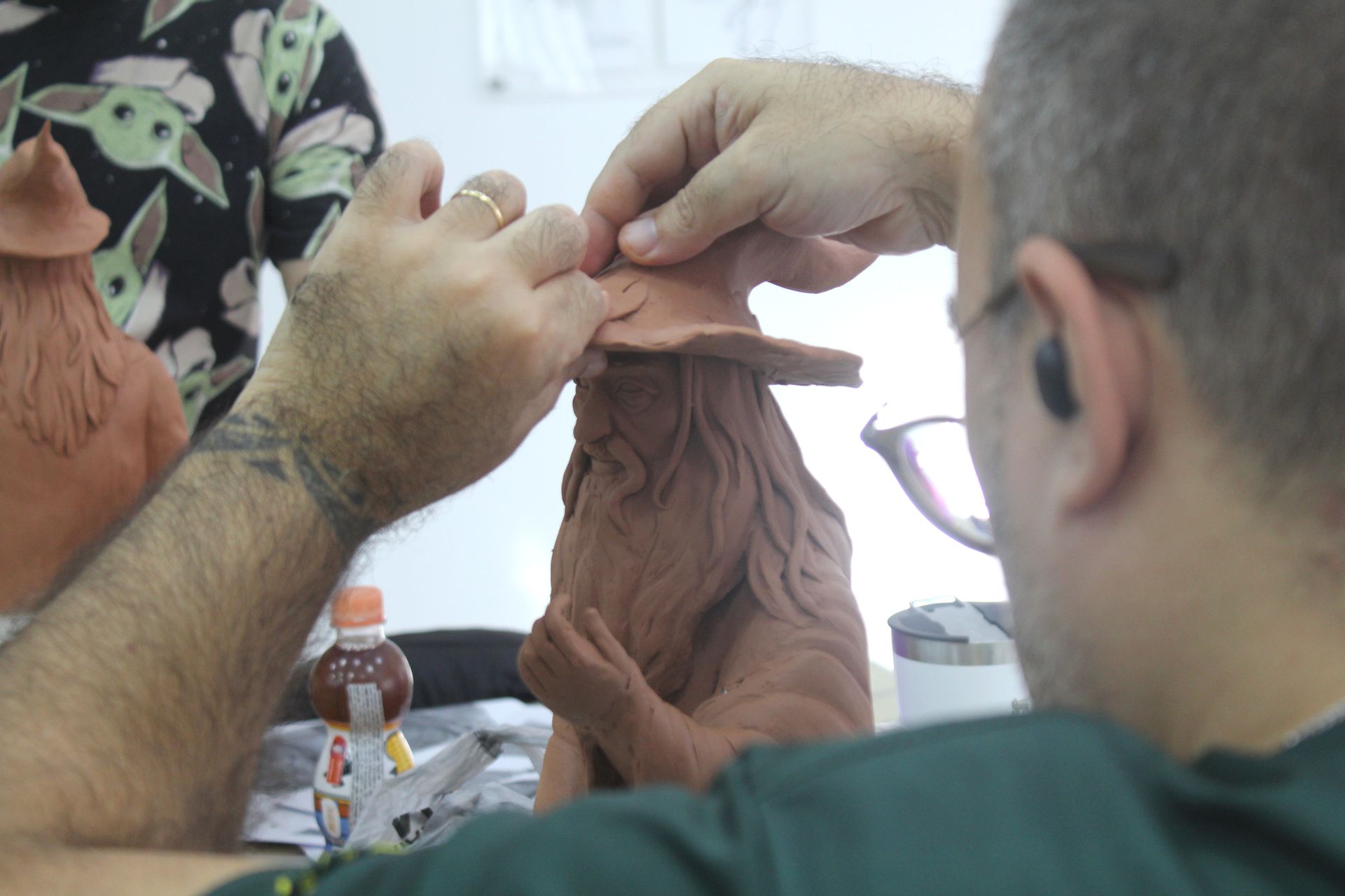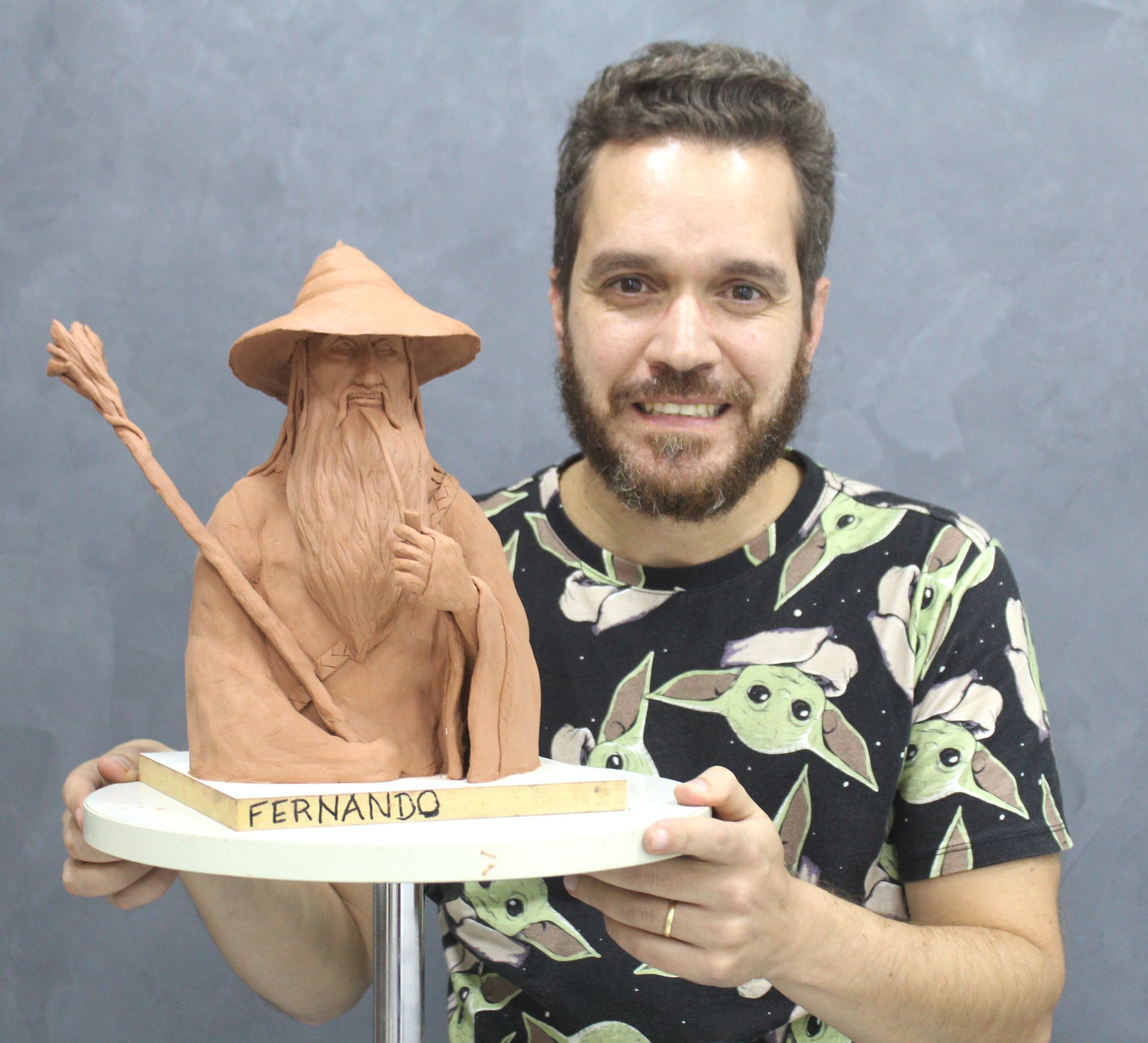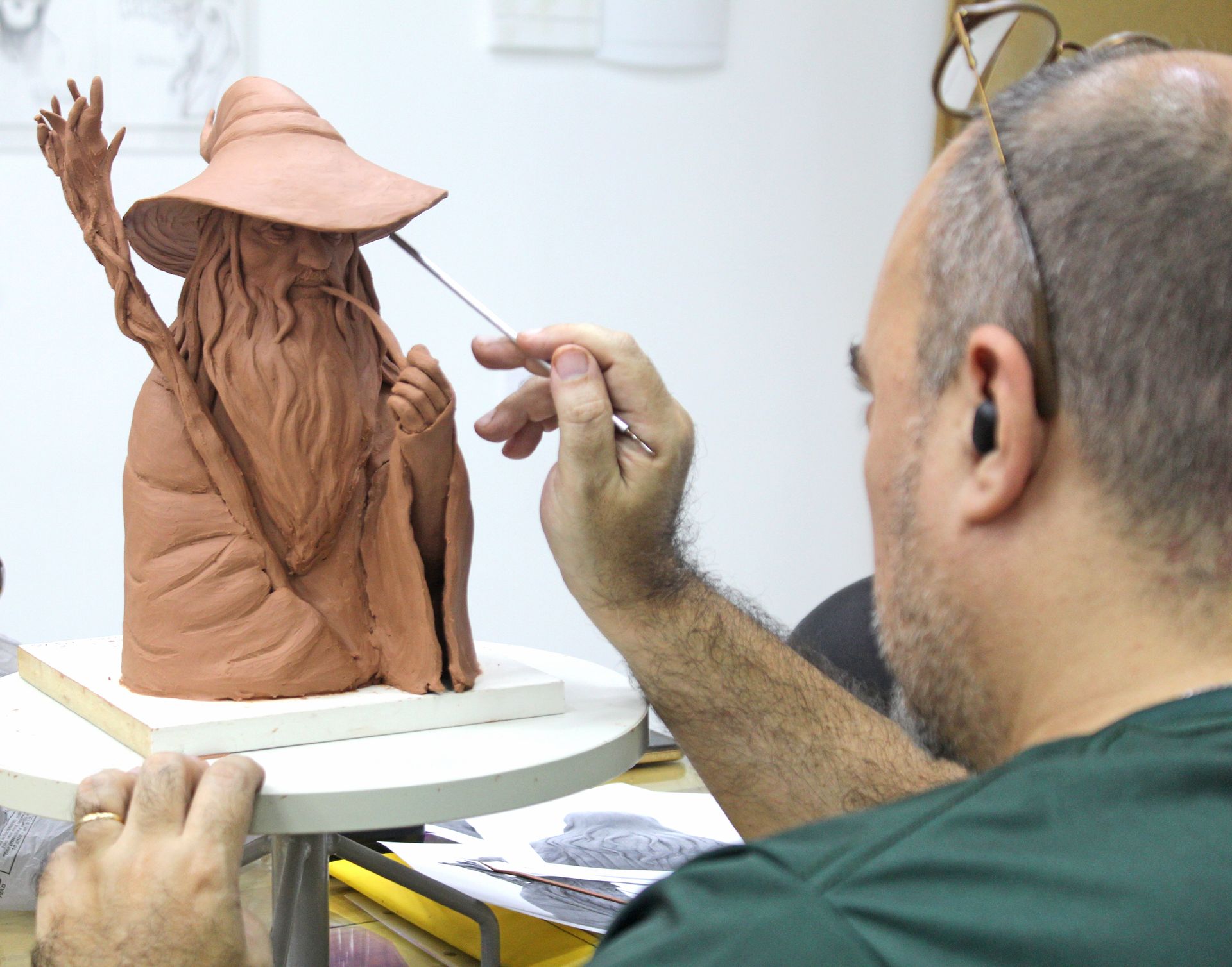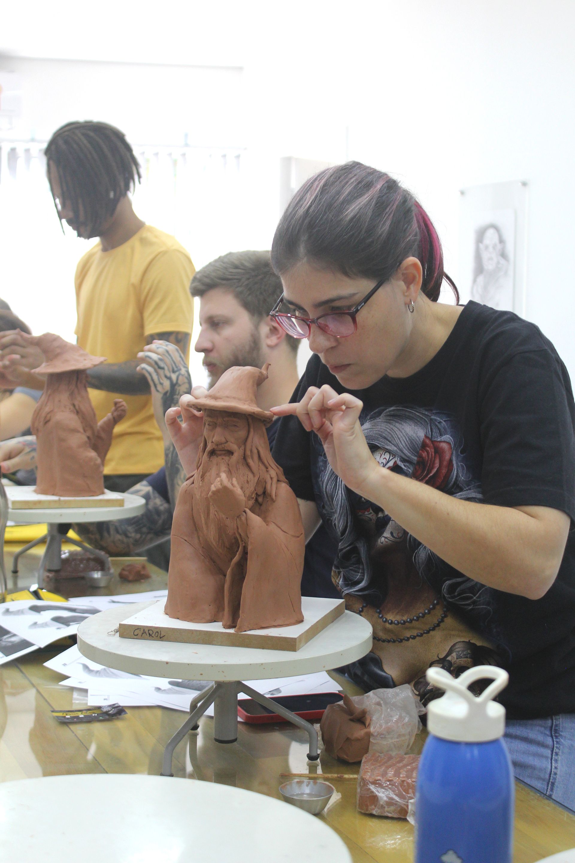 E essa foi a segunda turma do Workshop do Gandalf! Alguns alunos voltaram para aprender as peculiaridades deste personagem. Outros vieram ao nosso Studio pela primeira vez. Alguns iniciantes e outros já modelavam em outros materiais como argila e biscuit. Sempre existe uma troca de informações e experiências, me sinto sempre renovado, pois também gosto de aprender com meus alunos! Foram dois dias e meio muito divertidos! É cansativo... puxado... mas com certeza damos boas risadas no processo. Muito obrigado a todos os alunos que participaram, agradeço a dedicação e por confiarem no nosso trabalho! As esculturas ficaram muito bonitas! Parabéns galera! Agradeço a minha equipe, que está sempre pronta para me ajudar! Cendy Polcaro, Dany Dje e João Fernandes. Com vocês tudo fica mais fácil e divertido. Os alunos produziram a escultura do Gandalf em plastilina soft do Maya Clay. Abaixo você pode ver um pouco das fotos do processo.