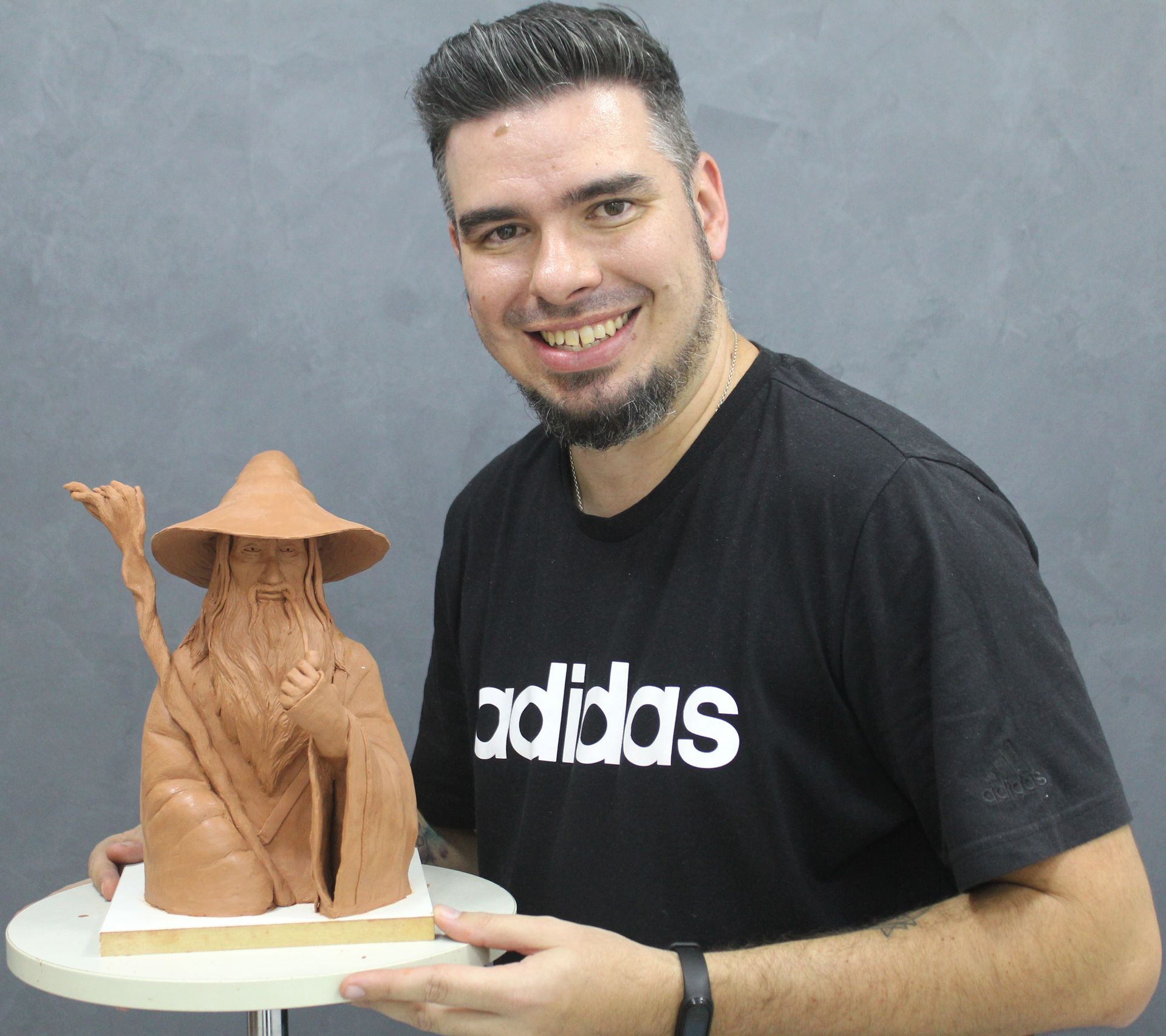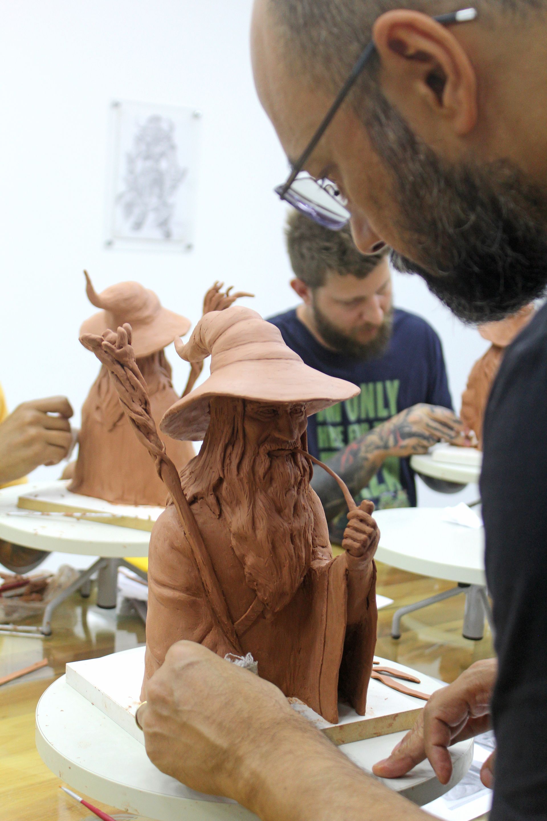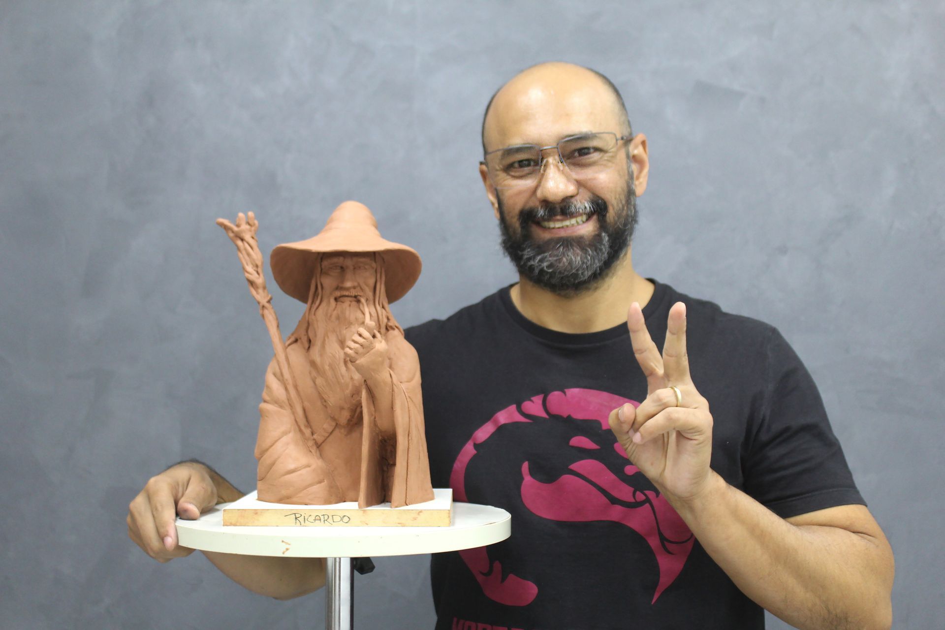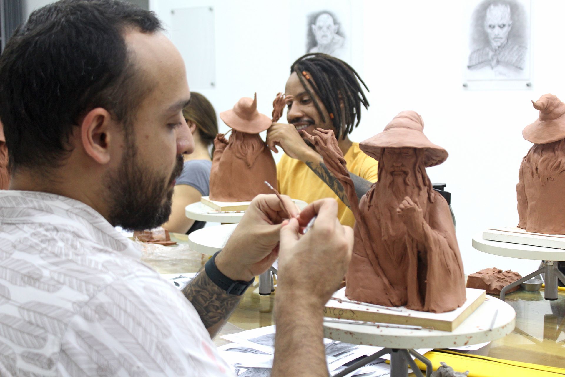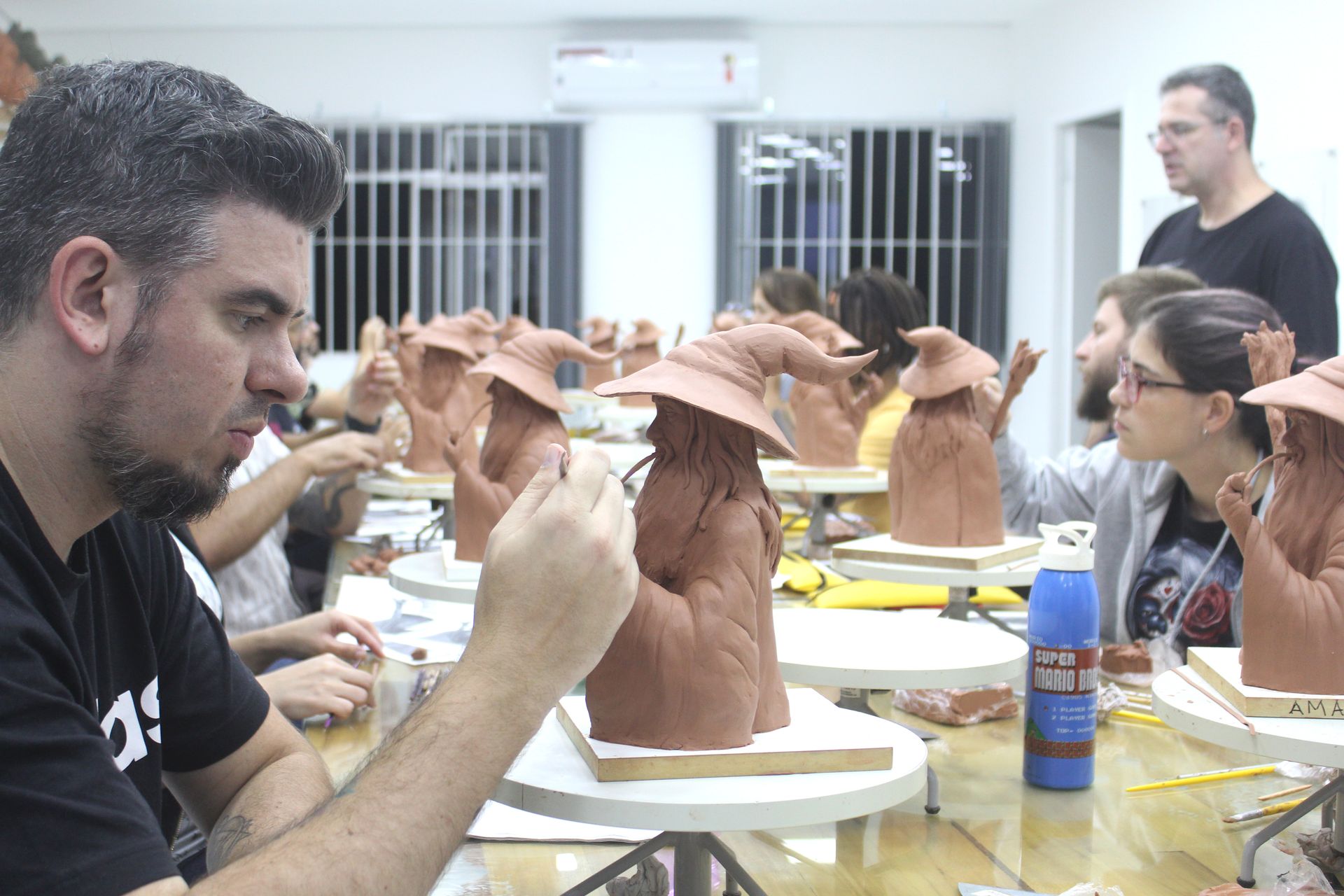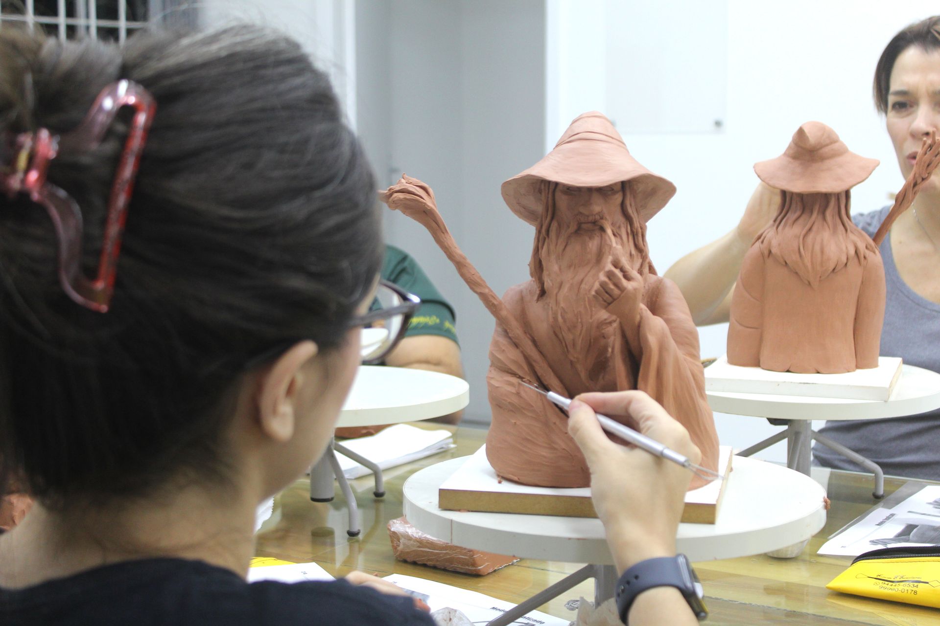 E essa foi a segunda turma do Workshop do Gandalf! Alguns alunos voltaram para aprender as peculiaridades deste personagem. Outros vieram ao nosso Studio pela primeira vez. Alguns iniciantes e outros já modelavam em outros materiais como argila e biscuit. Sempre existe uma troca de informações e experiências, me sinto sempre renovado, pois também gosto de aprender com meus alunos! Foram dois dias e meio muito divertidos! É cansativo... puxado... mas com certeza damos boas risadas no processo. Muito obrigado a todos os alunos que participaram, agradeço a dedicação e por confiarem no nosso trabalho! As esculturas ficaram muito bonitas! Parabéns galera! Agradeço a minha equipe, que está sempre pronta para me ajudar! Cendy Polcaro, Dany Dje e João Fernandes. Com vocês tudo fica mais fácil e divertido. Os alunos produziram a escultura do Gandalf em plastilina soft do Maya Clay. Abaixo você pode ver um pouco das fotos do processo.
