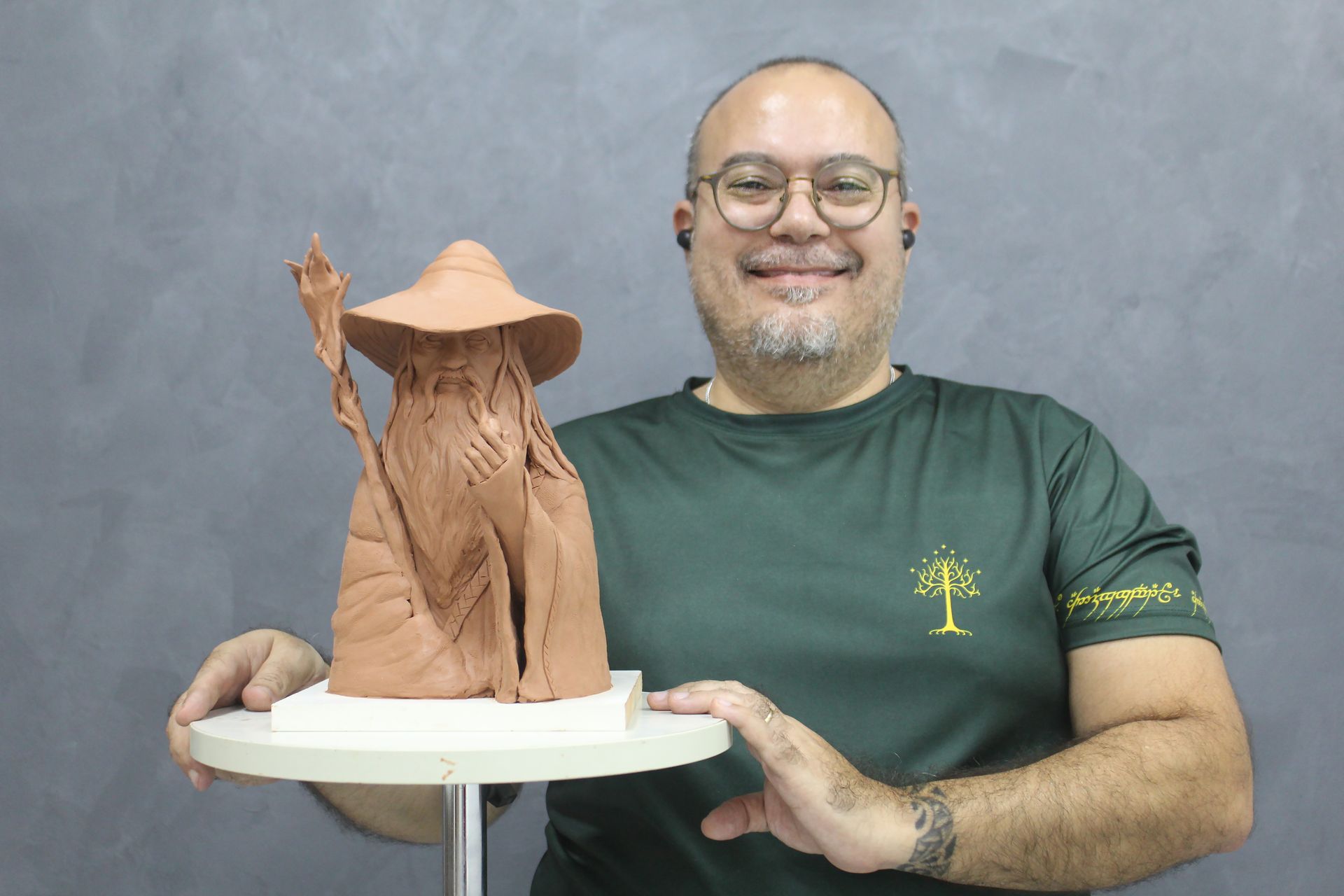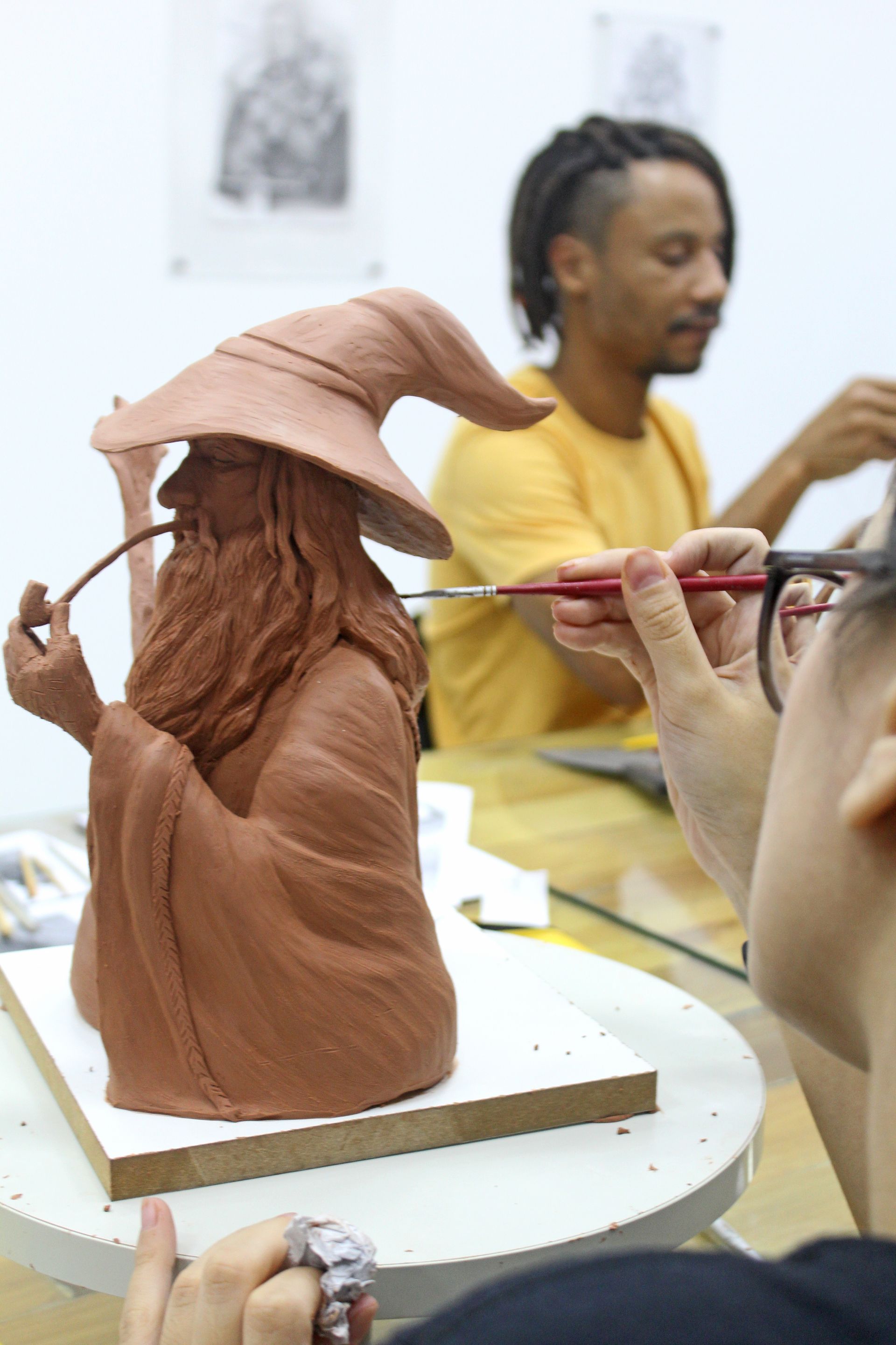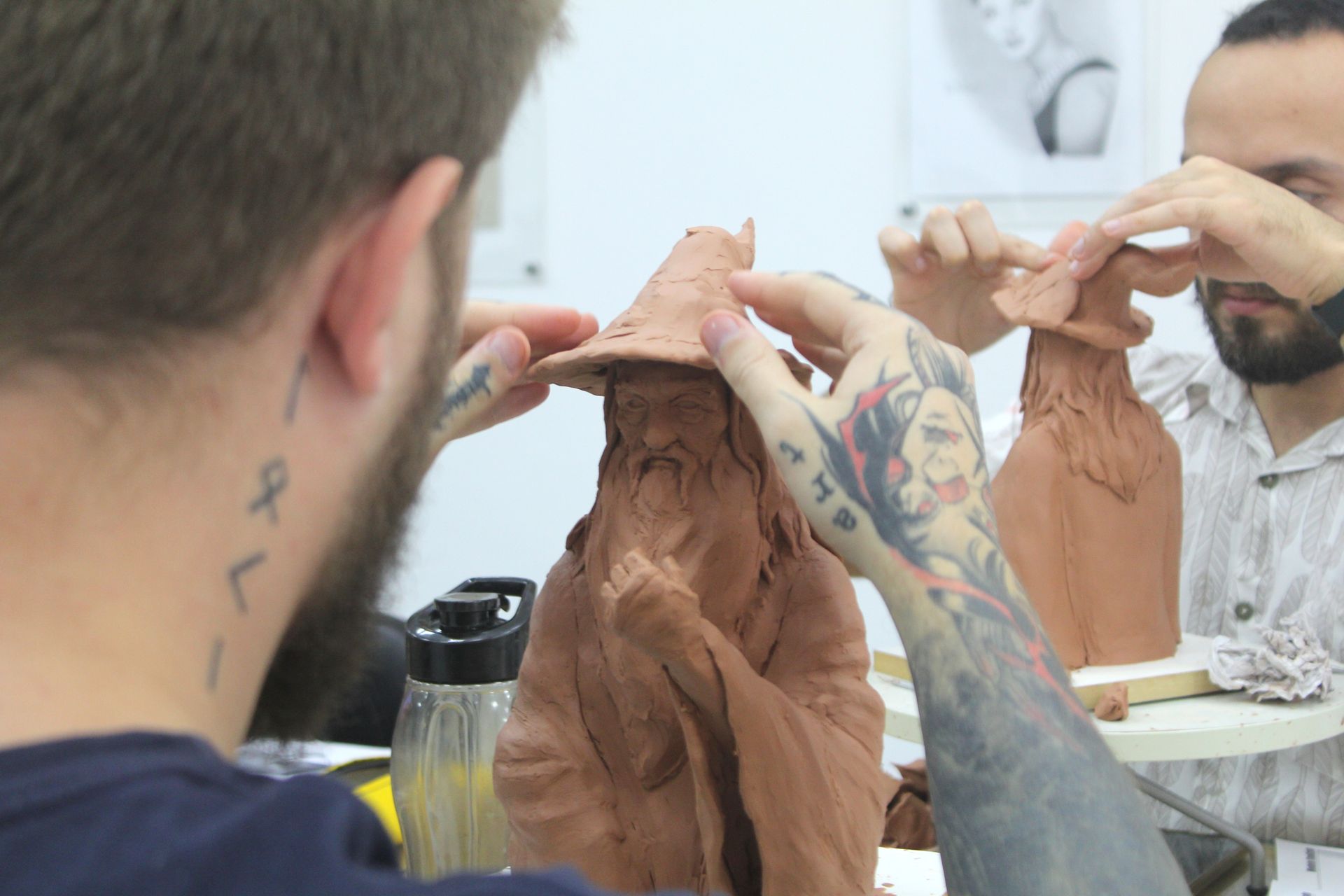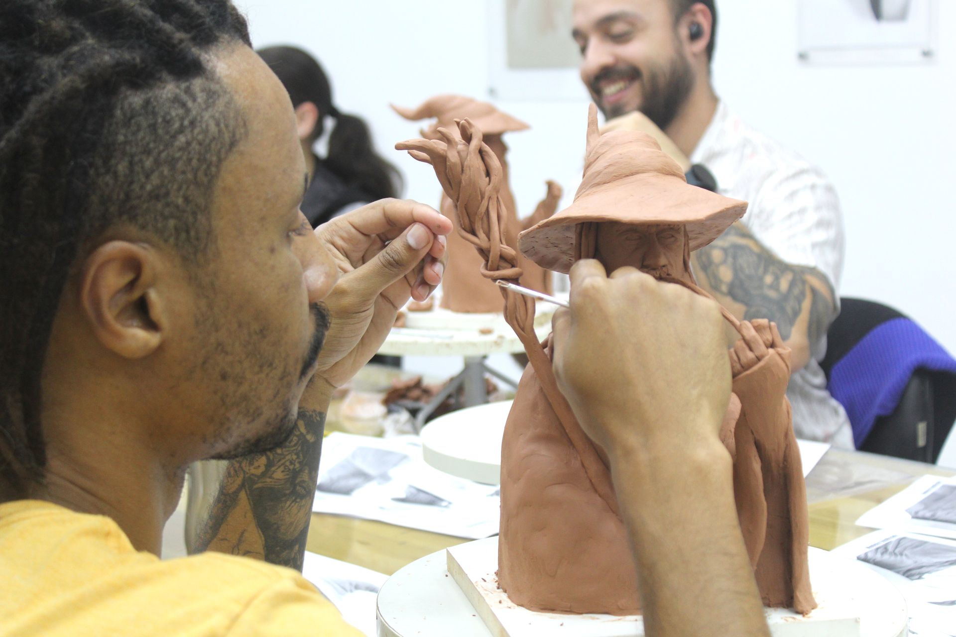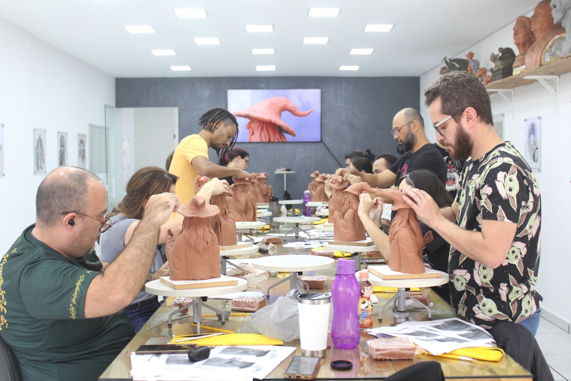 E essa foi a segunda turma do Workshop do Gandalf! Alguns alunos voltaram para aprender as peculiaridades deste personagem. Outros vieram ao nosso Studio pela primeira vez. Alguns iniciantes e outros já modelavam em outros materiais como argila e biscuit. Sempre existe uma troca de informações e experiências, me sinto sempre renovado, pois também gosto de aprender com meus alunos! Foram dois dias e meio muito divertidos! É cansativo... puxado... mas com certeza damos boas risadas no processo. Muito obrigado a todos os alunos que participaram, agradeço a dedicação e por confiarem no nosso trabalho! As esculturas ficaram muito bonitas! Parabéns galera! Agradeço a minha equipe, que está sempre pronta para me ajudar! Cendy Polcaro, Dany Dje e João Fernandes. Com vocês tudo fica mais fácil e divertido. Os alunos produziram a escultura do Gandalf em plastilina soft do Maya Clay. Abaixo você pode ver um pouco das fotos do processo.