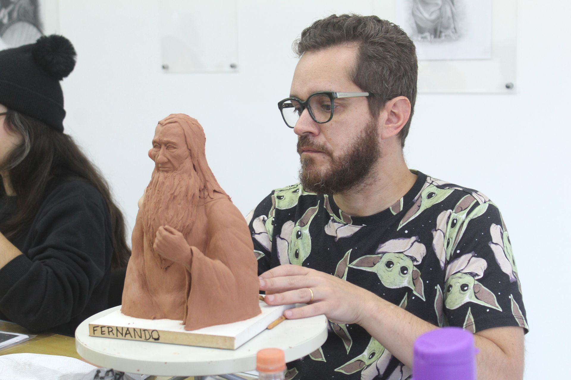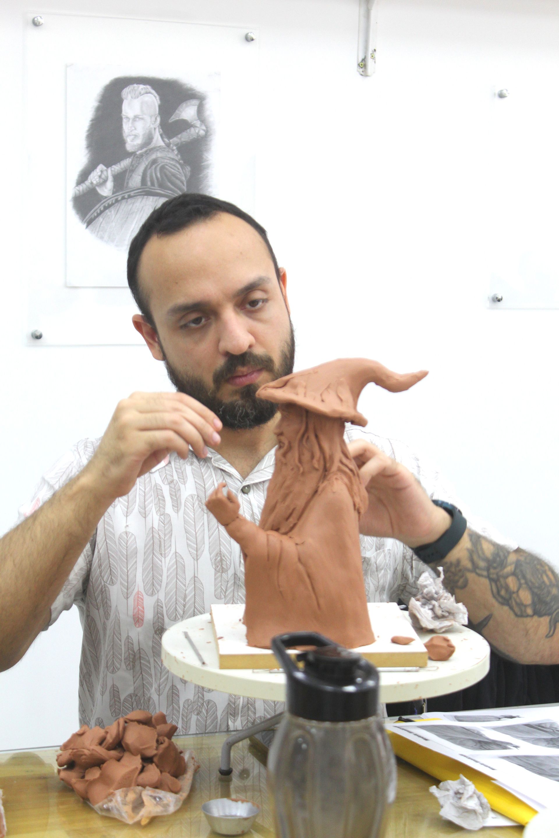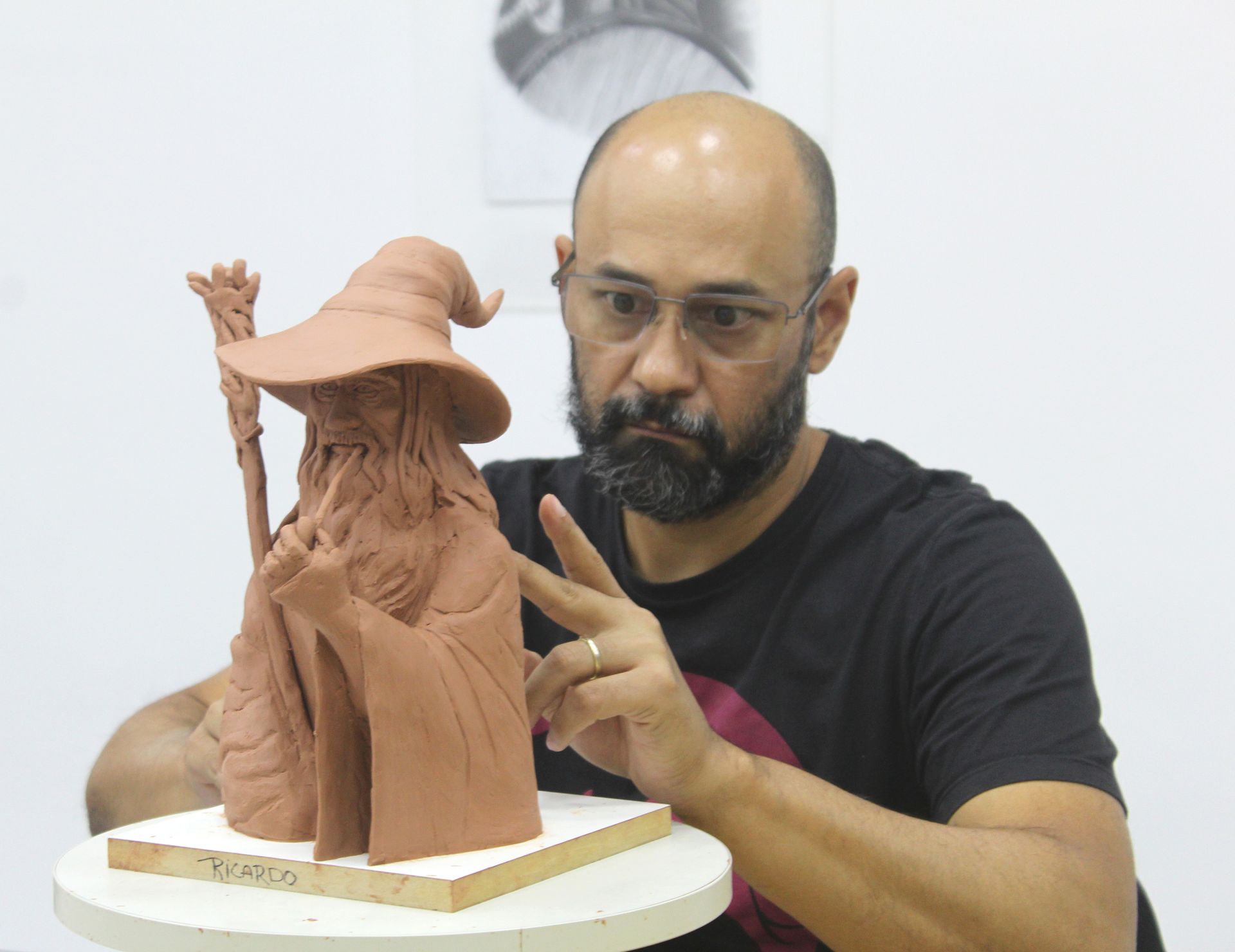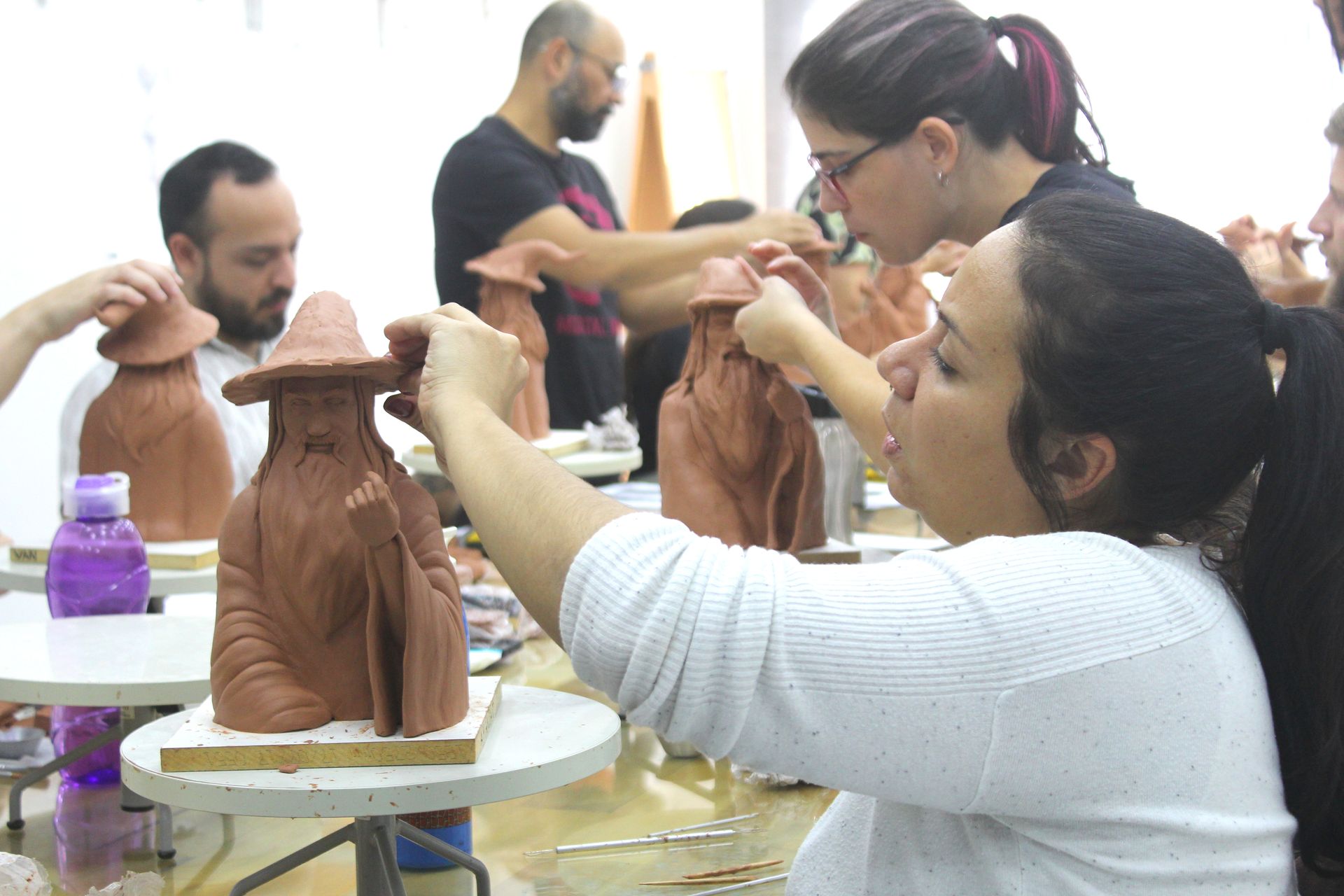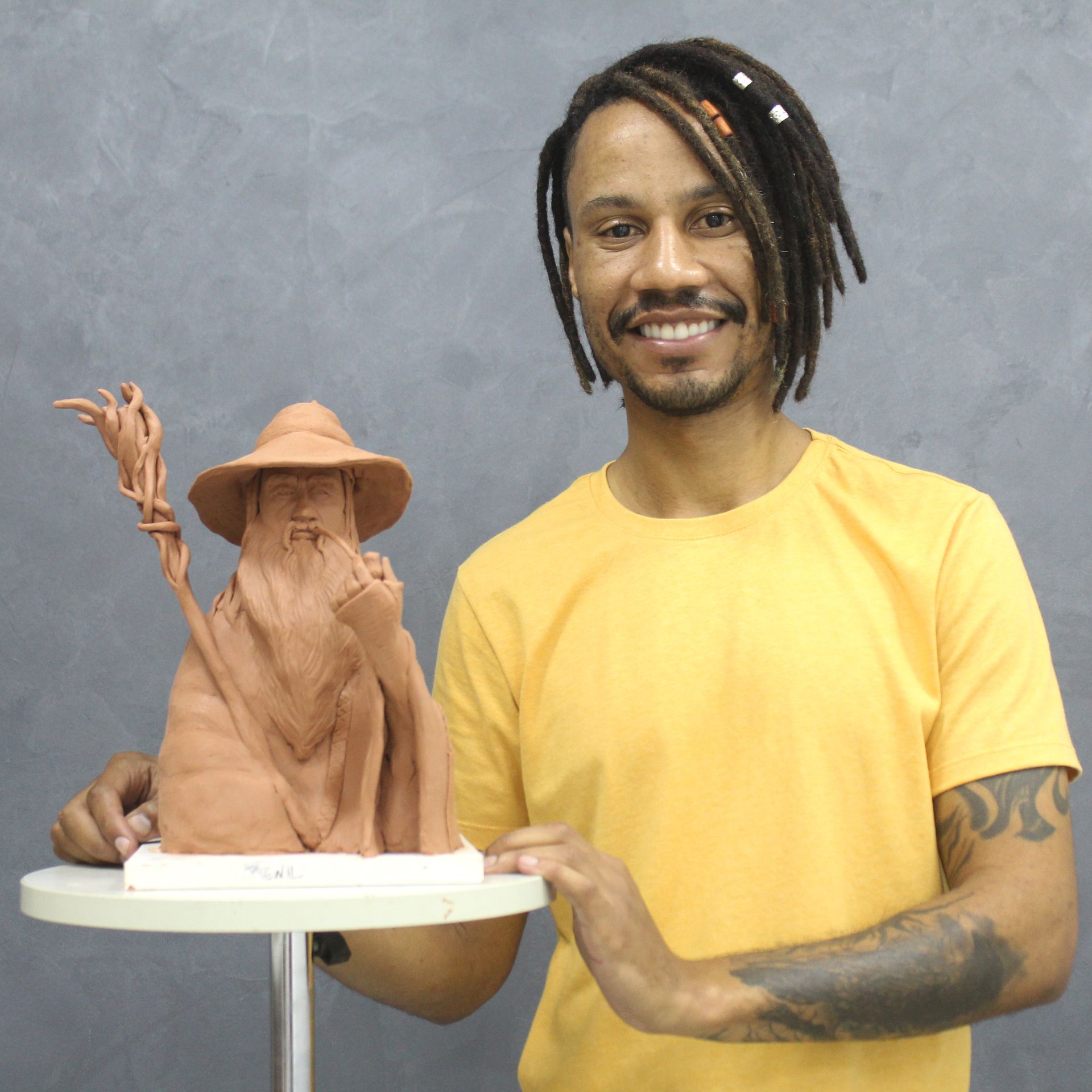 E essa foi a segunda turma do Workshop do Gandalf! Alguns alunos voltaram para aprender as peculiaridades deste personagem. Outros vieram ao nosso Studio pela primeira vez. Alguns iniciantes e outros já modelavam em outros materiais como argila e biscuit. Sempre existe uma troca de informações e experiências, me sinto sempre renovado, pois também gosto de aprender com meus alunos! Foram dois dias e meio muito divertidos! É cansativo... puxado... mas com certeza damos boas risadas no processo. Muito obrigado a todos os alunos que participaram, agradeço a dedicação e por confiarem no nosso trabalho! As esculturas ficaram muito bonitas! Parabéns galera! Agradeço a minha equipe, que está sempre pronta para me ajudar! Cendy Polcaro, Dany Dje e João Fernandes. Com vocês tudo fica mais fácil e divertido. Os alunos produziram a escultura do Gandalf em plastilina soft do Maya Clay. Abaixo você pode ver um pouco das fotos do processo.