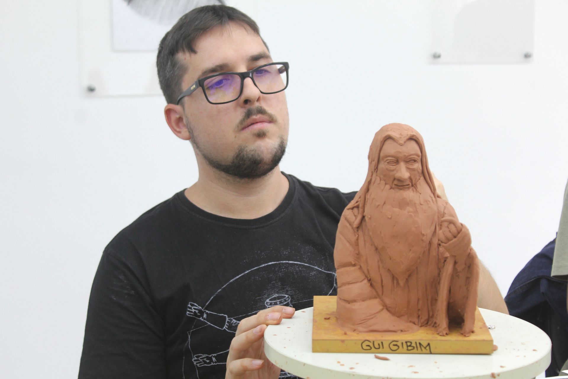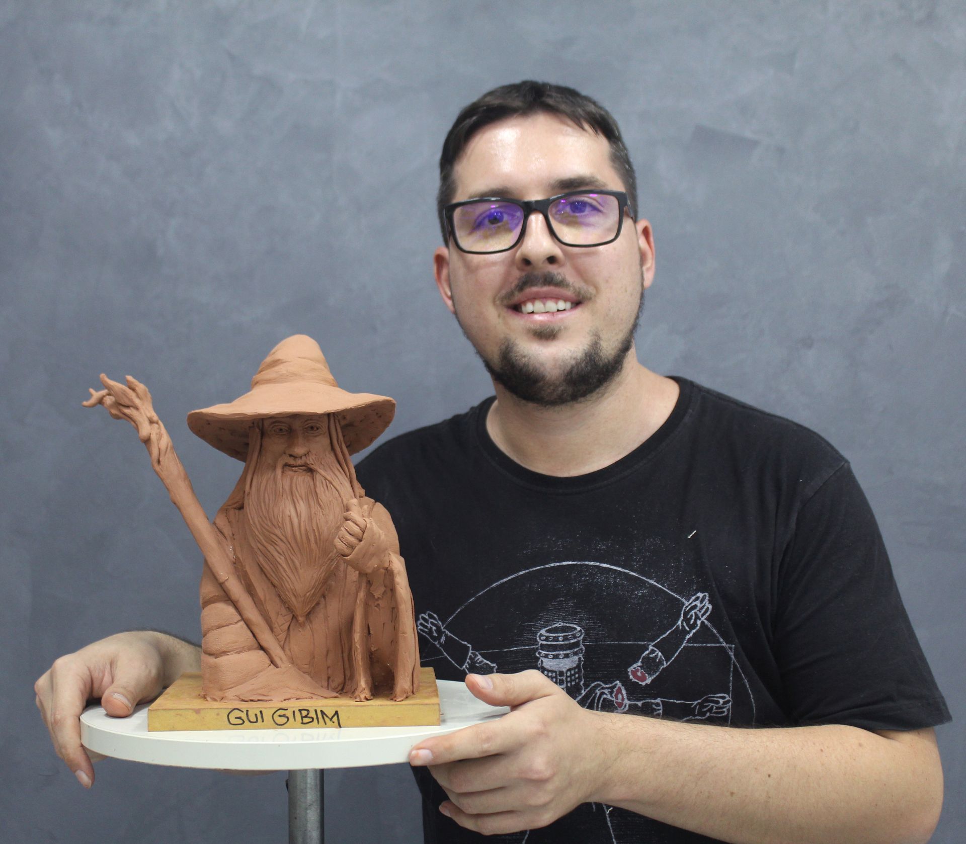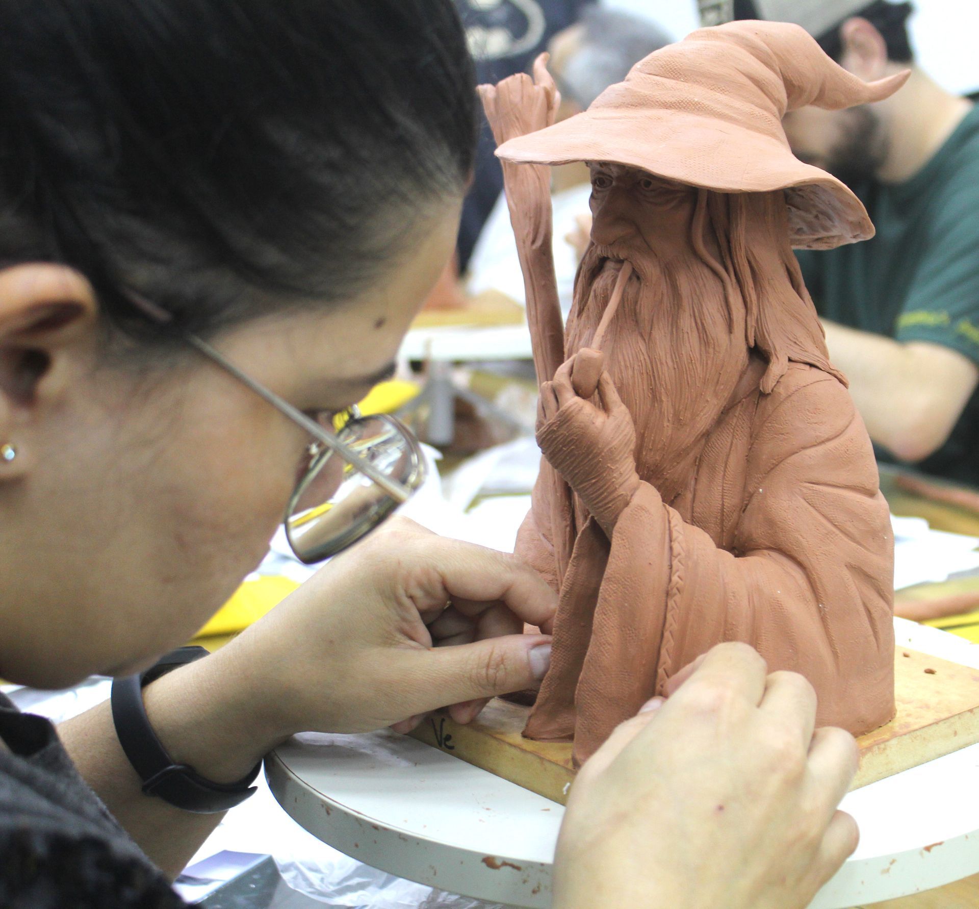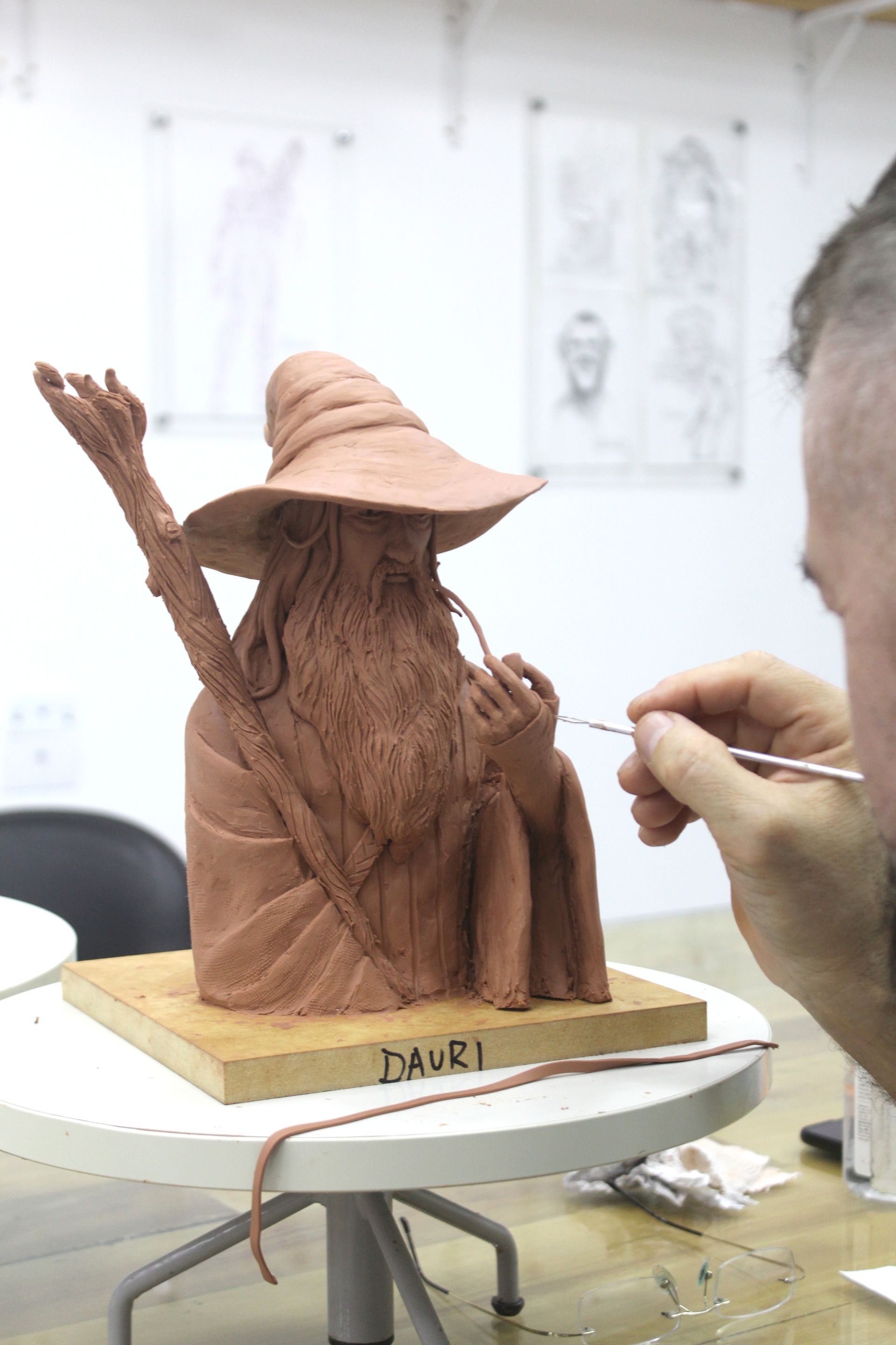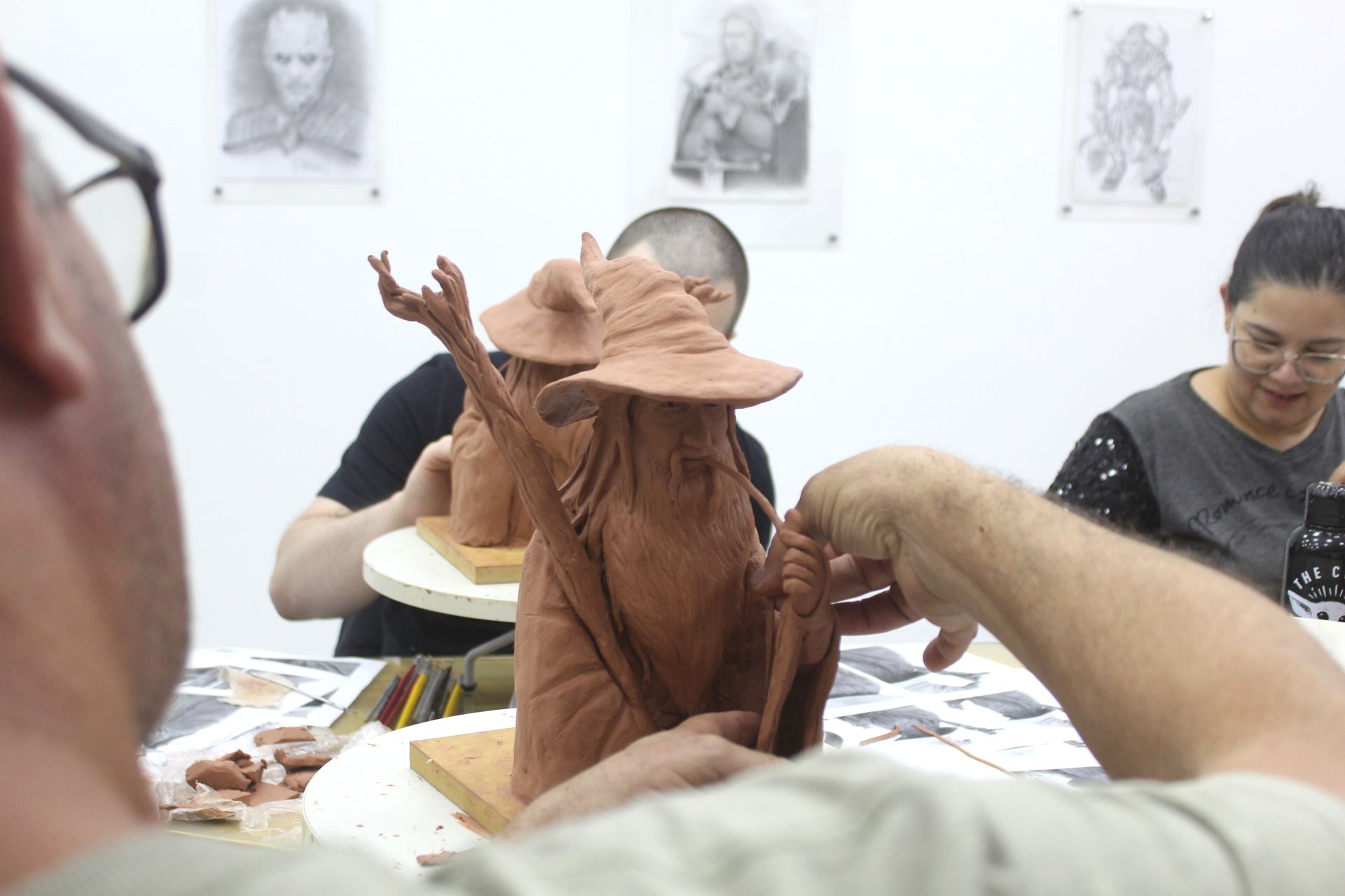 Os alunos produziram a escultura do Gandalf em plastilina soft do Maya Clay.