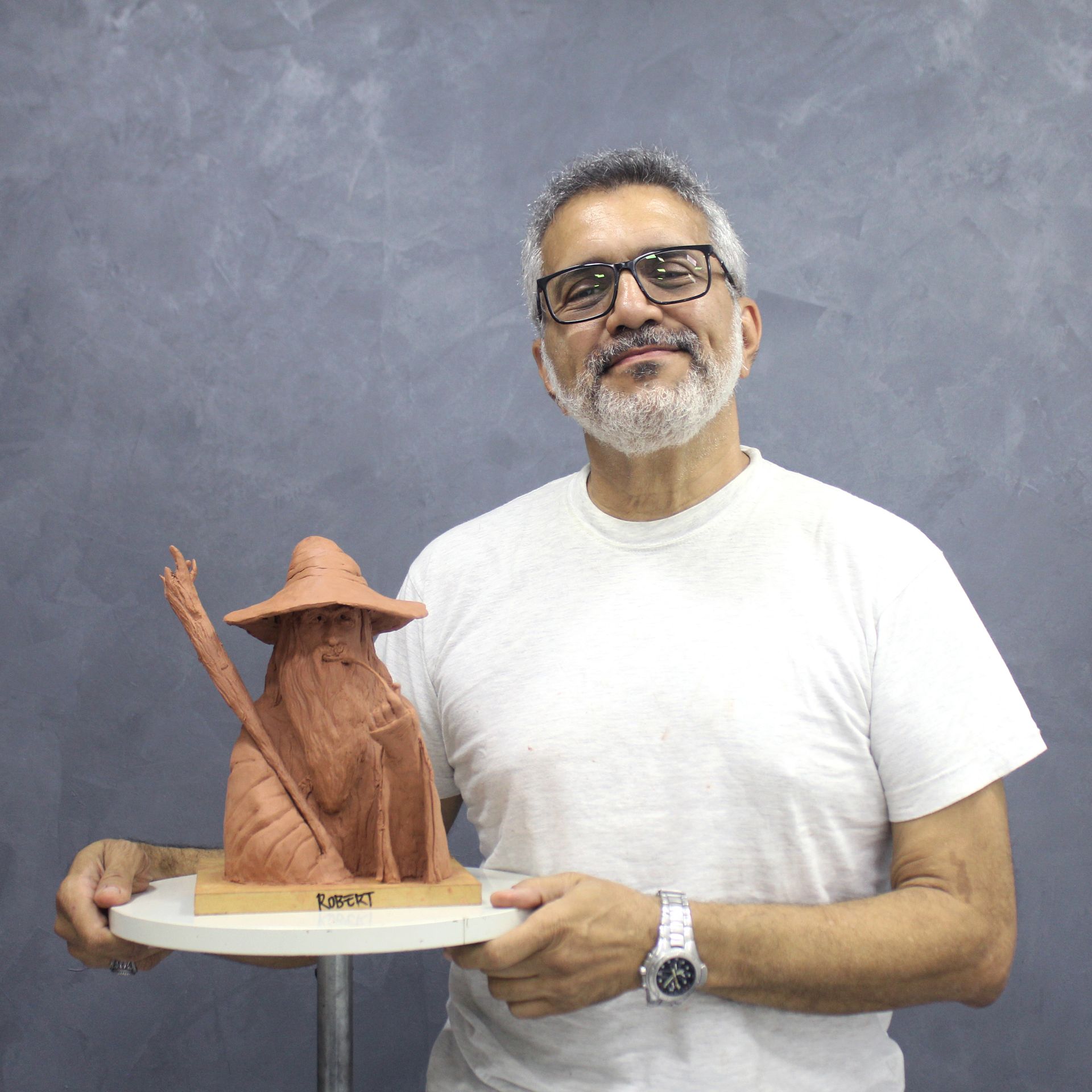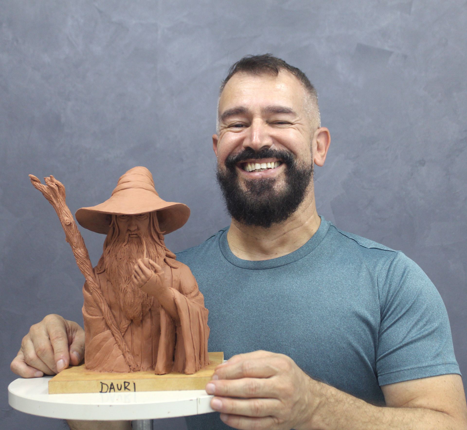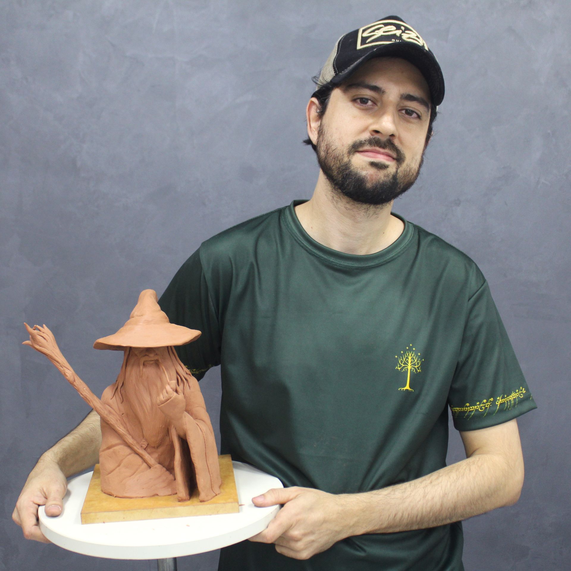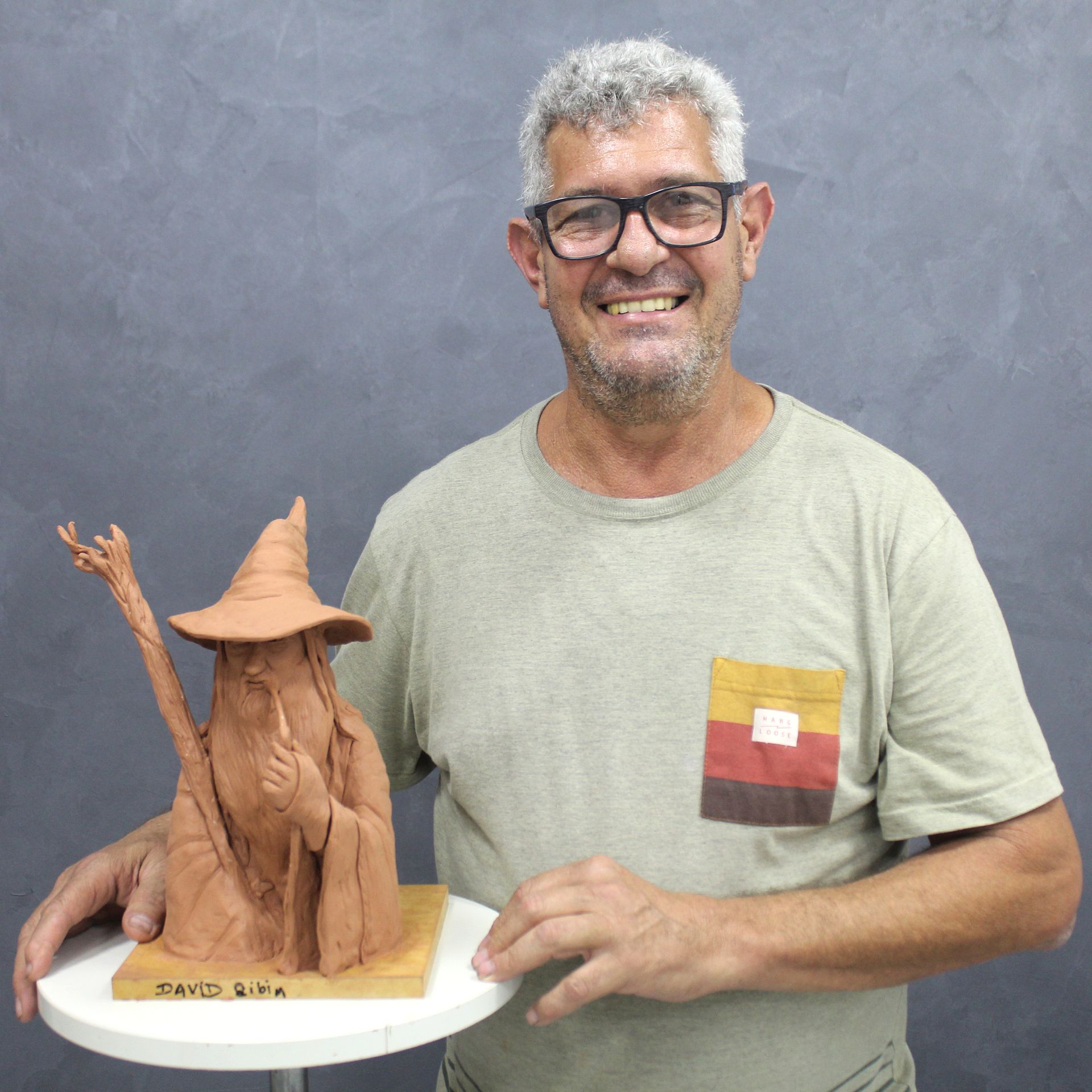 Os alunos produziram a escultura do Gandalf em plastilina soft do Maya Clay.
