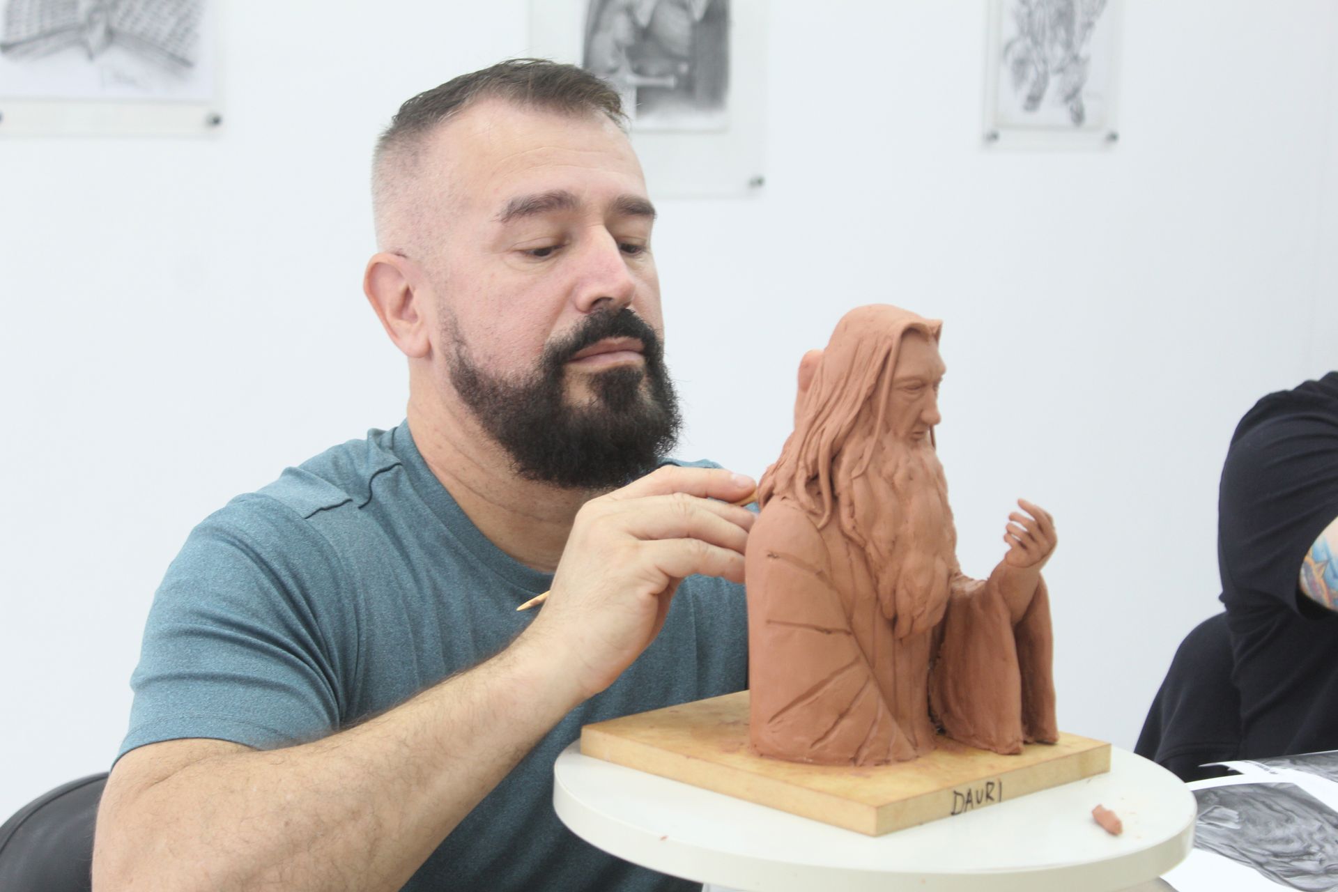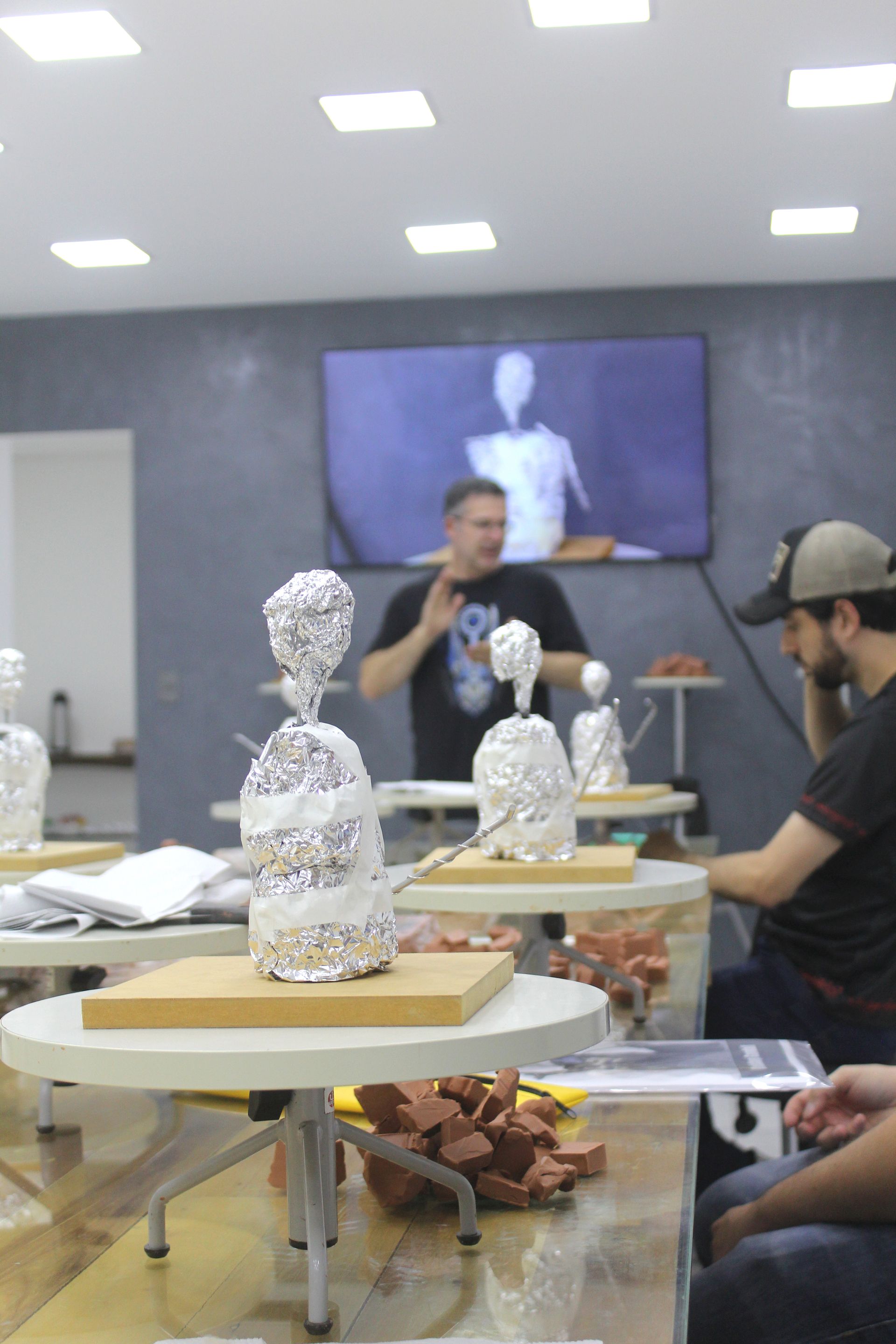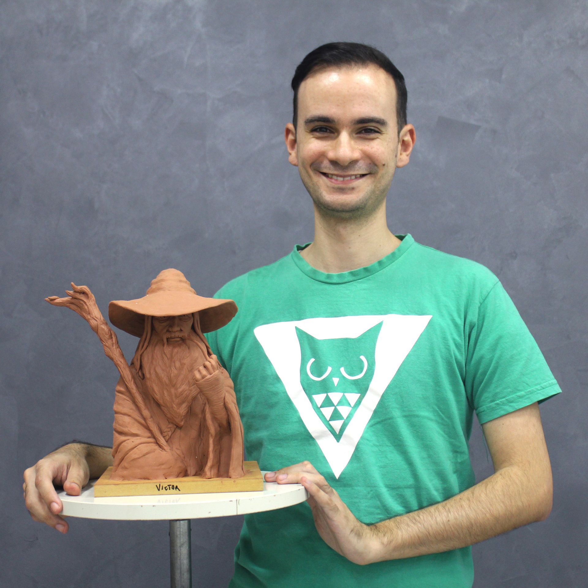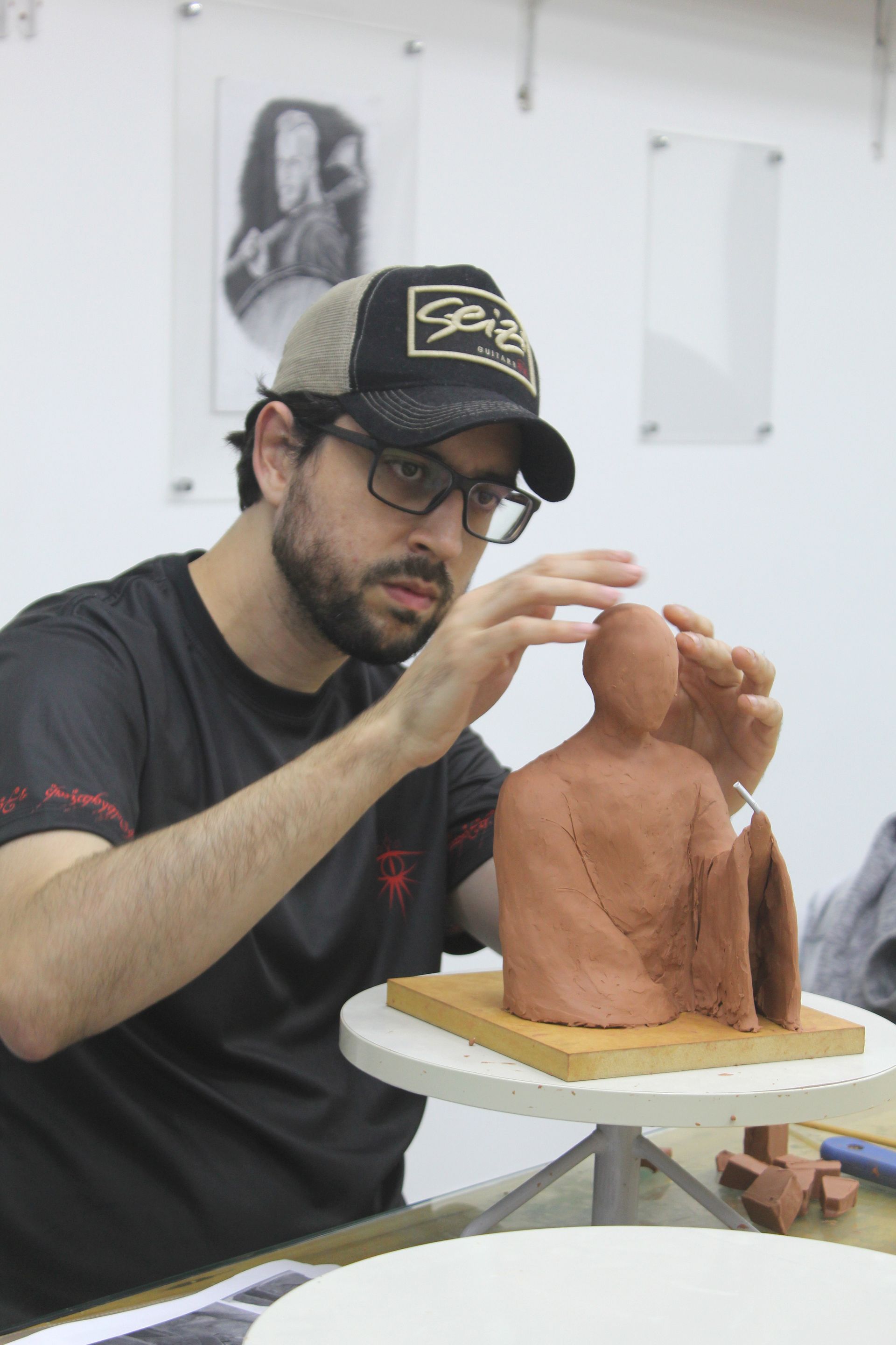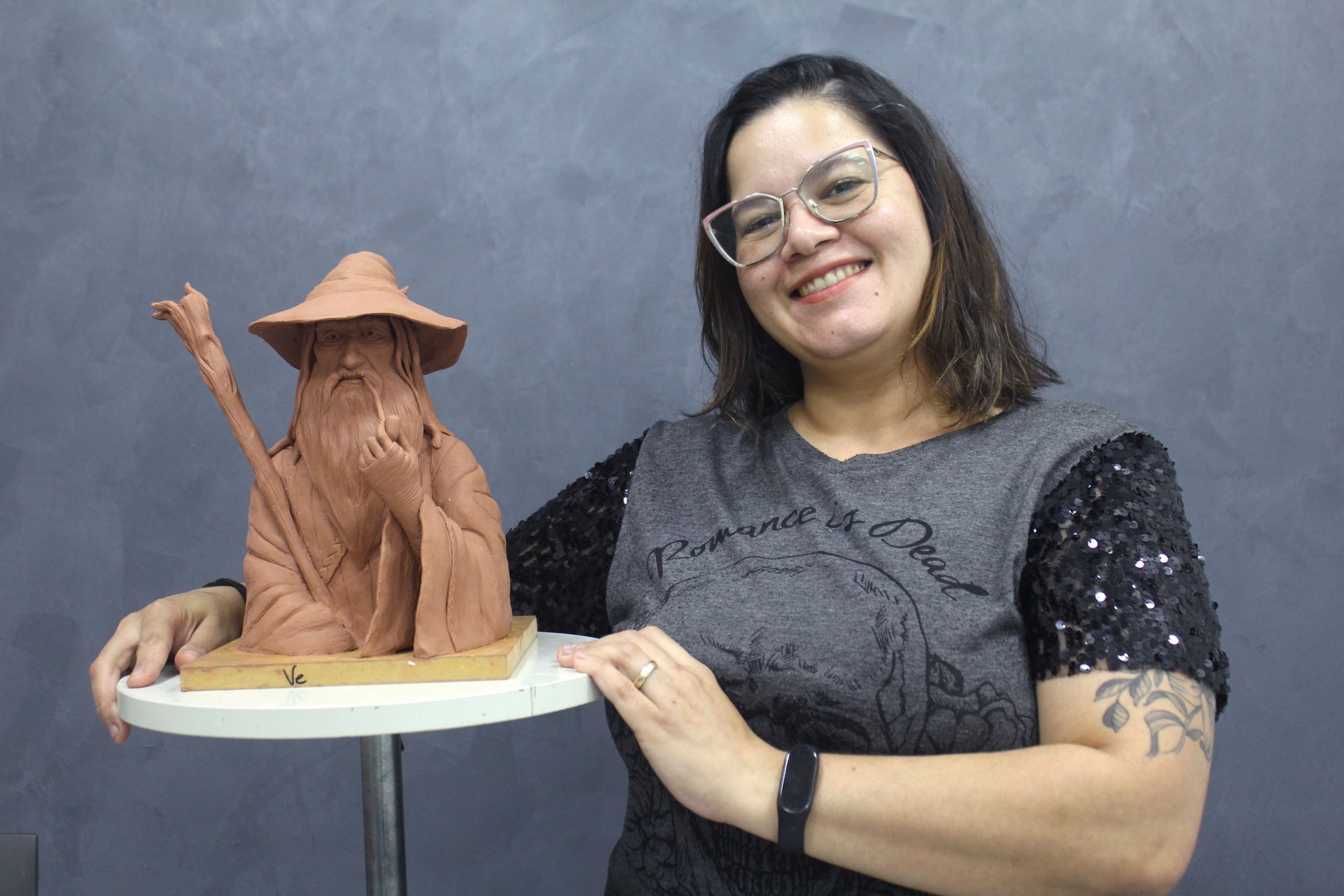 Os alunos produziram a escultura do Gandalf em plastilina soft do Maya Clay.