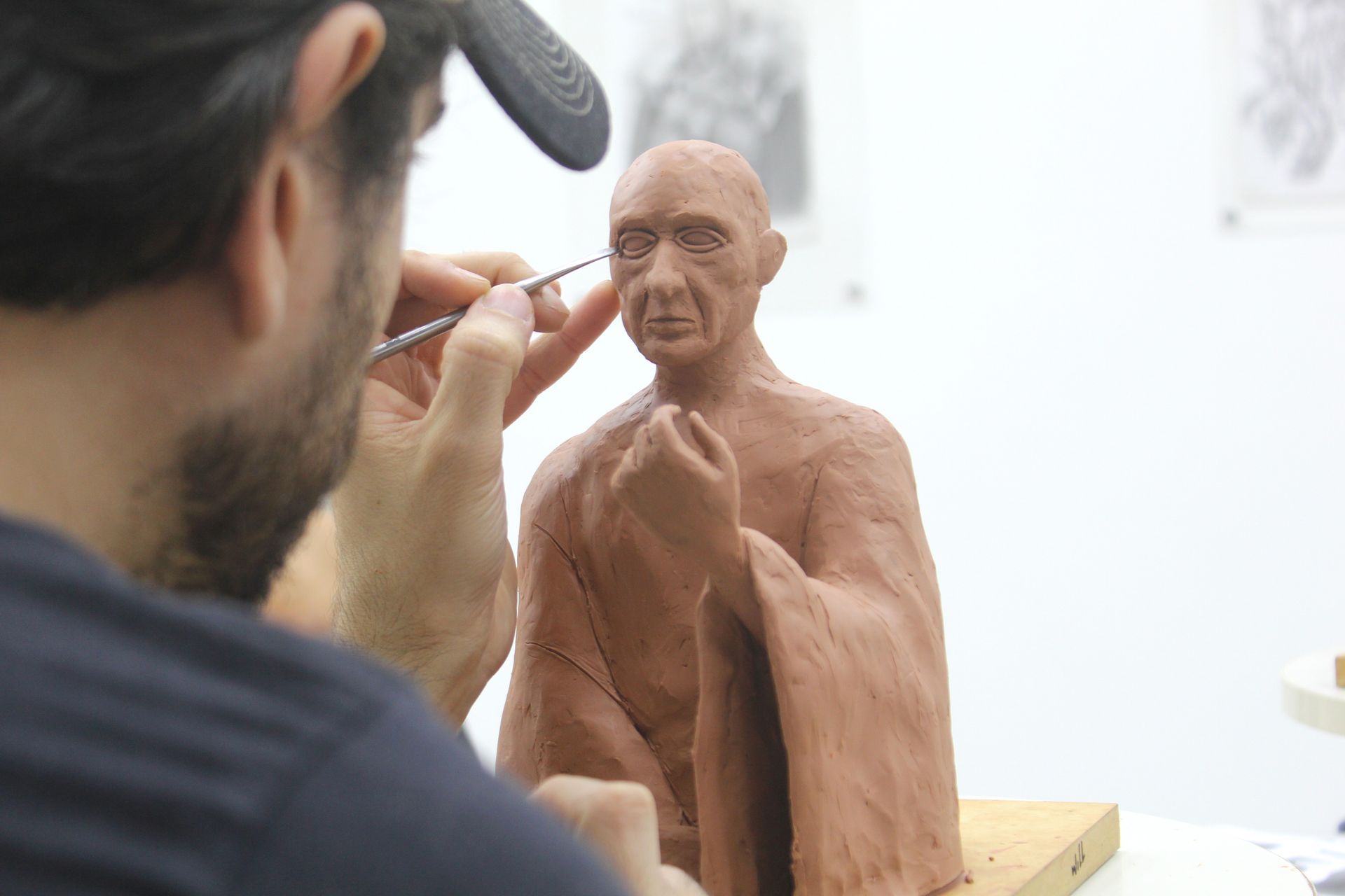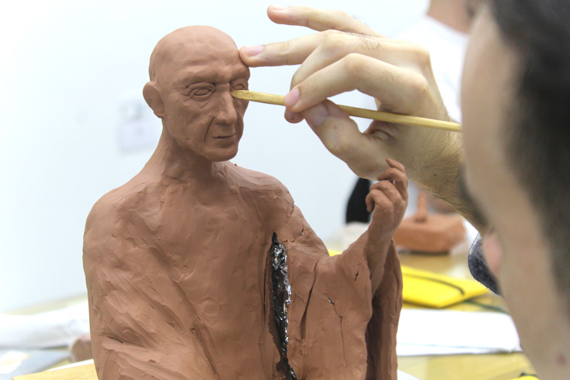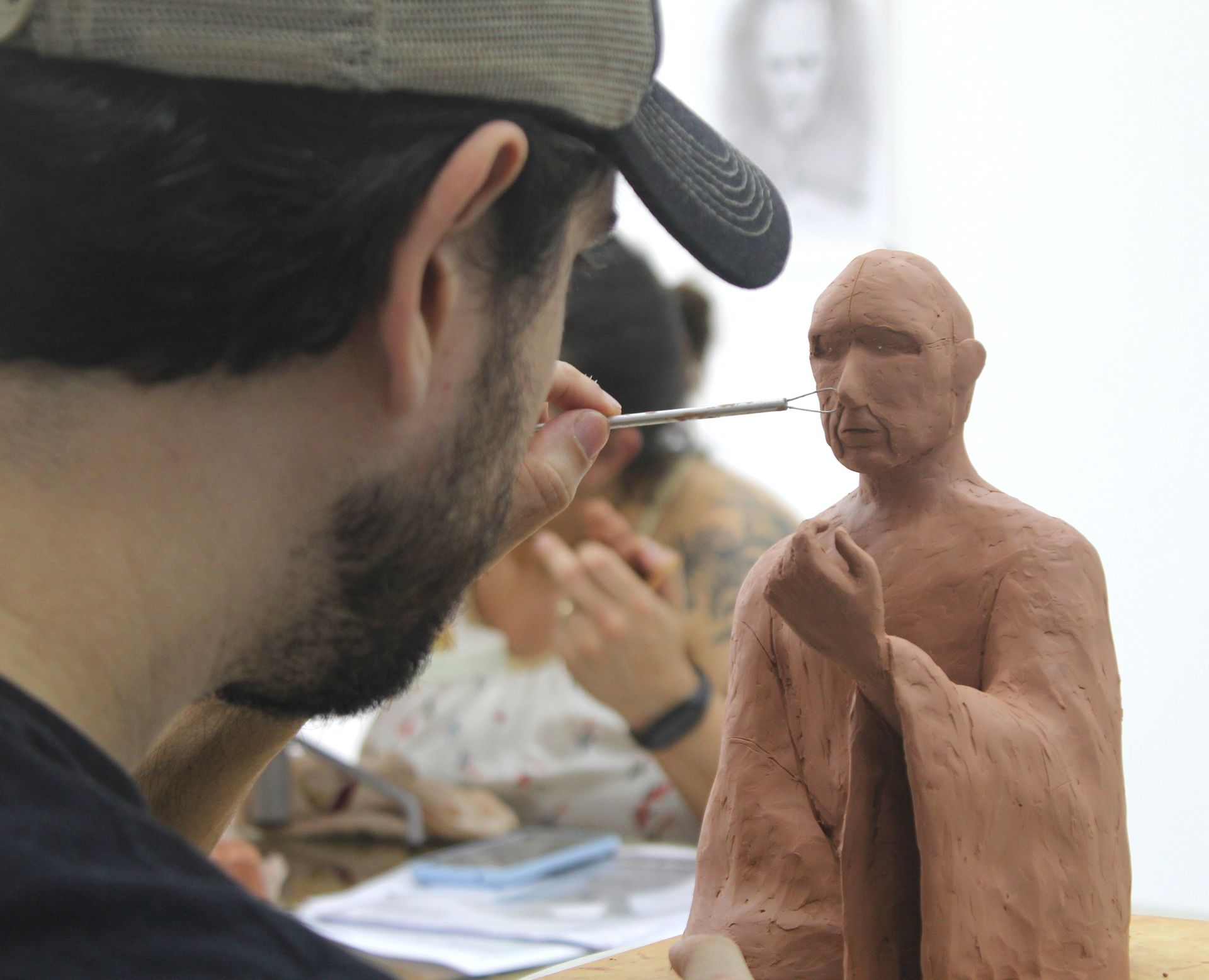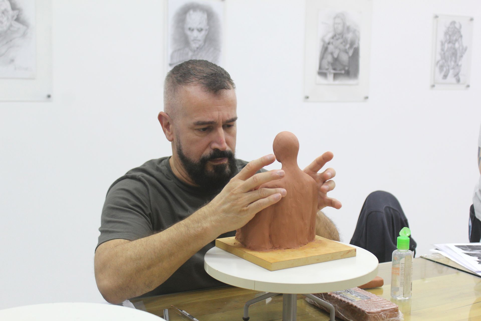 Os alunos produziram a escultura do Gandalf em plastilina soft do Maya Clay.