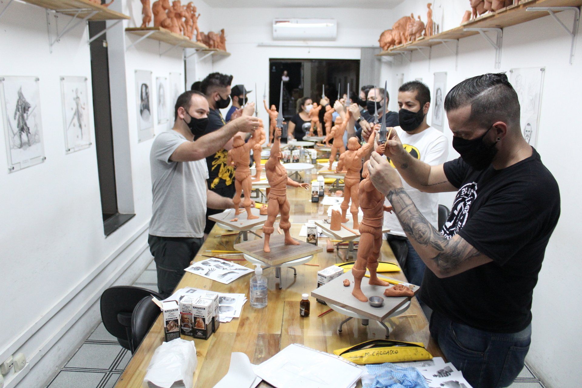 Aaaaahhhhh Meu Deus!!!! Sim!!! Centésimo workshop do Studio realizado com muito sucesso! Não tenho palavras para expressar o que tudo isso significa para nós. São 10 anos de Studio e 100 workshops realizados, dentre eles tivemos os mais variados temas, como criaturas, cartoons, comics, feminino, masculino, bustos... Sempre tentamos trazer temas novos e variados para ajudar diversos artistas, por isso poucos temas foram repetidos. E um verdadeiro filme passa em nossas cabeças, momentos difíceis, momentos de aprendizado, muitas risadas, e muitas pessoas incríveis passaram por aqui. No workshop número 100 veio um aprendizado, respeitar os limites do corpo. No segundo dia de workshop minha mão estava latejando de dor por conta de uma lesão, e estava sendo praticamente impossível continuar a aula. E ao falar com os alunos, todos foram extremamente compreensivos e me apoiaram para repormos o restante do conteúdo em outro domingo. Sou tão grato por isso, pois sei que dessa forma eu pude entregar o nosso melhor. E todos saíram com esculturas muito lindas. Estamos muito orgulhosos de todos vocês. É uma verdadeira felicidade para mim, como professor, saber que ao longo desses anos despertei um pouco desse amor pela arte em muitos alunos, e hoje posso vê-los voar e brilhar com seus trabalhos. E nesse centésimo workshop o tema surgiu com minha animação favorita " O Rei leão", e com uma cena e com uma música que deixa uma verdadeira lição para vida.... Ciclo Sem Fim.... Caraca... É muita emoção para um post só. Só posso dizer que somos muito gratos por tudo! Obrigado a todos os alunos que participaram deste e de todos os outros 99 workshops que realizamos. Obrigado a minha equipe maravilhosa. Cleyton, Gustavo, João, Dany e meu braço direito Cendy. Com vocês tudo fica mais fácil e mais divertido.