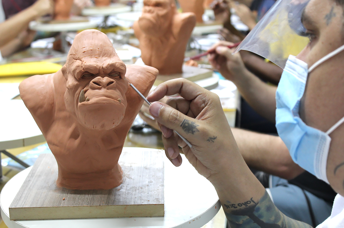 Aaaaahhhhh Meu Deus!!!! Sim!!! Centésimo workshop do Studio realizado com muito sucesso! Não tenho palavras para expressar o que tudo isso significa para nós. São 10 anos de Studio e 100 workshops realizados, dentre eles tivemos os mais variados temas, como criaturas, cartoons, comics, feminino, masculino, bustos... Sempre tentamos trazer temas novos e variados para ajudar diversos artistas, por isso poucos temas foram repetidos. E um verdadeiro filme passa em nossas cabeças, momentos difíceis, momentos de aprendizado, muitas risadas, e muitas pessoas incríveis passaram por aqui. No workshop número 100 veio um aprendizado, respeitar os limites do corpo. No segundo dia de workshop minha mão estava latejando de dor por conta de uma lesão, e estava sendo praticamente impossível continuar a aula. E ao falar com os alunos, todos foram extremamente compreensivos e me apoiaram para repormos o restante do conteúdo em outro domingo. Sou tão grato por isso, pois sei que dessa forma eu pude entregar o nosso melhor. E todos saíram com esculturas muito lindas. Estamos muito orgulhosos de todos vocês. É uma verdadeira felicidade para mim, como professor, saber que ao longo desses anos despertei um pouco desse amor pela arte em muitos alunos, e hoje posso vê-los voar e brilhar com seus trabalhos. E nesse centésimo workshop o tema surgiu com minha animação favorita " O Rei leão", e com uma cena e com uma música que deixa uma verdadeira lição para vida.... Ciclo Sem Fim.... Caraca... É muita emoção para um post só. Só posso dizer que somos muito gratos por tudo! Obrigado a todos os alunos que participaram deste e de todos os outros 99 workshops que realizamos. Obrigado a minha equipe maravilhosa. Cleyton, Gustavo, João, Dany e meu braço direito Cendy. Com vocês tudo fica mais fácil e mais divertido.
