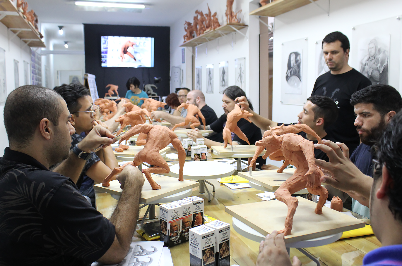 Aaaaahhhhh Meu Deus!!!! Sim!!! Centésimo workshop do Studio realizado com muito sucesso! Não tenho palavras para expressar o que tudo isso significa para nós. São 10 anos de Studio e 100 workshops realizados, dentre eles tivemos os mais variados temas, como criaturas, cartoons, comics, feminino, masculino, bustos... Sempre tentamos trazer temas novos e variados para ajudar diversos artistas, por isso poucos temas foram repetidos. E um verdadeiro filme passa em nossas cabeças, momentos difíceis, momentos de aprendizado, muitas risadas, e muitas pessoas incríveis passaram por aqui. No workshop número 100 veio um aprendizado, respeitar os limites do corpo. No segundo dia de workshop minha mão estava latejando de dor por conta de uma lesão, e estava sendo praticamente impossível continuar a aula. E ao falar com os alunos, todos foram extremamente compreensivos e me apoiaram para repormos o restante do conteúdo em outro domingo. Sou tão grato por isso, pois sei que dessa forma eu pude entregar o nosso melhor. E todos saíram com esculturas muito lindas. Estamos muito orgulhosos de todos vocês. É uma verdadeira felicidade para mim, como professor, saber que ao longo desses anos despertei um pouco desse amor pela arte em muitos alunos, e hoje posso vê-los voar e brilhar com seus trabalhos. E nesse centésimo workshop o tema surgiu com minha animação favorita " O Rei leão", e com uma cena e com uma música que deixa uma verdadeira lição para vida.... Ciclo Sem Fim.... Caraca... É muita emoção para um post só. Só posso dizer que somos muito gratos por tudo! Obrigado a todos os alunos que participaram deste e de todos os outros 99 workshops que realizamos. Obrigado a minha equipe maravilhosa. Cleyton, Gustavo, João, Dany e meu braço direito Cendy. Com vocês tudo fica mais fácil e mais divertido.