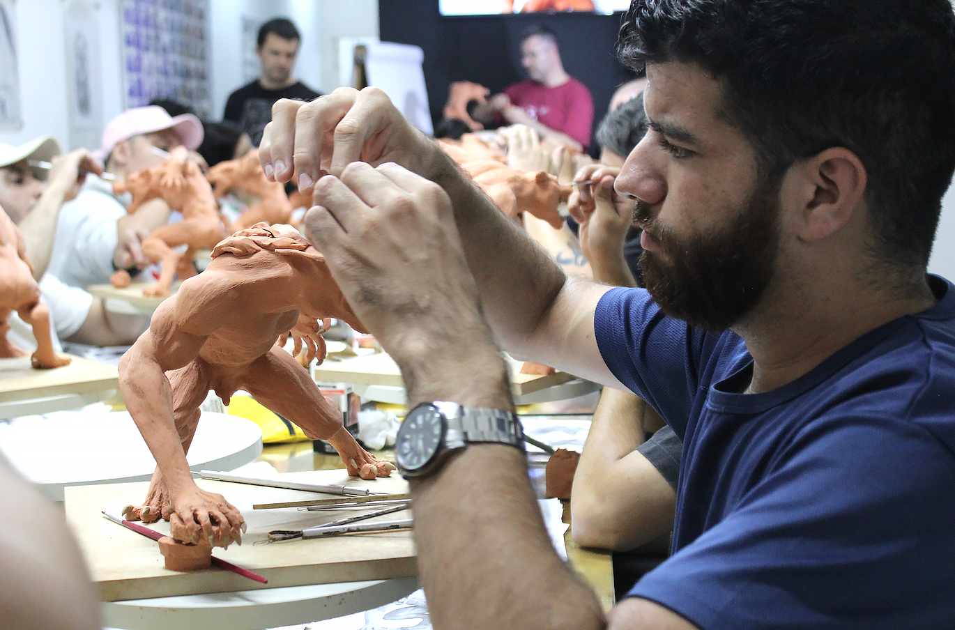 A galera dessa foto não é fraca não! Enfrentaram 4 dias de workshop!!! Baita desafio! E ainda fizeram isso dando muita risada, acredita?! O He-man é um personagem super técnico, porque praticamente toda sua anatomia fica evidente, então tivemos quer dar uma atenção especial para isso, por isso estou muito orgulhoso do resultado de todos os alunos! Parabéns galera!!! É claro que tudo fica mais fácil e divertido com o suporte dos professores Dany Dje e João Fernandes. Dois irmãos para mim. Valeu por estarem ao meu lado em mais um workshop. Também quero agradecer minha esposa Cendy Polcaro por me ajudar a organizar o workshop, fazer a apostila e por todas as fotos e vídeos. Não queria ter outra pessoa ao meu lado. Obrigado a todos galera!
