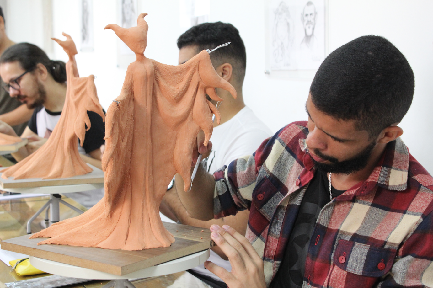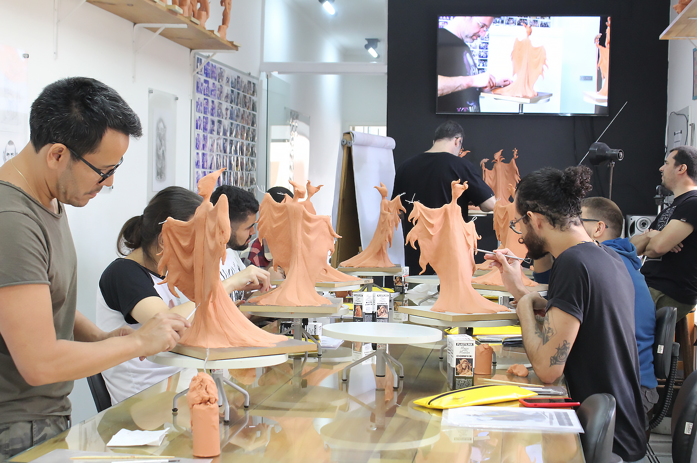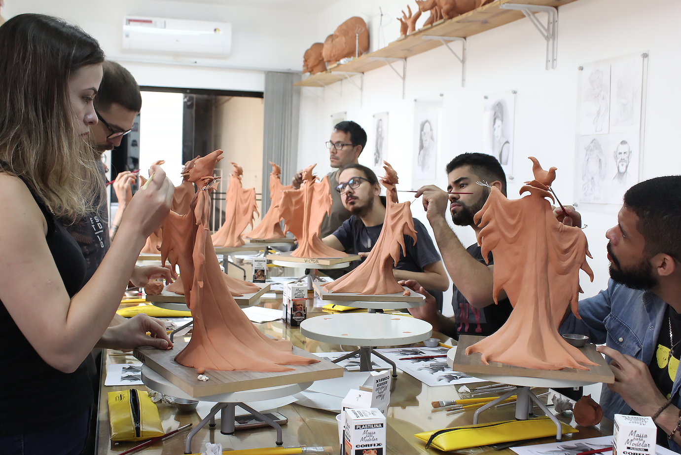 Aaaaahhhhh Meu Deus!!!! Sim!!! Centésimo workshop do Studio realizado com muito sucesso! Não tenho palavras para expressar o que tudo isso significa para nós. São 10 anos de Studio e 100 workshops realizados, dentre eles tivemos os mais variados temas, como criaturas, cartoons, comics, feminino, masculino, bustos... Sempre tentamos trazer temas novos e variados para ajudar diversos artistas, por isso poucos temas foram repetidos. E um verdadeiro filme passa em nossas cabeças, momentos difíceis, momentos de aprendizado, muitas risadas, e muitas pessoas incríveis passaram por aqui. No workshop número 100 veio um aprendizado, respeitar os limites do corpo. No segundo dia de workshop minha mão estava latejando de dor por conta de uma lesão, e estava sendo praticamente impossível continuar a aula. E ao falar com os alunos, todos foram extremamente compreensivos e me apoiaram para repormos o restante do conteúdo em outro domingo. Sou tão grato por isso, pois sei que dessa forma eu pude entregar o nosso melhor. E todos saíram com esculturas muito lindas. Estamos muito orgulhosos de todos vocês. É uma verdadeira felicidade para mim, como professor, saber que ao longo desses anos despertei um pouco desse amor pela arte em muitos alunos, e hoje posso vê-los voar e brilhar com seus trabalhos. E nesse centésimo workshop o tema surgiu com minha animação favorita " O Rei leão", e com uma cena e com uma música que deixa uma verdadeira lição para vida.... Ciclo Sem Fim.... Caraca... É muita emoção para um post só. Só posso dizer que somos muito gratos por tudo! Obrigado a todos os alunos que participaram deste e de todos os outros 99 workshops que realizamos. Obrigado a minha equipe maravilhosa. Cleyton, Gustavo, João, Dany e meu braço direito Cendy. Com vocês tudo fica mais fácil e mais divertido.