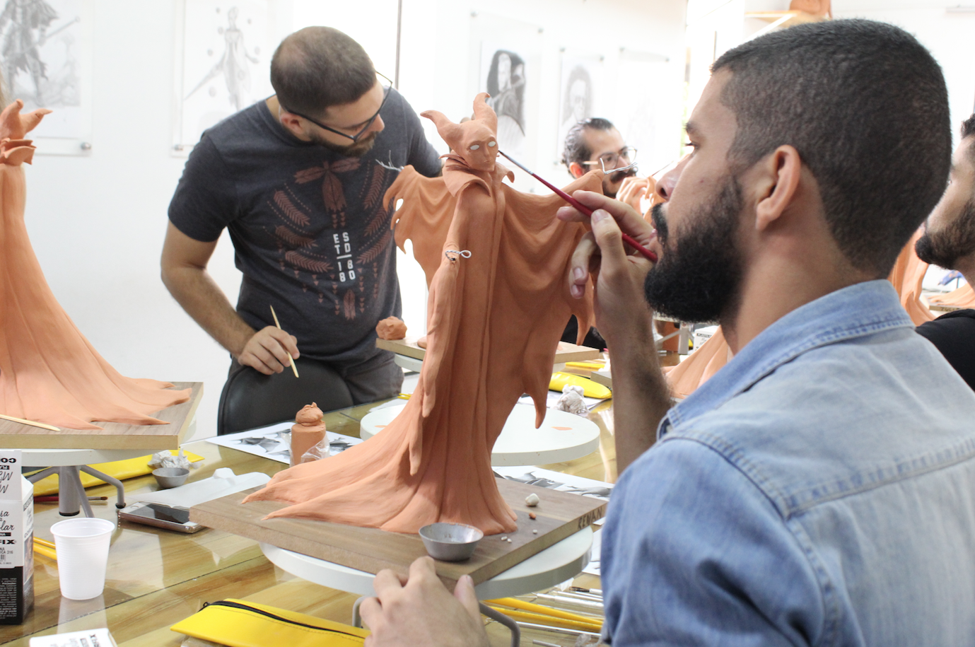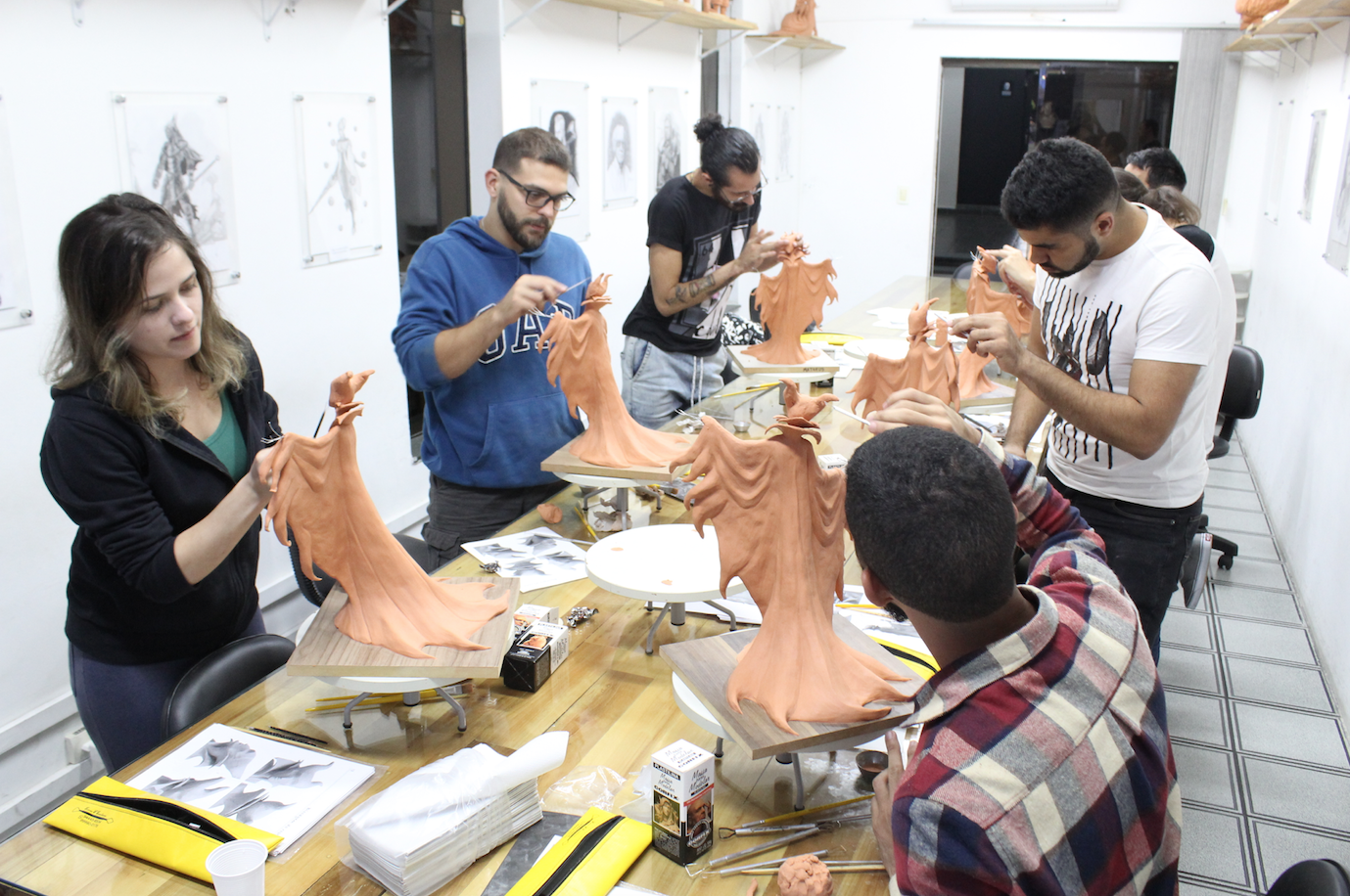 E essa foi a segunda turma do Workshop do Gandalf! Alguns alunos voltaram para aprender as peculiaridades deste personagem. Outros vieram ao nosso Studio pela primeira vez. Alguns iniciantes e outros já modelavam em outros materiais como argila e biscuit. Sempre existe uma troca de informações e experiências, me sinto sempre renovado, pois também gosto de aprender com meus alunos! Foram dois dias e meio muito divertidos! É cansativo... puxado... mas com certeza damos boas risadas no processo. Muito obrigado a todos os alunos que participaram, agradeço a dedicação e por confiarem no nosso trabalho! As esculturas ficaram muito bonitas! Parabéns galera! Agradeço a minha equipe, que está sempre pronta para me ajudar! Cendy Polcaro, Dany Dje e João Fernandes. Com vocês tudo fica mais fácil e divertido. Os alunos produziram a escultura do Gandalf em plastilina soft do Maya Clay. Abaixo você pode ver um pouco das fotos do processo.
