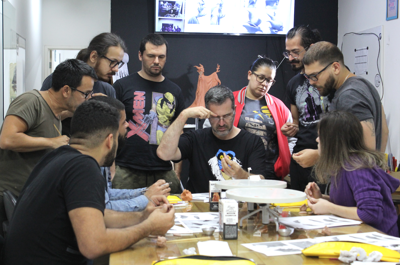 A galera dessa foto não é fraca não! Enfrentaram 4 dias de workshop!!! Baita desafio! E ainda fizeram isso dando muita risada, acredita?! O He-man é um personagem super técnico, porque praticamente toda sua anatomia fica evidente, então tivemos quer dar uma atenção especial para isso, por isso estou muito orgulhoso do resultado de todos os alunos! Parabéns galera!!! É claro que tudo fica mais fácil e divertido com o suporte dos professores Dany Dje e João Fernandes. Dois irmãos para mim. Valeu por estarem ao meu lado em mais um workshop. Também quero agradecer minha esposa Cendy Polcaro por me ajudar a organizar o workshop, fazer a apostila e por todas as fotos e vídeos. Não queria ter outra pessoa ao meu lado. Obrigado a todos galera!