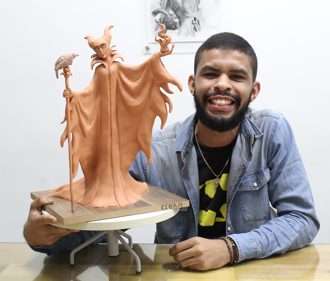 Aqui nesta punlicação você poderá conferir os cinco alunos que tiveram o melhor desempenho segundo a nossa banca de jurados (Rick Fernandes, Cendy Polcaro, Cleyton Amorim, Dany Dje, João Fernandes e Salvatore Aiala). Nós avaliamos principalmente a criatividade, apresentação dos projetos e evolução de cada aluno durante o Projeto Fênix. Confira os lindos trabalhos abaixo. Quinto Lugar A aluna Ira Bueno trouxe ideias bem diferentes, porém todas tinham uma assinatura. Em todos os trabalhos apresentados foi possível observar fortes referências a natureza (como animais, plantas e texturas) que ajudaram a construir os personagens. Outra coisa muito legal foi ela trazer suas experiências de vida, como o seu mestrado, para construir a história do herói. É por isso que eu sempre digo que cada artista é único. Enfim, todos os trabalhos foram muito bem detalhados e ficaram lindos, mas confesso que o que eu mais gostei foi o primeiro desafio, o da fobia, achei o personagem muito original e a solução que ela encontrou para escultura foi muito elegante e bem executada.