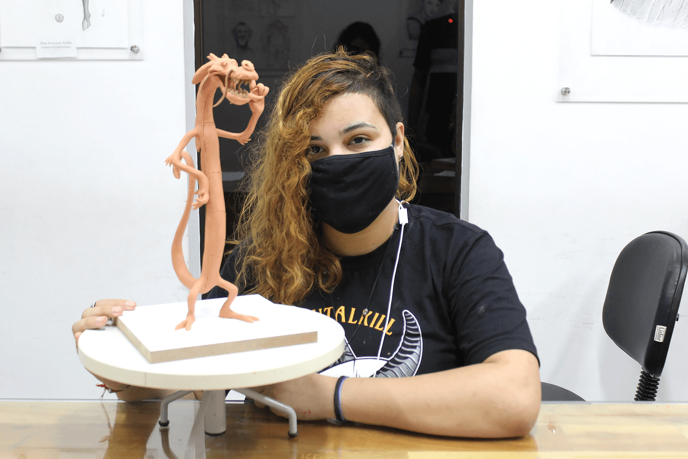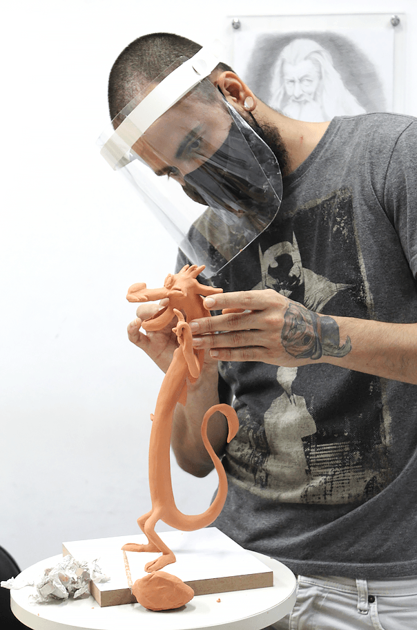 Aqui nesta punlicação você poderá conferir os cinco alunos que tiveram o melhor desempenho segundo a nossa banca de jurados (Rick Fernandes, Cendy Polcaro, Cleyton Amorim, Dany Dje, João Fernandes e Salvatore Aiala). Nós avaliamos principalmente a criatividade, apresentação dos projetos e evolução de cada aluno durante o Projeto Fênix. Confira os lindos trabalhos abaixo. Quinto Lugar A aluna Ira Bueno trouxe ideias bem diferentes, porém todas tinham uma assinatura. Em todos os trabalhos apresentados foi possível observar fortes referências a natureza (como animais, plantas e texturas) que ajudaram a construir os personagens. Outra coisa muito legal foi ela trazer suas experiências de vida, como o seu mestrado, para construir a história do herói. É por isso que eu sempre digo que cada artista é único. Enfim, todos os trabalhos foram muito bem detalhados e ficaram lindos, mas confesso que o que eu mais gostei foi o primeiro desafio, o da fobia, achei o personagem muito original e a solução que ela encontrou para escultura foi muito elegante e bem executada.
