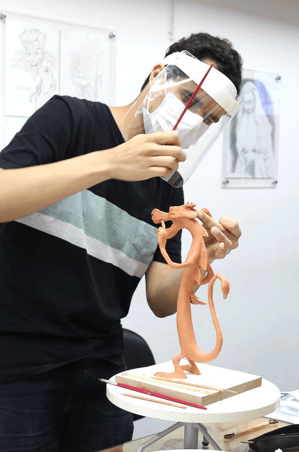 Este mês iniciamos um projeto bem legal, o Café com Escultura ! Todas as quintas as 20:00h fazemos lives no nosso Instagram com o objetivo de bater um papo, trocar ideias, falar sobre materiais e livros, responder dúvidas e modelar ao vivo. A primeira modelagem do "Café com Escultura" foi esse busto de dragão chinês amarelo, referência do maravilhoso livro Dracopedia. A nossa live piloto não ficou gravada, mas as outras duas estão lá no perfil pra você conferir. Então já sabe, na próxima quinta você está convidado pra tomar uma café e falar sobre arte com a gente! Até lá!