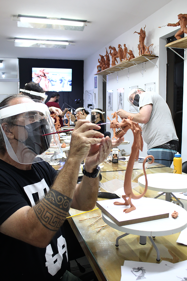 Aaaaahhhhh Meu Deus!!!! Sim!!! Centésimo workshop do Studio realizado com muito sucesso! Não tenho palavras para expressar o que tudo isso significa para nós. São 10 anos de Studio e 100 workshops realizados, dentre eles tivemos os mais variados temas, como criaturas, cartoons, comics, feminino, masculino, bustos... Sempre tentamos trazer temas novos e variados para ajudar diversos artistas, por isso poucos temas foram repetidos. E um verdadeiro filme passa em nossas cabeças, momentos difíceis, momentos de aprendizado, muitas risadas, e muitas pessoas incríveis passaram por aqui. No workshop número 100 veio um aprendizado, respeitar os limites do corpo. No segundo dia de workshop minha mão estava latejando de dor por conta de uma lesão, e estava sendo praticamente impossível continuar a aula. E ao falar com os alunos, todos foram extremamente compreensivos e me apoiaram para repormos o restante do conteúdo em outro domingo. Sou tão grato por isso, pois sei que dessa forma eu pude entregar o nosso melhor. E todos saíram com esculturas muito lindas. Estamos muito orgulhosos de todos vocês. É uma verdadeira felicidade para mim, como professor, saber que ao longo desses anos despertei um pouco desse amor pela arte em muitos alunos, e hoje posso vê-los voar e brilhar com seus trabalhos. E nesse centésimo workshop o tema surgiu com minha animação favorita " O Rei leão", e com uma cena e com uma música que deixa uma verdadeira lição para vida.... Ciclo Sem Fim.... Caraca... É muita emoção para um post só. Só posso dizer que somos muito gratos por tudo! Obrigado a todos os alunos que participaram deste e de todos os outros 99 workshops que realizamos. Obrigado a minha equipe maravilhosa. Cleyton, Gustavo, João, Dany e meu braço direito Cendy. Com vocês tudo fica mais fácil e mais divertido.