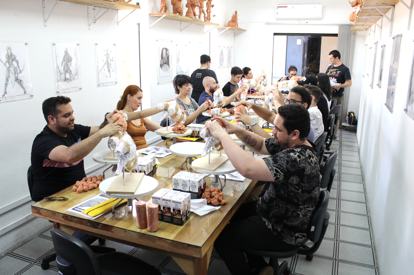 A galera dessa foto não é fraca não! Enfrentaram 4 dias de workshop!!! Baita desafio! E ainda fizeram isso dando muita risada, acredita?! O He-man é um personagem super técnico, porque praticamente toda sua anatomia fica evidente, então tivemos quer dar uma atenção especial para isso, por isso estou muito orgulhoso do resultado de todos os alunos! Parabéns galera!!! É claro que tudo fica mais fácil e divertido com o suporte dos professores Dany Dje e João Fernandes. Dois irmãos para mim. Valeu por estarem ao meu lado em mais um workshop. Também quero agradecer minha esposa Cendy Polcaro por me ajudar a organizar o workshop, fazer a apostila e por todas as fotos e vídeos. Não queria ter outra pessoa ao meu lado. Obrigado a todos galera!