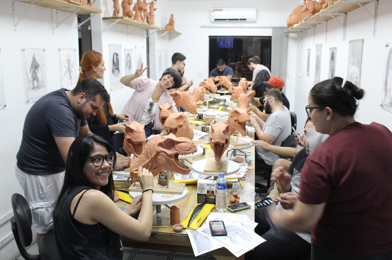 Aaaaahhhhh Meu Deus!!!! Sim!!! Centésimo workshop do Studio realizado com muito sucesso! Não tenho palavras para expressar o que tudo isso significa para nós. São 10 anos de Studio e 100 workshops realizados, dentre eles tivemos os mais variados temas, como criaturas, cartoons, comics, feminino, masculino, bustos... Sempre tentamos trazer temas novos e variados para ajudar diversos artistas, por isso poucos temas foram repetidos. E um verdadeiro filme passa em nossas cabeças, momentos difíceis, momentos de aprendizado, muitas risadas, e muitas pessoas incríveis passaram por aqui. No workshop número 100 veio um aprendizado, respeitar os limites do corpo. No segundo dia de workshop minha mão estava latejando de dor por conta de uma lesão, e estava sendo praticamente impossível continuar a aula. E ao falar com os alunos, todos foram extremamente compreensivos e me apoiaram para repormos o restante do conteúdo em outro domingo. Sou tão grato por isso, pois sei que dessa forma eu pude entregar o nosso melhor. E todos saíram com esculturas muito lindas. Estamos muito orgulhosos de todos vocês. É uma verdadeira felicidade para mim, como professor, saber que ao longo desses anos despertei um pouco desse amor pela arte em muitos alunos, e hoje posso vê-los voar e brilhar com seus trabalhos. E nesse centésimo workshop o tema surgiu com minha animação favorita " O Rei leão", e com uma cena e com uma música que deixa uma verdadeira lição para vida.... Ciclo Sem Fim.... Caraca... É muita emoção para um post só. Só posso dizer que somos muito gratos por tudo! Obrigado a todos os alunos que participaram deste e de todos os outros 99 workshops que realizamos. Obrigado a minha equipe maravilhosa. Cleyton, Gustavo, João, Dany e meu braço direito Cendy. Com vocês tudo fica mais fácil e mais divertido.