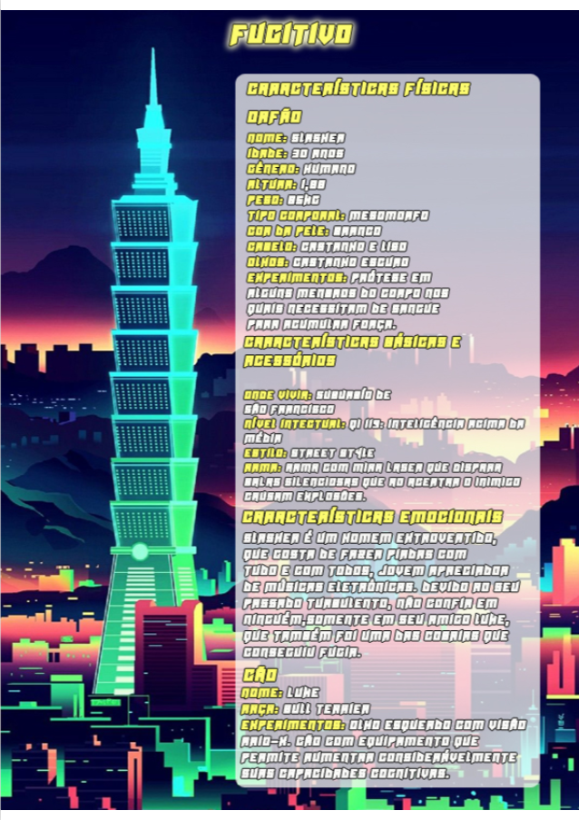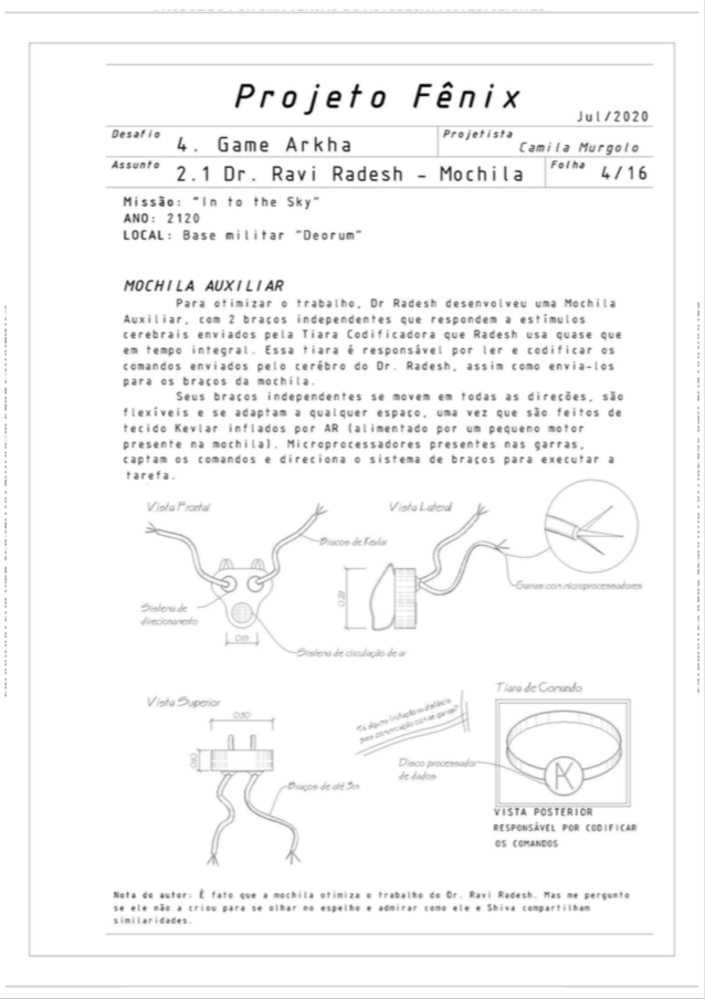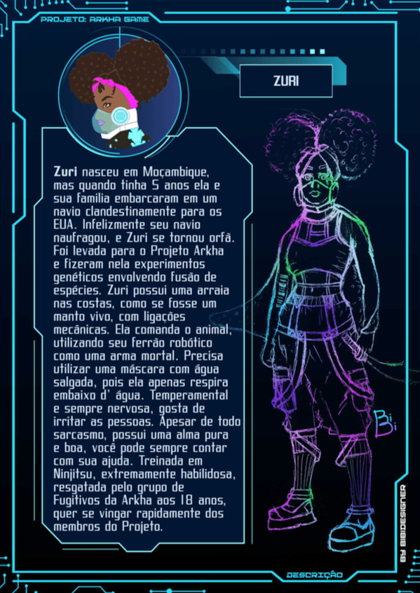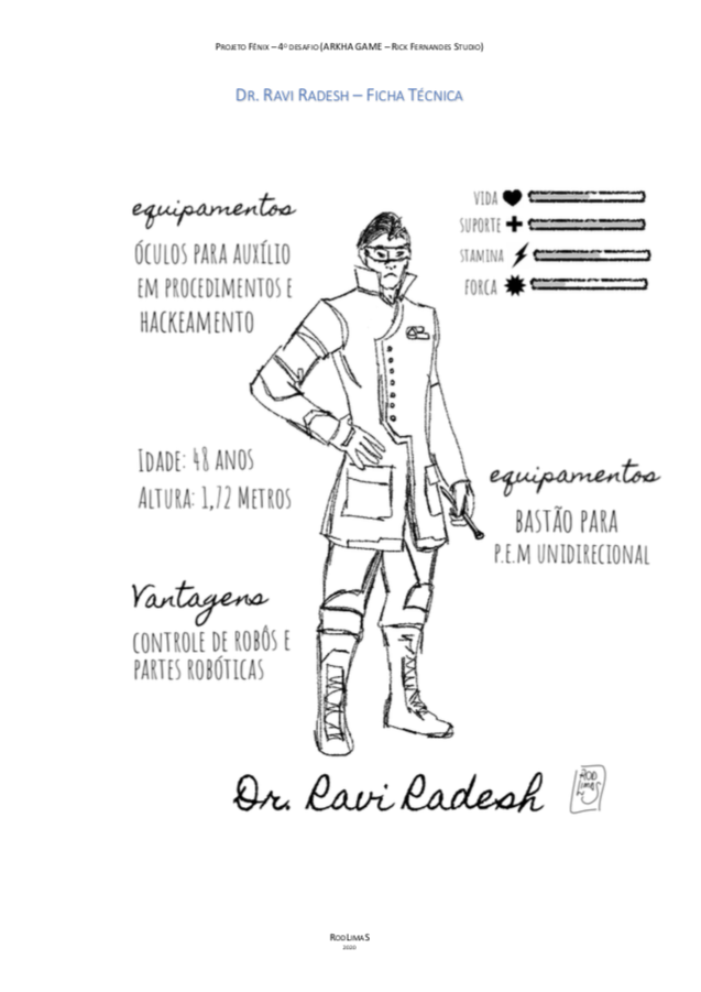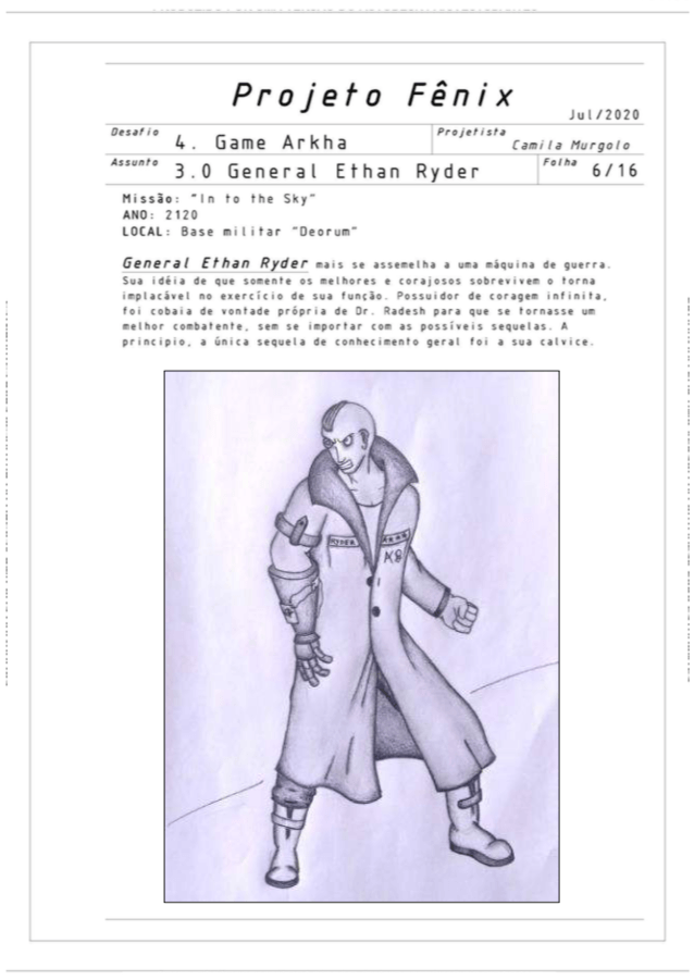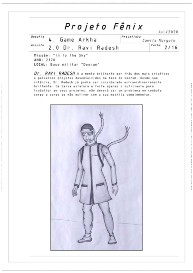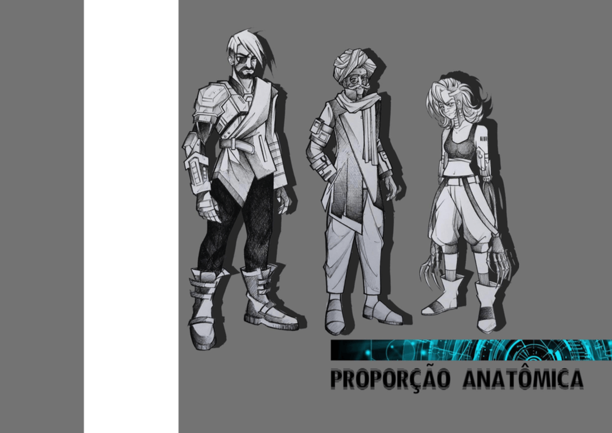 O quarto e último desafio do nosso projeto Fênix foi desenvolver personagens para um jogo futurista, imaginar o futuro (cultura, roupas, transporte, ambiente e etc.. ) também é um ótimo exercício de criatividade, pois apesar de existirem inúmeras especulações sobre, ainda não sabemos como serão as coisas de fato, e essa também é uma ótima reflexão, ainda mais agora, com tudo que estamos vivendo, temos que aprender alguma lição com essa experiência de Pandemia para poder melhorar.