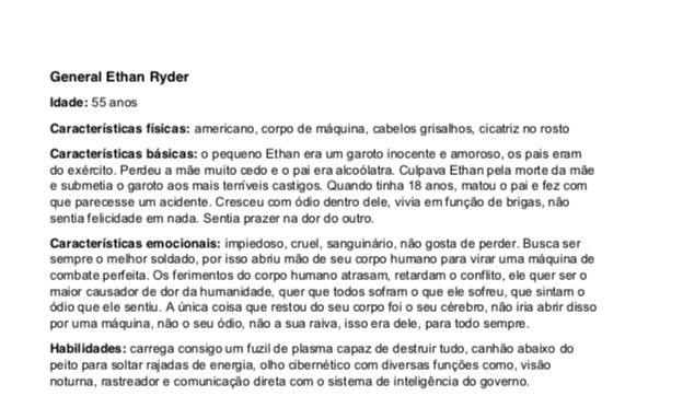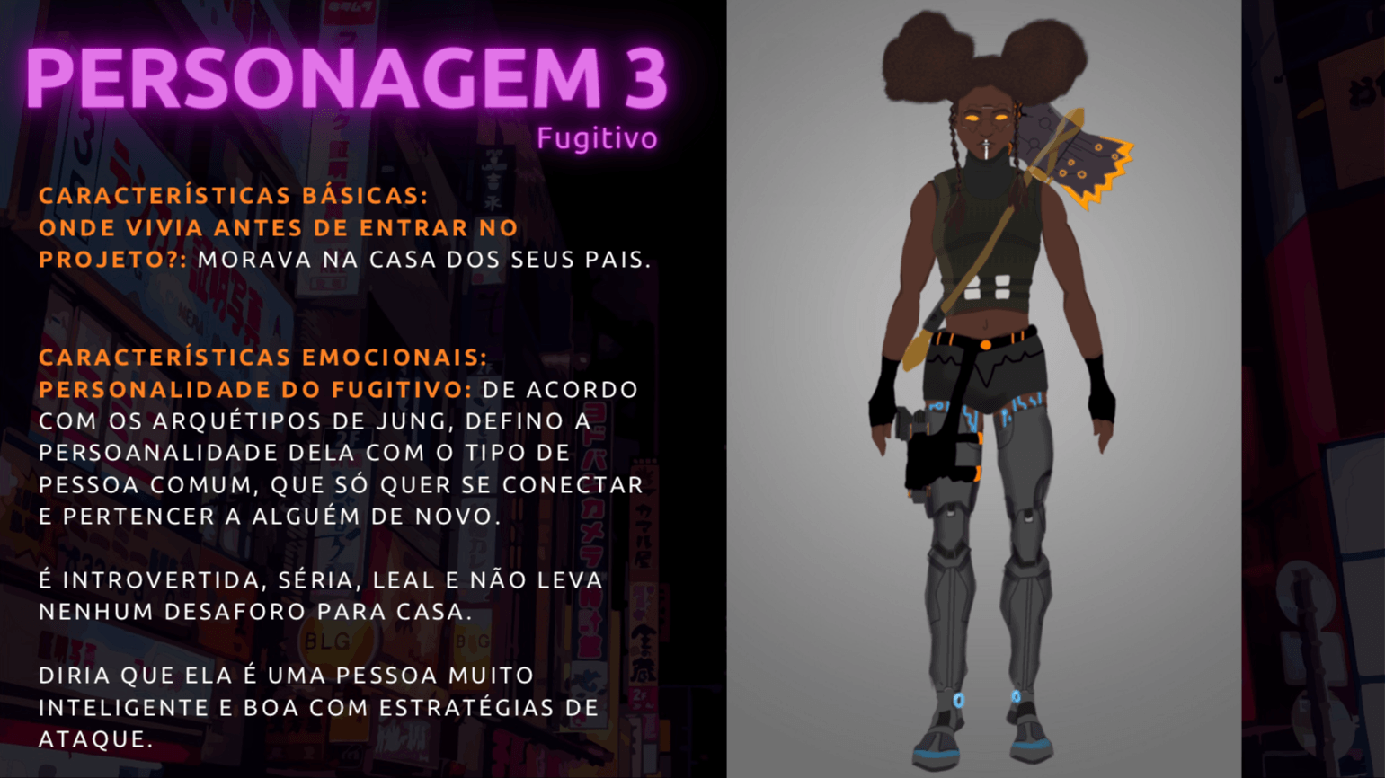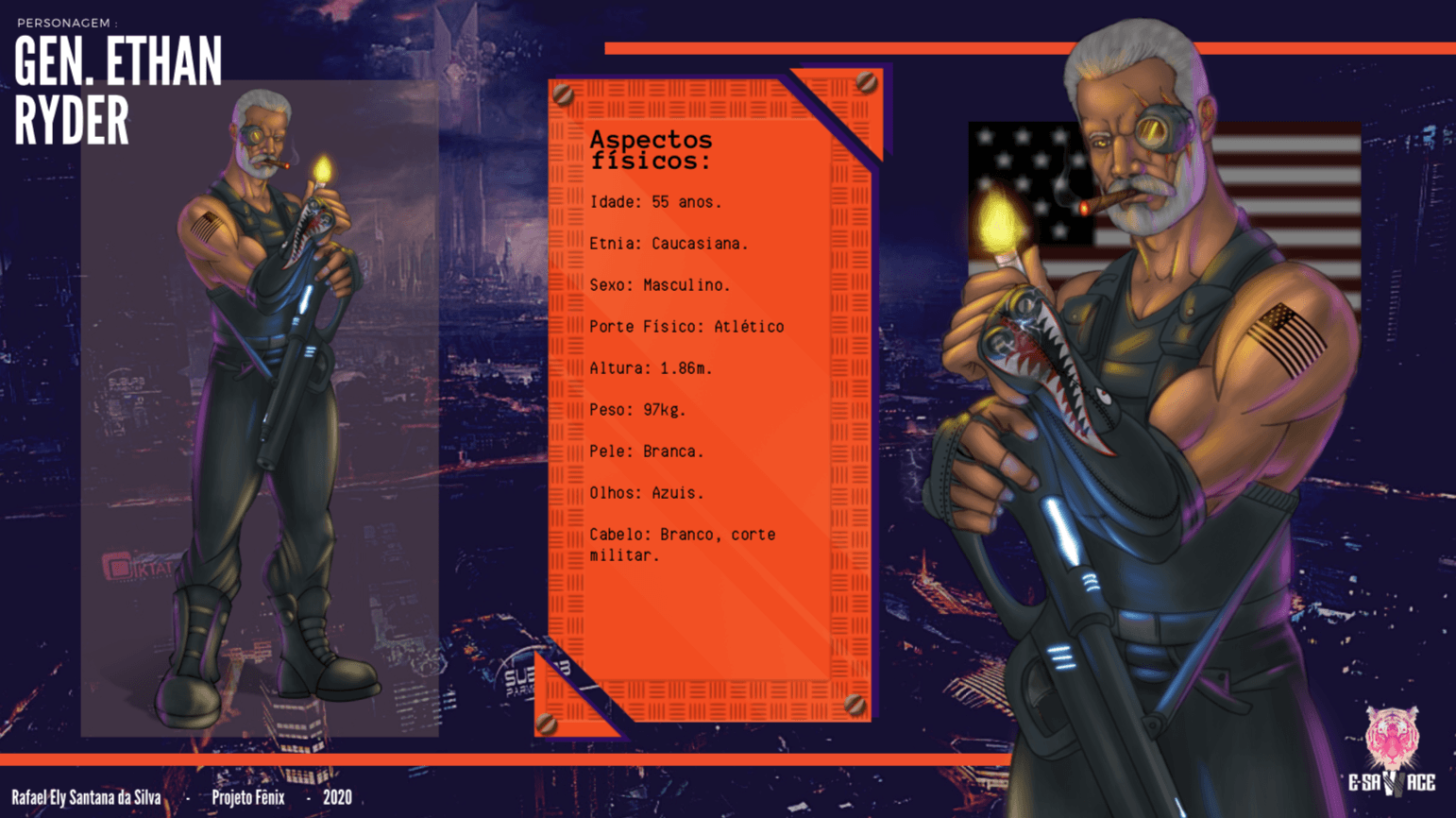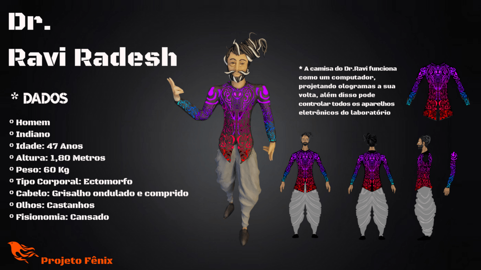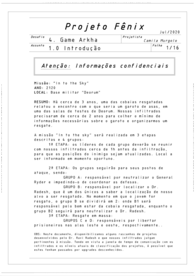 O quarto e último desafio do nosso projeto Fênix foi desenvolver personagens para um jogo futurista, imaginar o futuro (cultura, roupas, transporte, ambiente e etc.. ) também é um ótimo exercício de criatividade, pois apesar de existirem inúmeras especulações sobre, ainda não sabemos como serão as coisas de fato, e essa também é uma ótima reflexão, ainda mais agora, com tudo que estamos vivendo, temos que aprender alguma lição com essa experiência de Pandemia para poder melhorar.