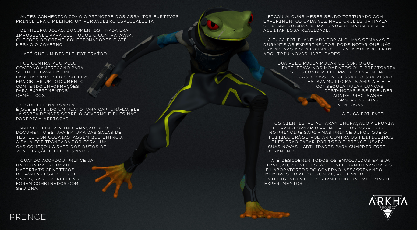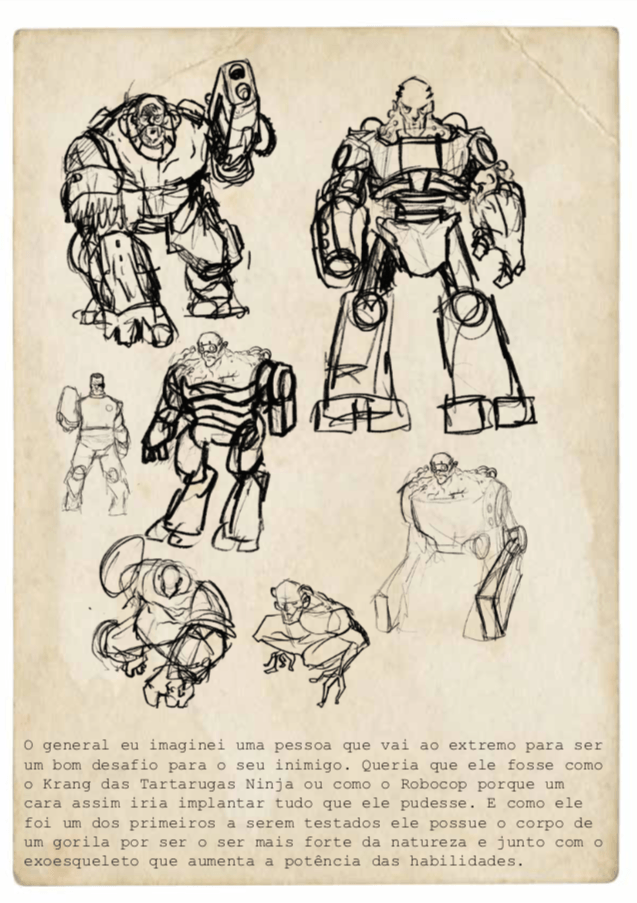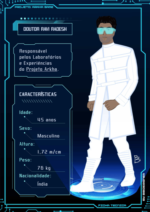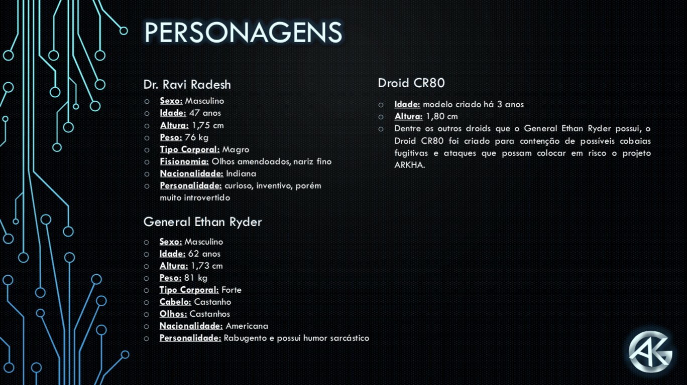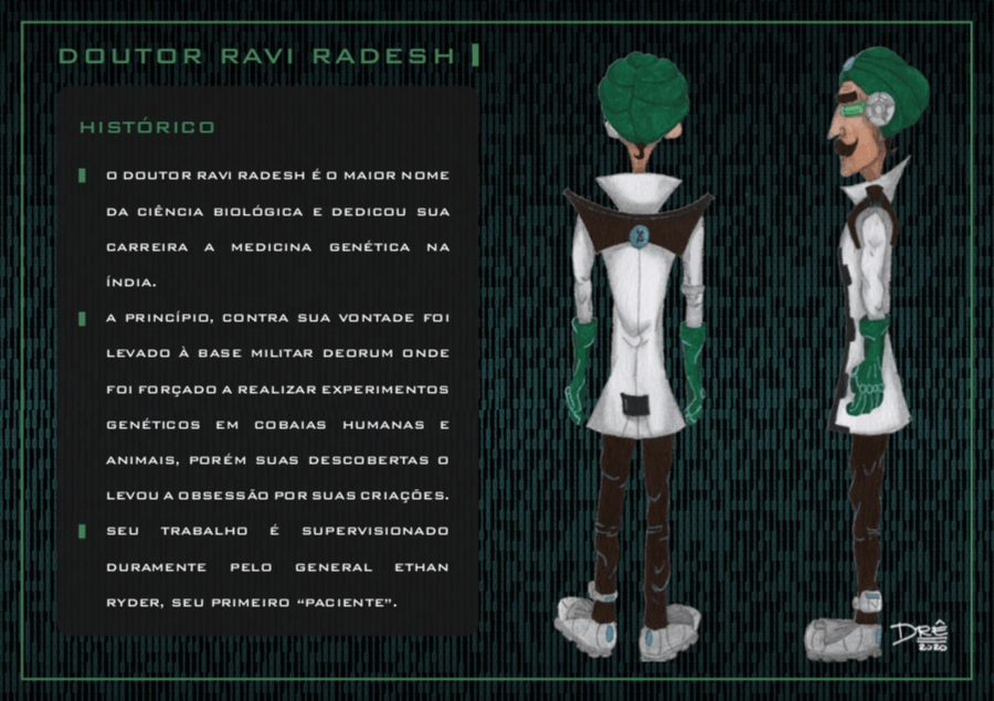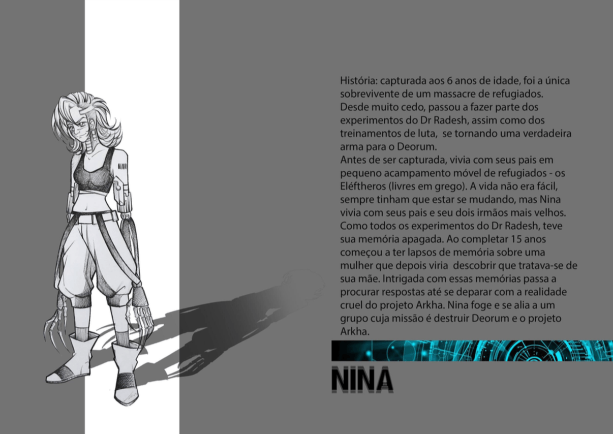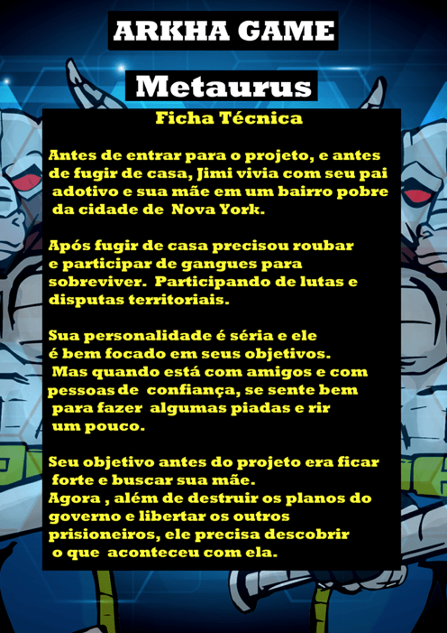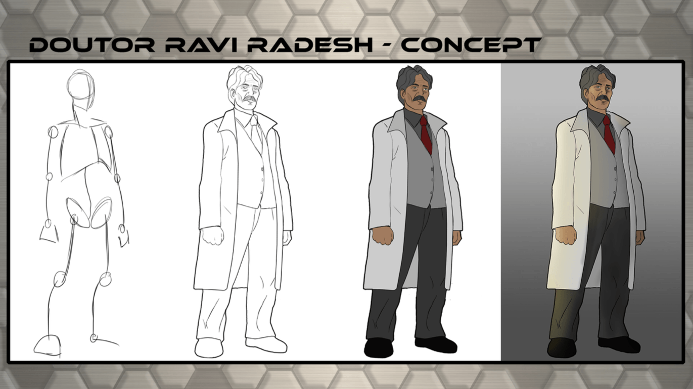Bom, a história do jogo foi desenvolvida pelo Rick Fernandes alguns anos atrás, quando ele decidiu desenvolver personagens futuristas e queria que os personagens tivessem uma história, e personalidades definidas.