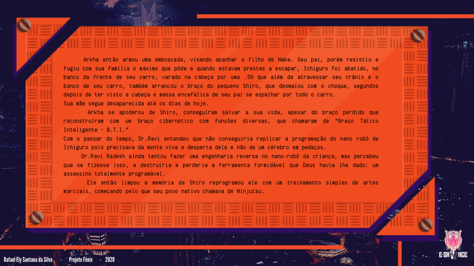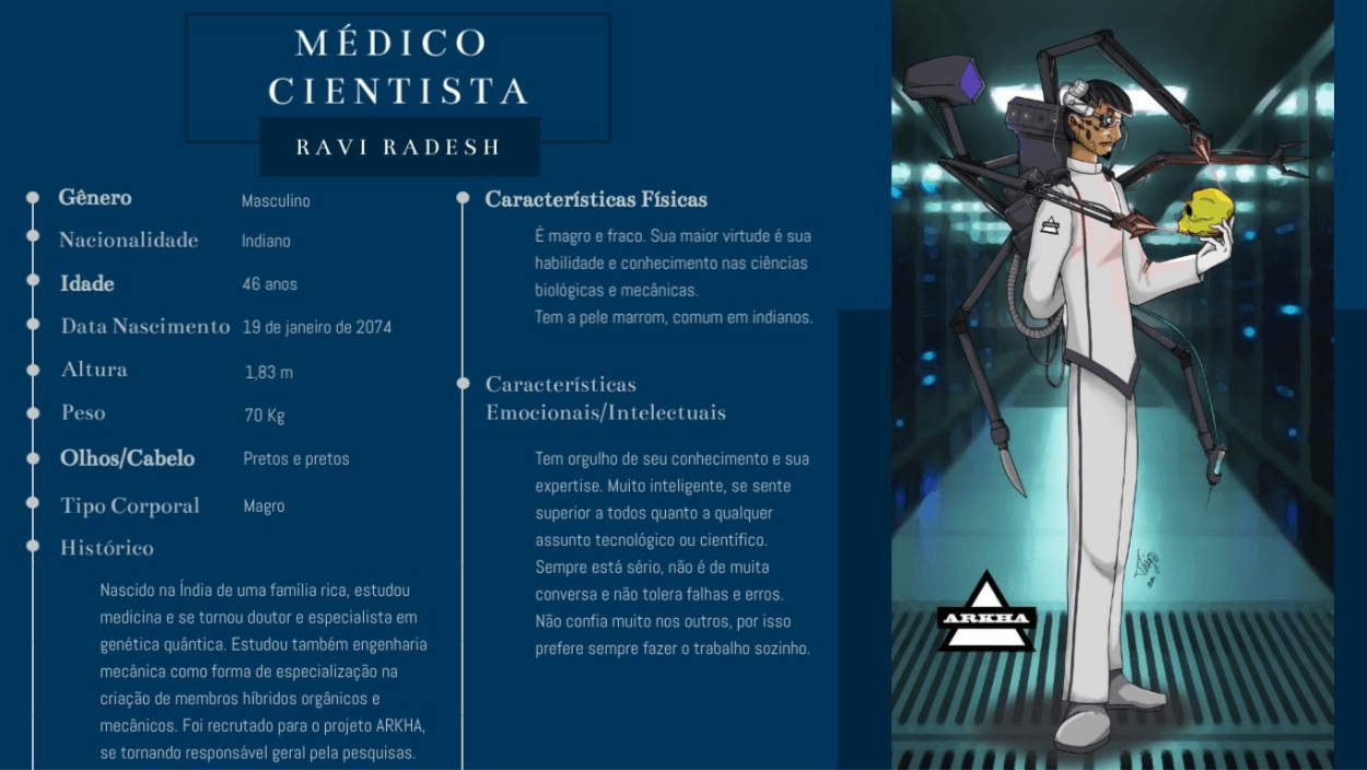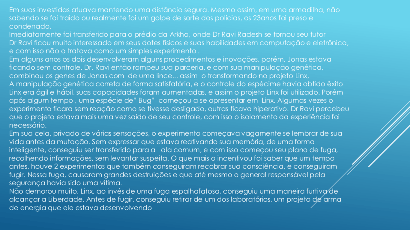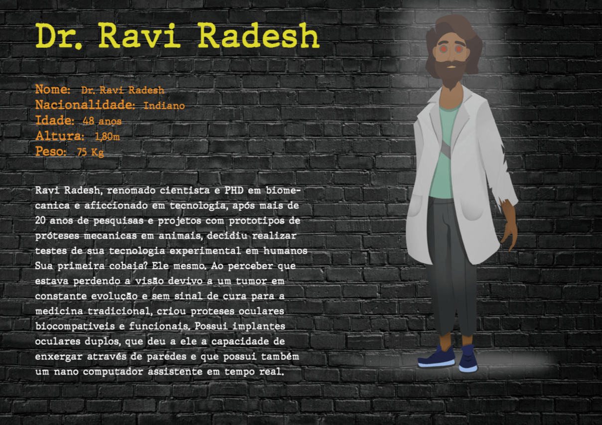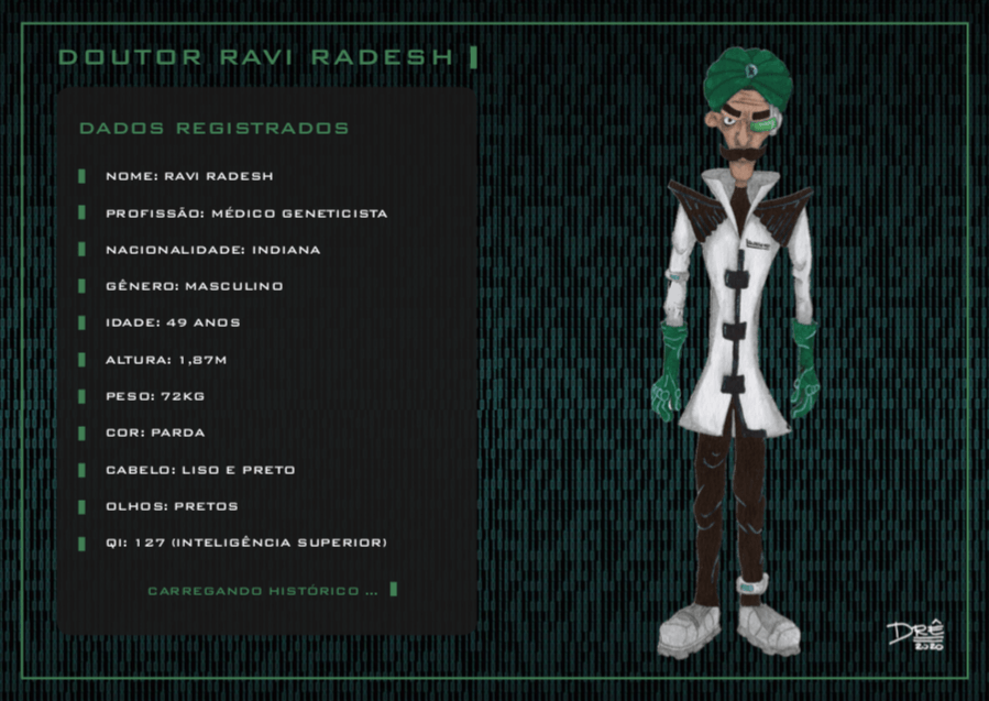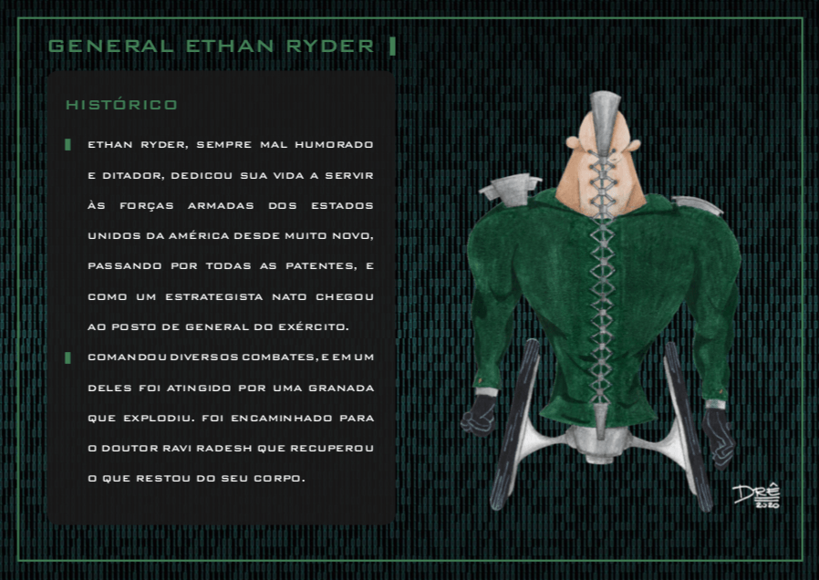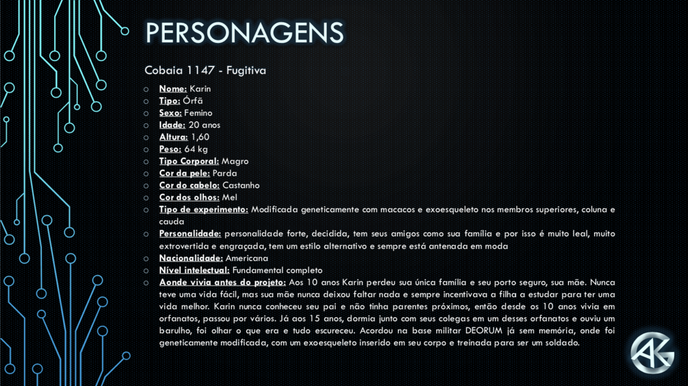 Bom, a história do jogo foi desenvolvida pelo Rick Fernandes alguns anos atrás, quando ele decidiu desenvolver personagens futuristas e queria que os personagens tivessem uma história, e personalidades definidas.