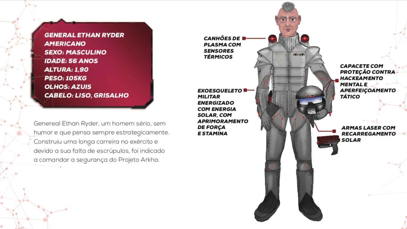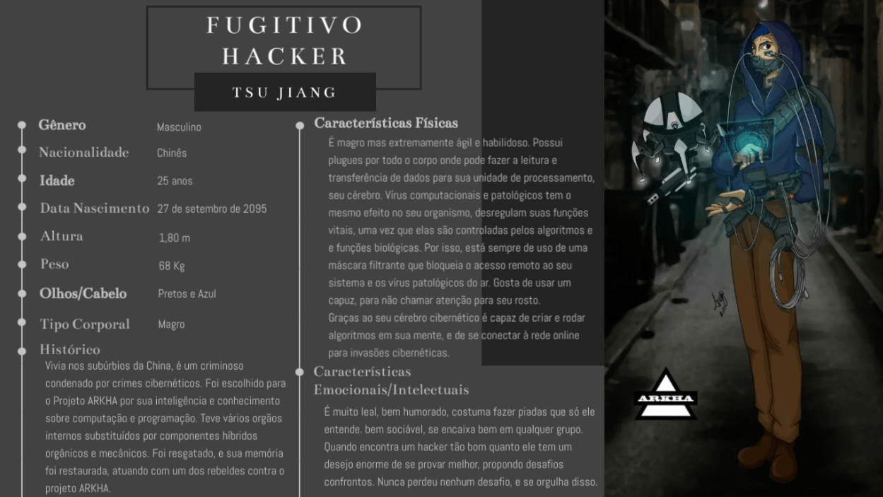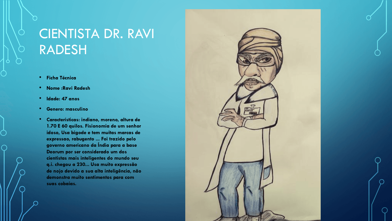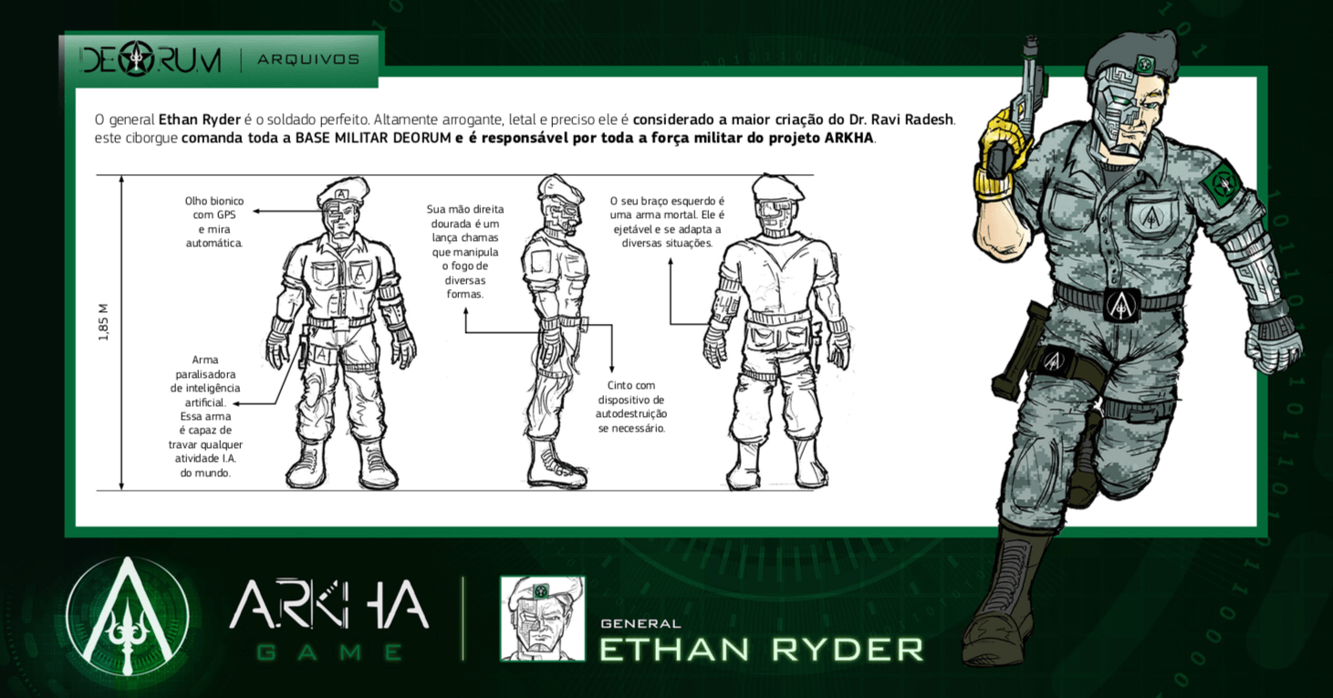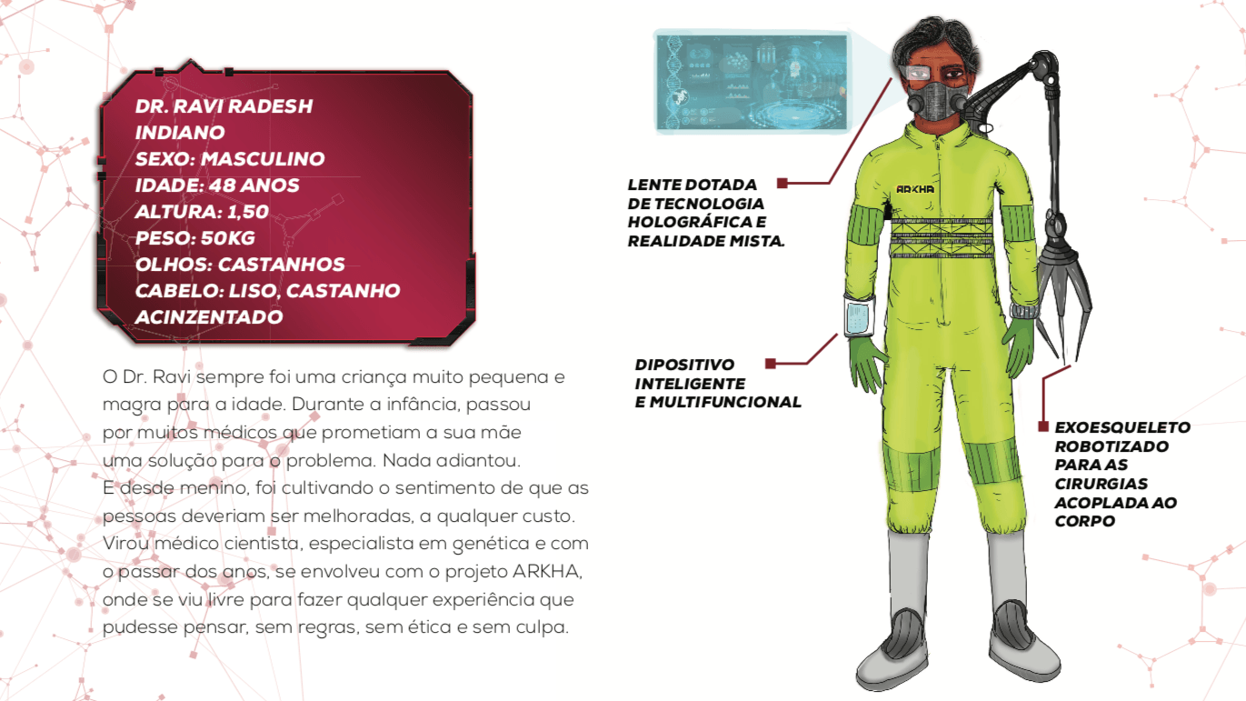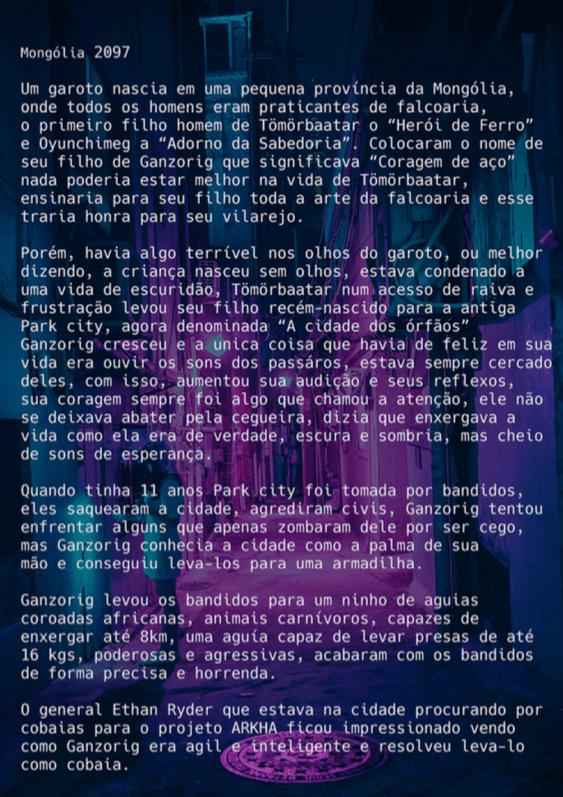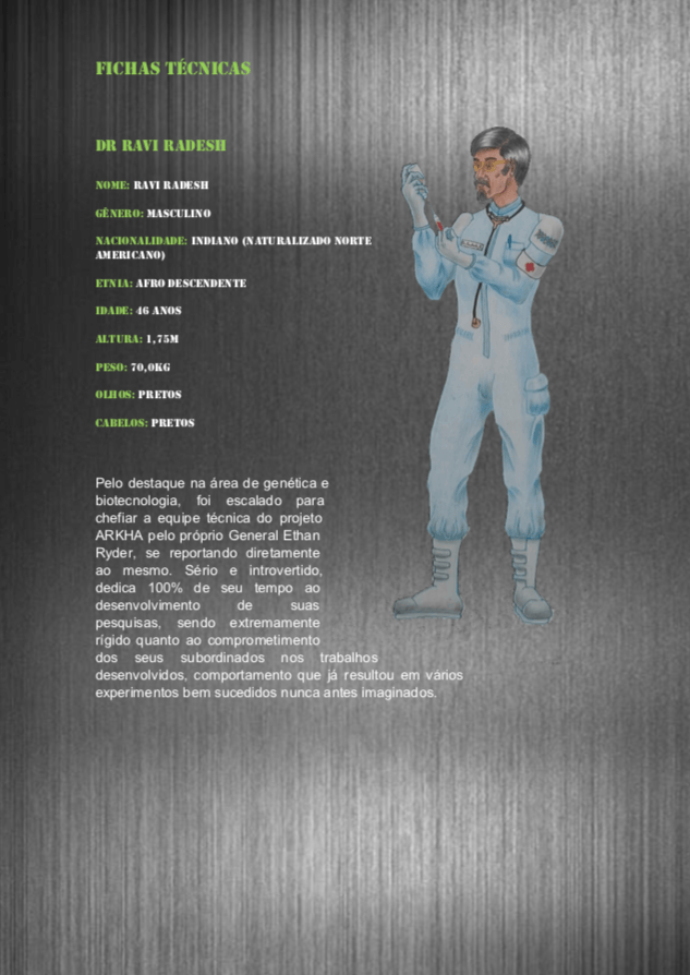 Bom, a história do jogo foi desenvolvida pelo Rick Fernandes alguns anos atrás, quando ele decidiu desenvolver personagens futuristas e queria que os personagens tivessem uma história, e personalidades definidas.