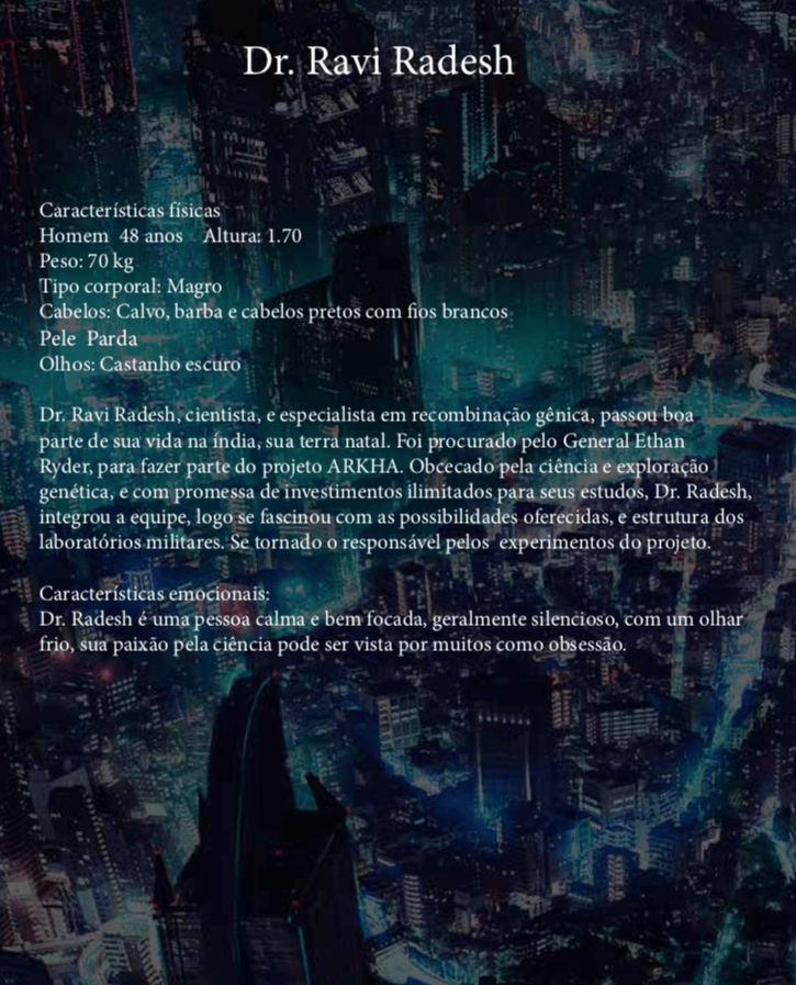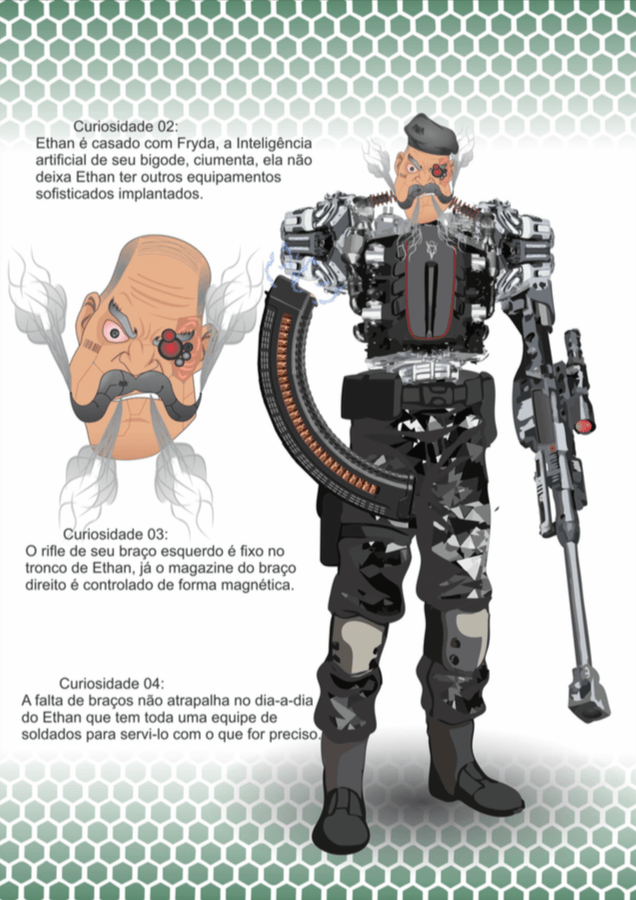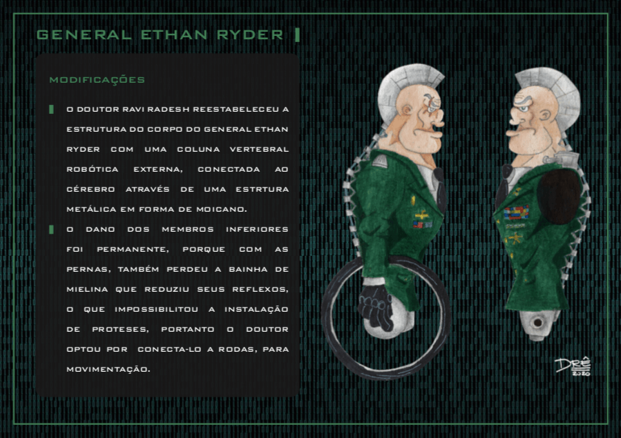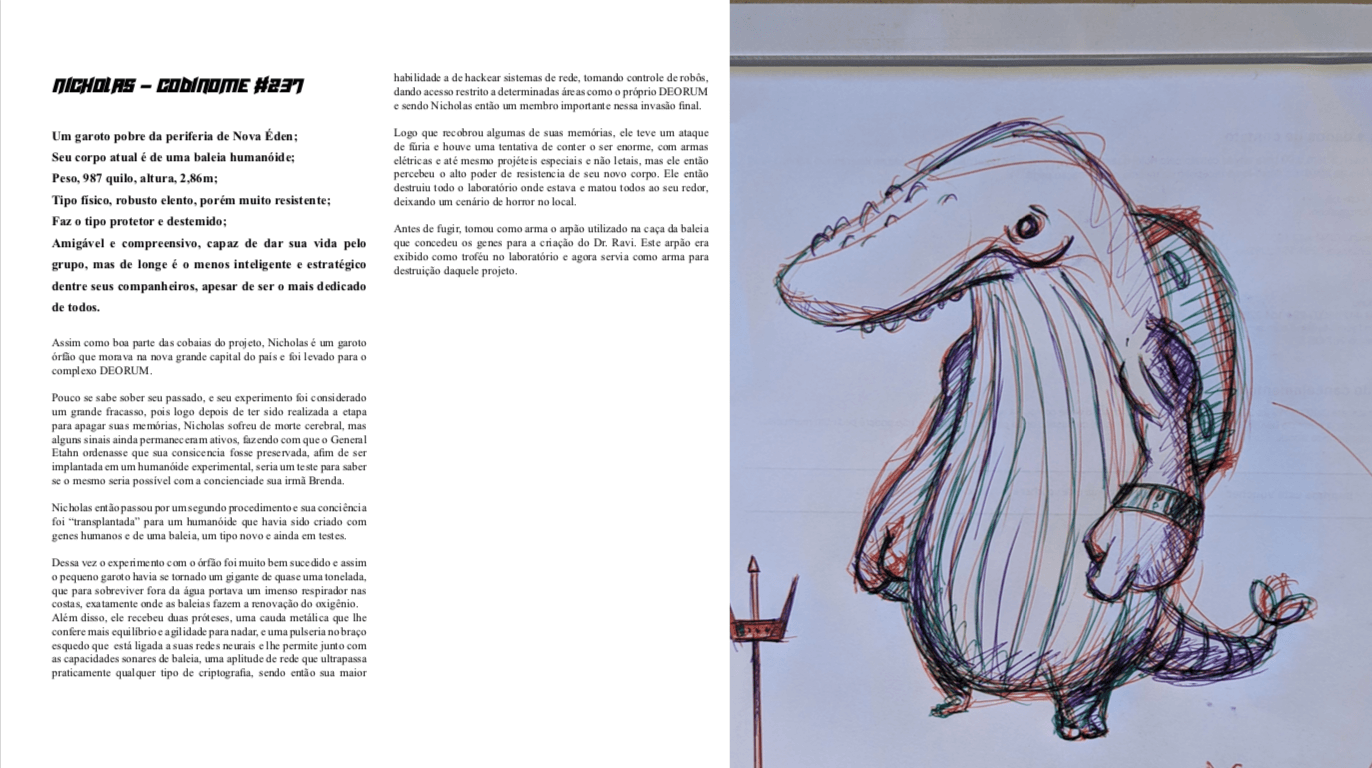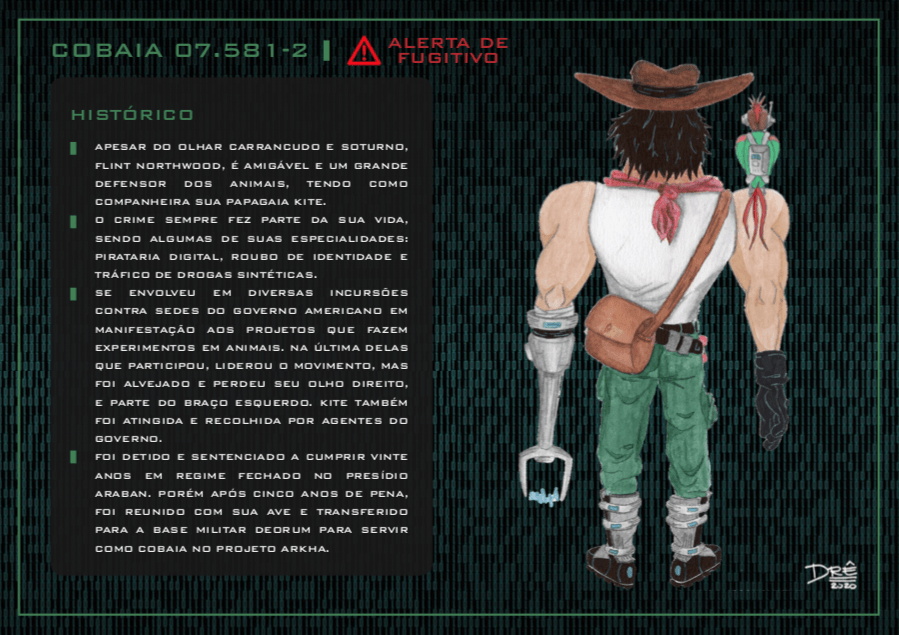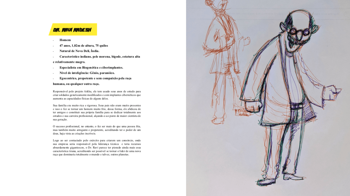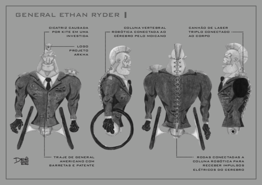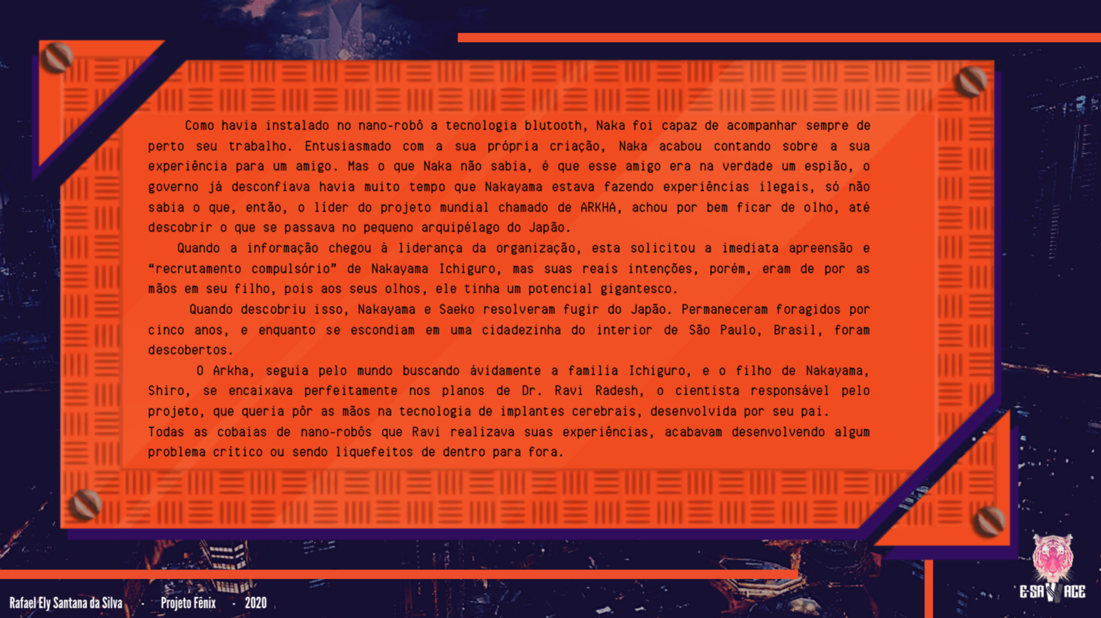Bom, a história do jogo foi desenvolvida pelo Rick Fernandes alguns anos atrás, quando ele decidiu desenvolver personagens futuristas e queria que os personagens tivessem uma história, e personalidades definidas.