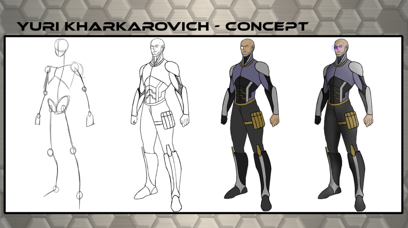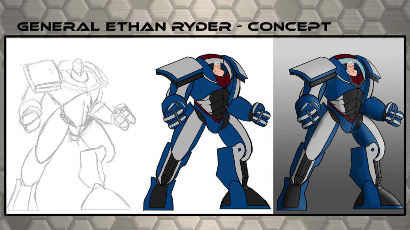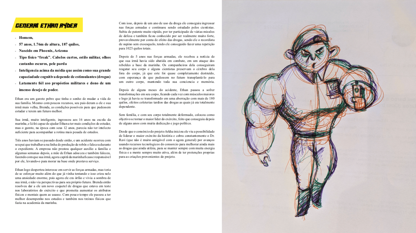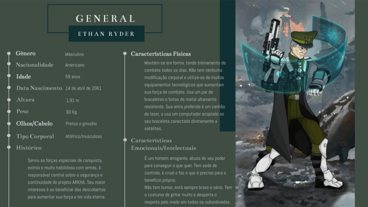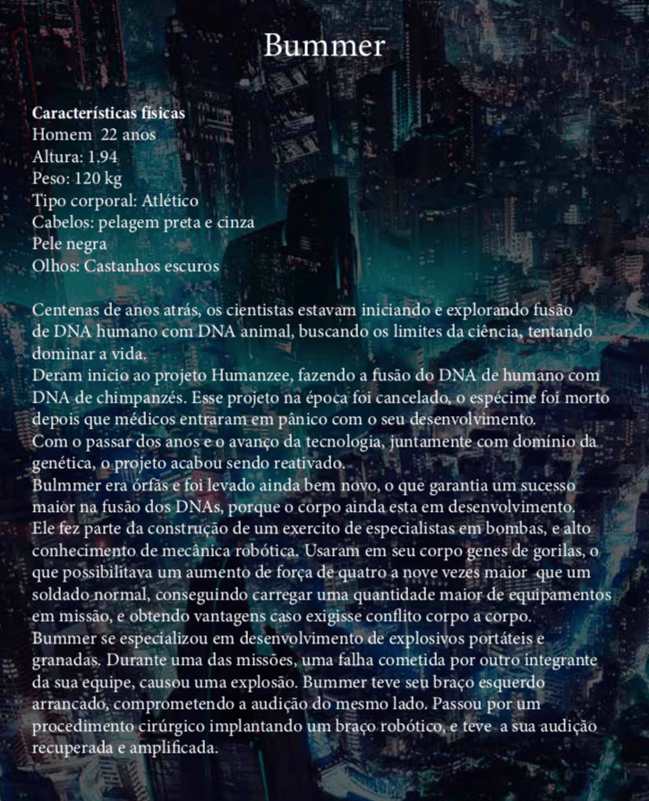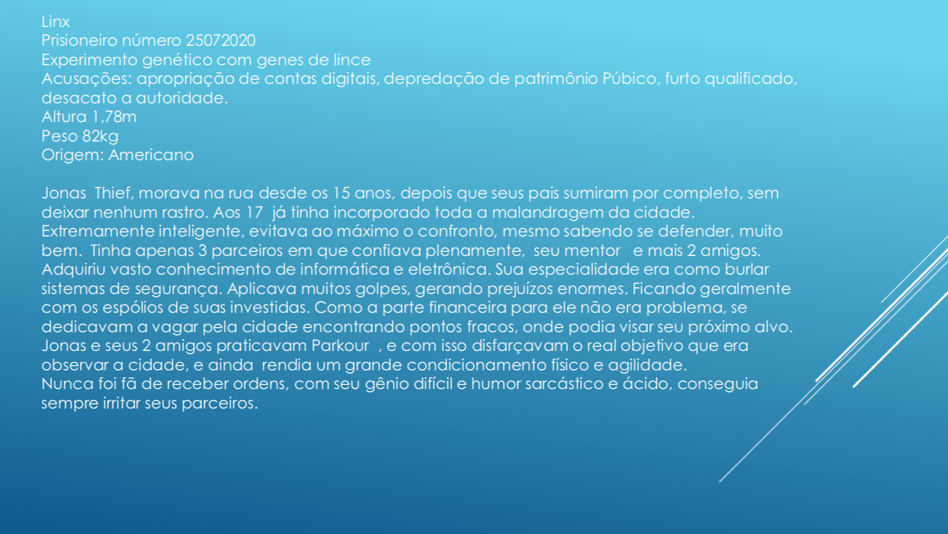 Bom, a história do jogo foi desenvolvida pelo Rick Fernandes alguns anos atrás, quando ele decidiu desenvolver personagens futuristas e queria que os personagens tivessem uma história, e personalidades definidas.