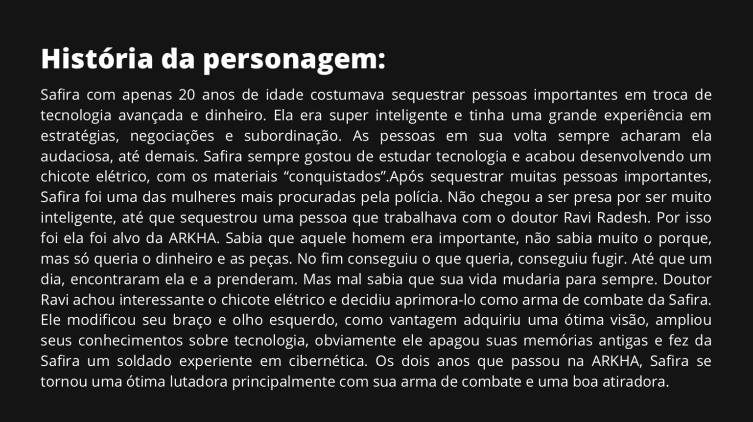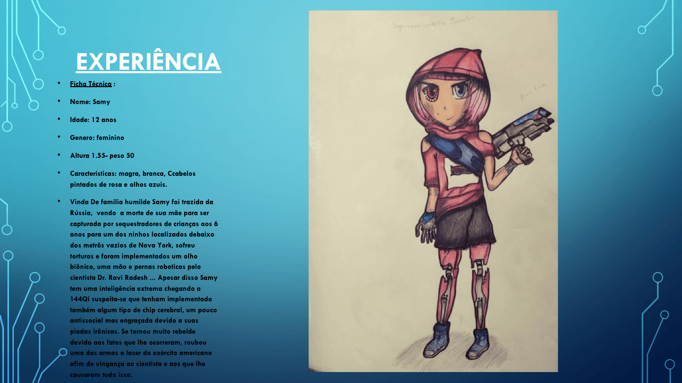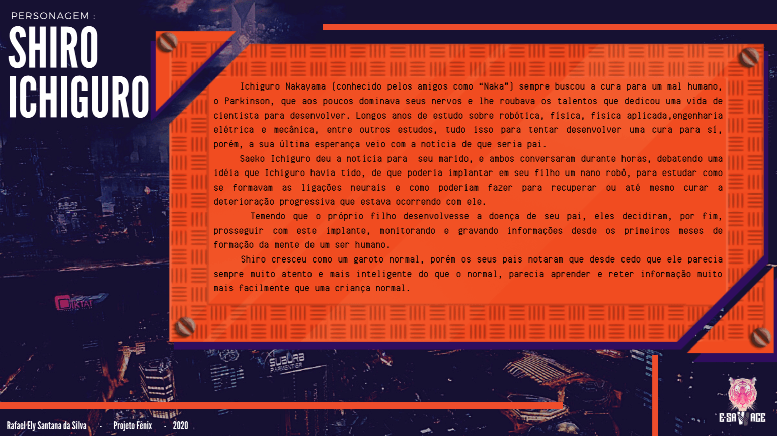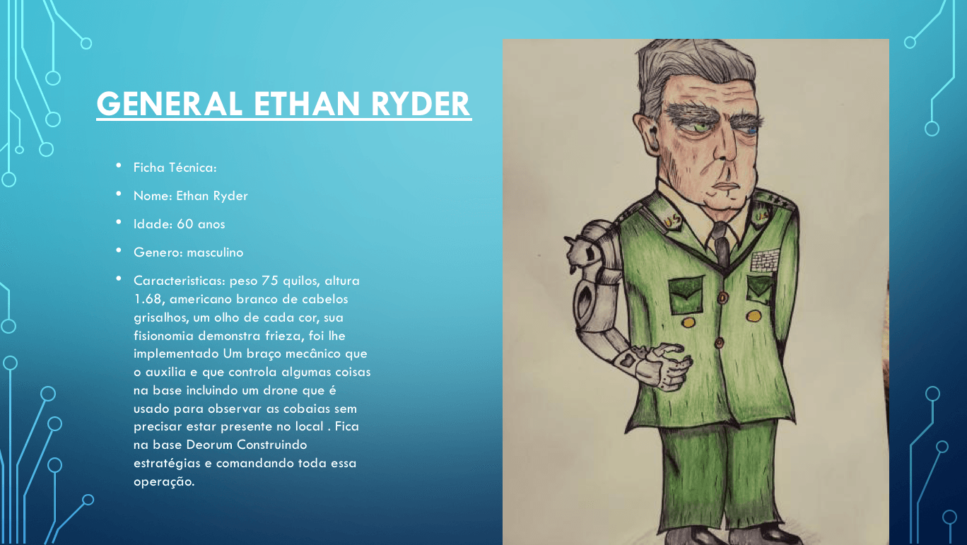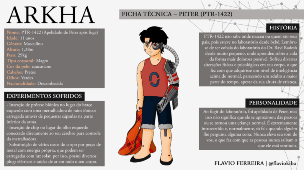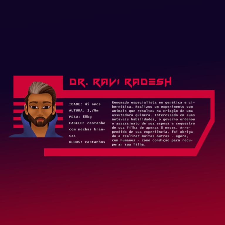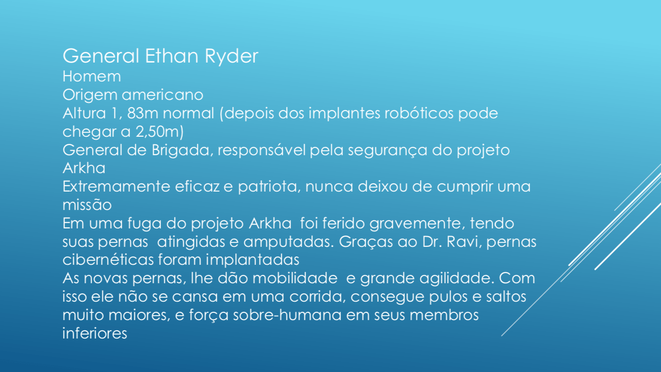 Bom, a história do jogo foi desenvolvida pelo Rick Fernandes alguns anos atrás, quando ele decidiu desenvolver personagens futuristas e queria que os personagens tivessem uma história, e personalidades definidas.