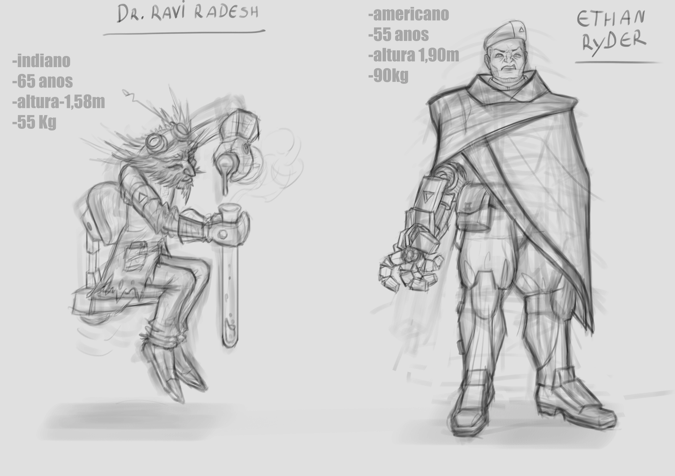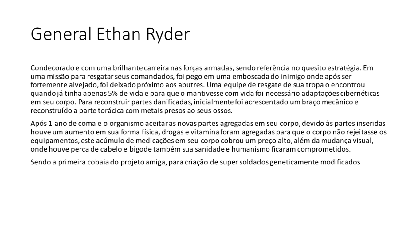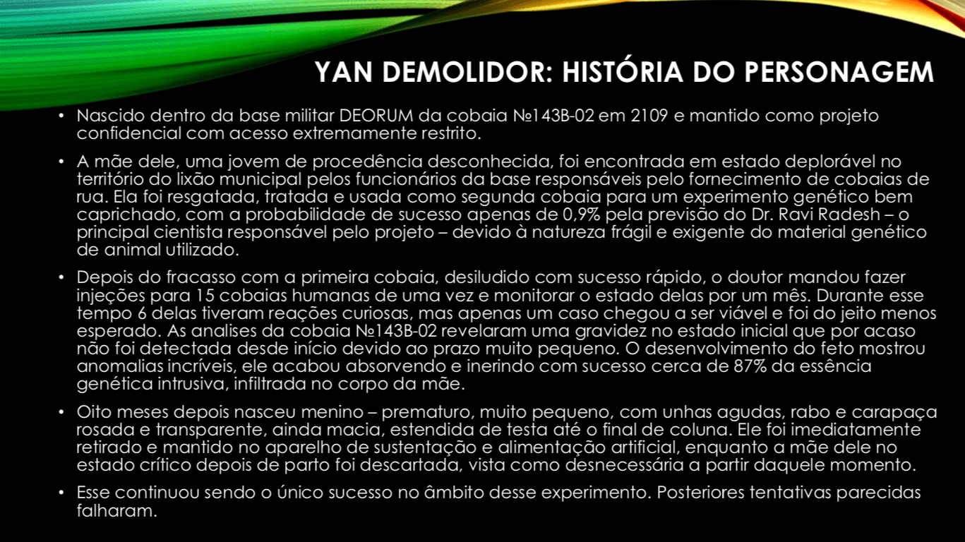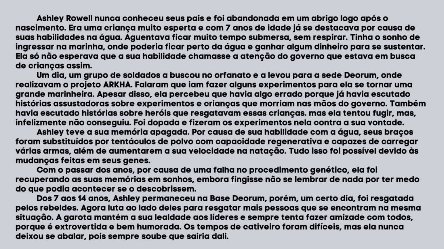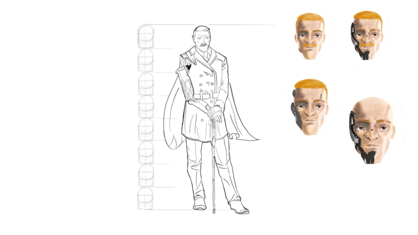 Bom, a história do jogo foi desenvolvida pelo Rick Fernandes alguns anos atrás, quando ele decidiu desenvolver personagens futuristas e queria que os personagens tivessem uma história, e personalidades definidas.
