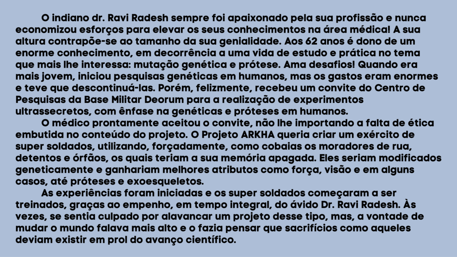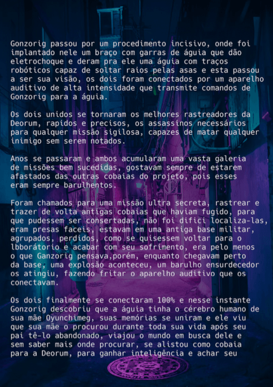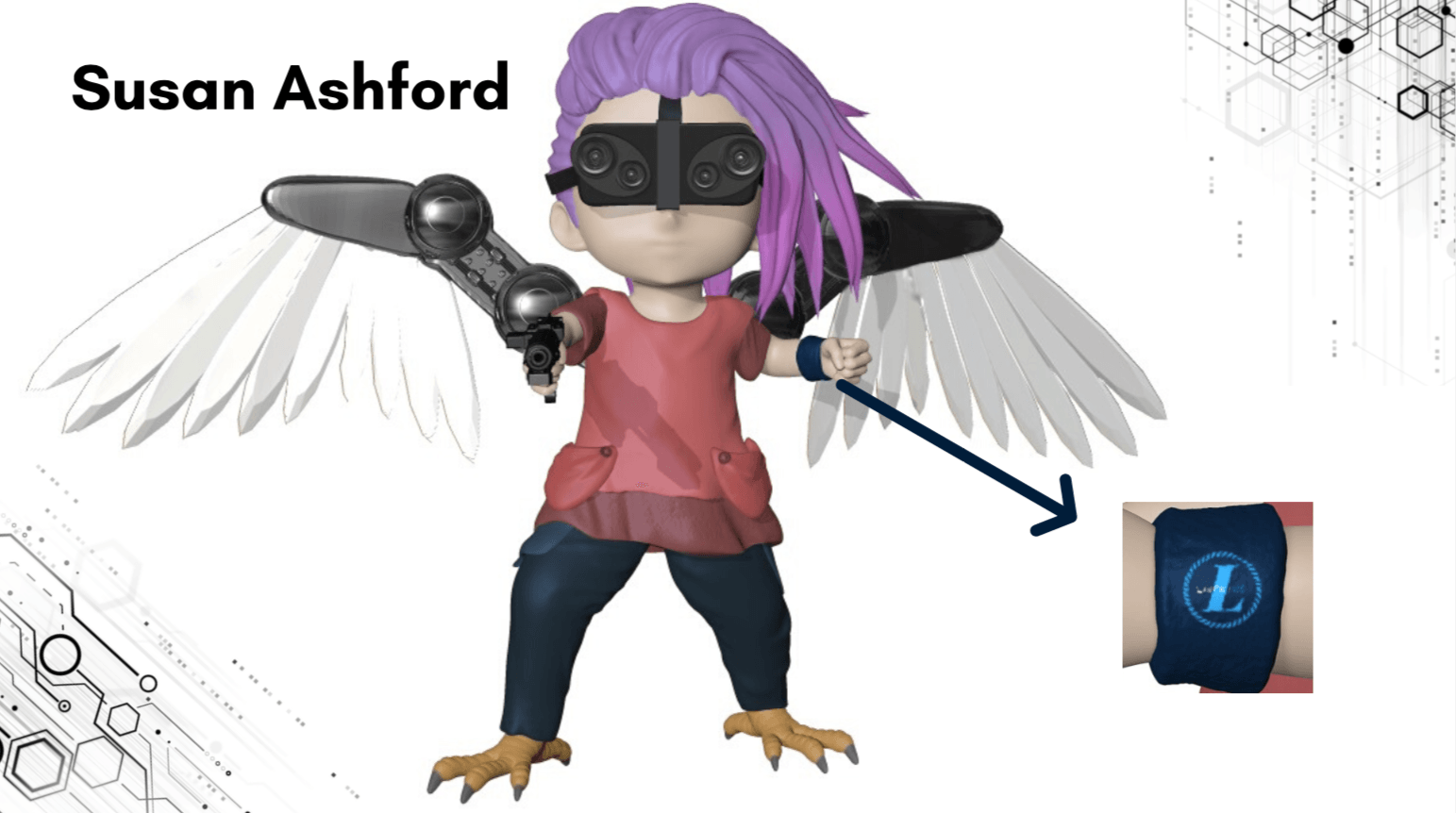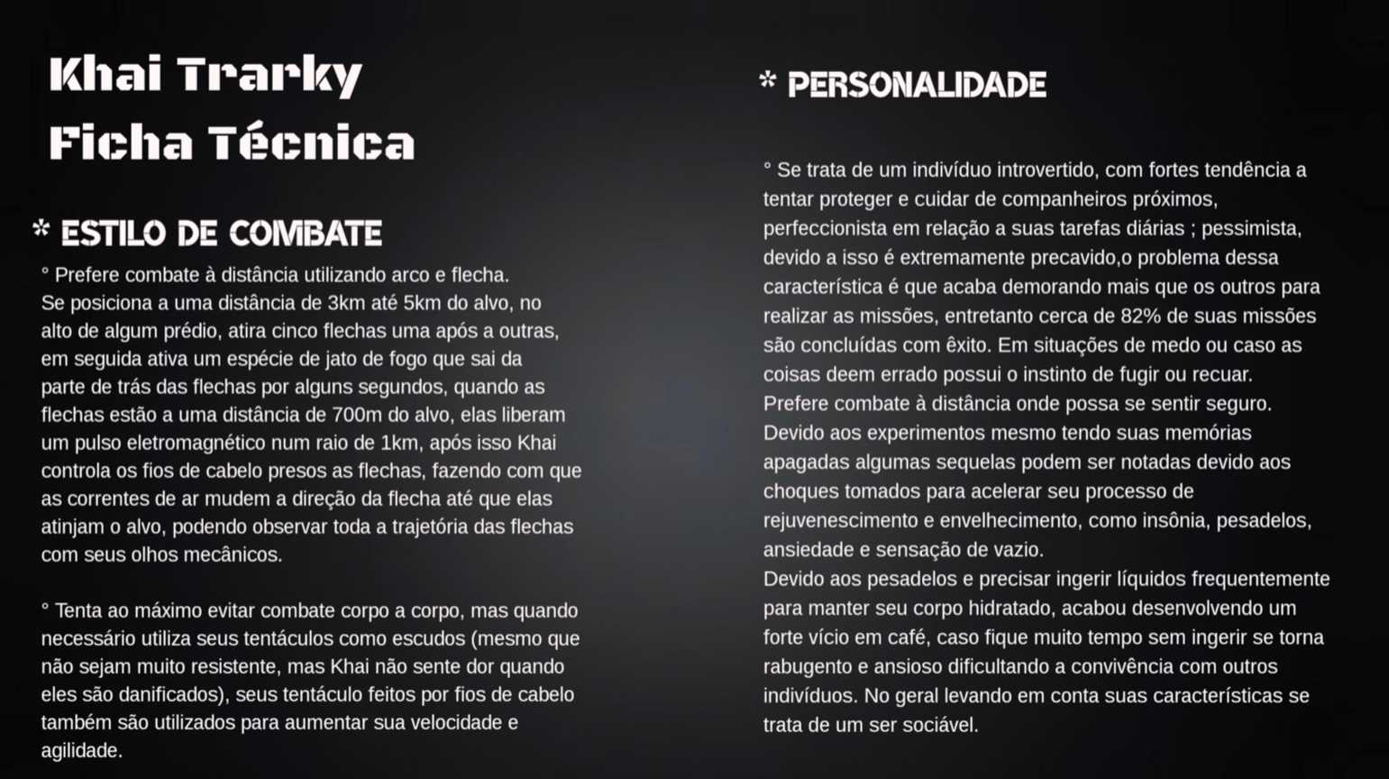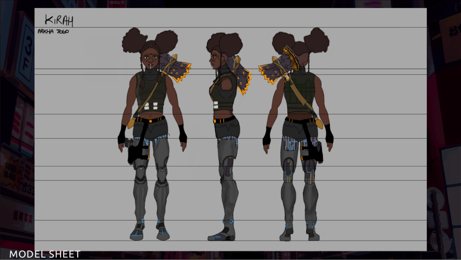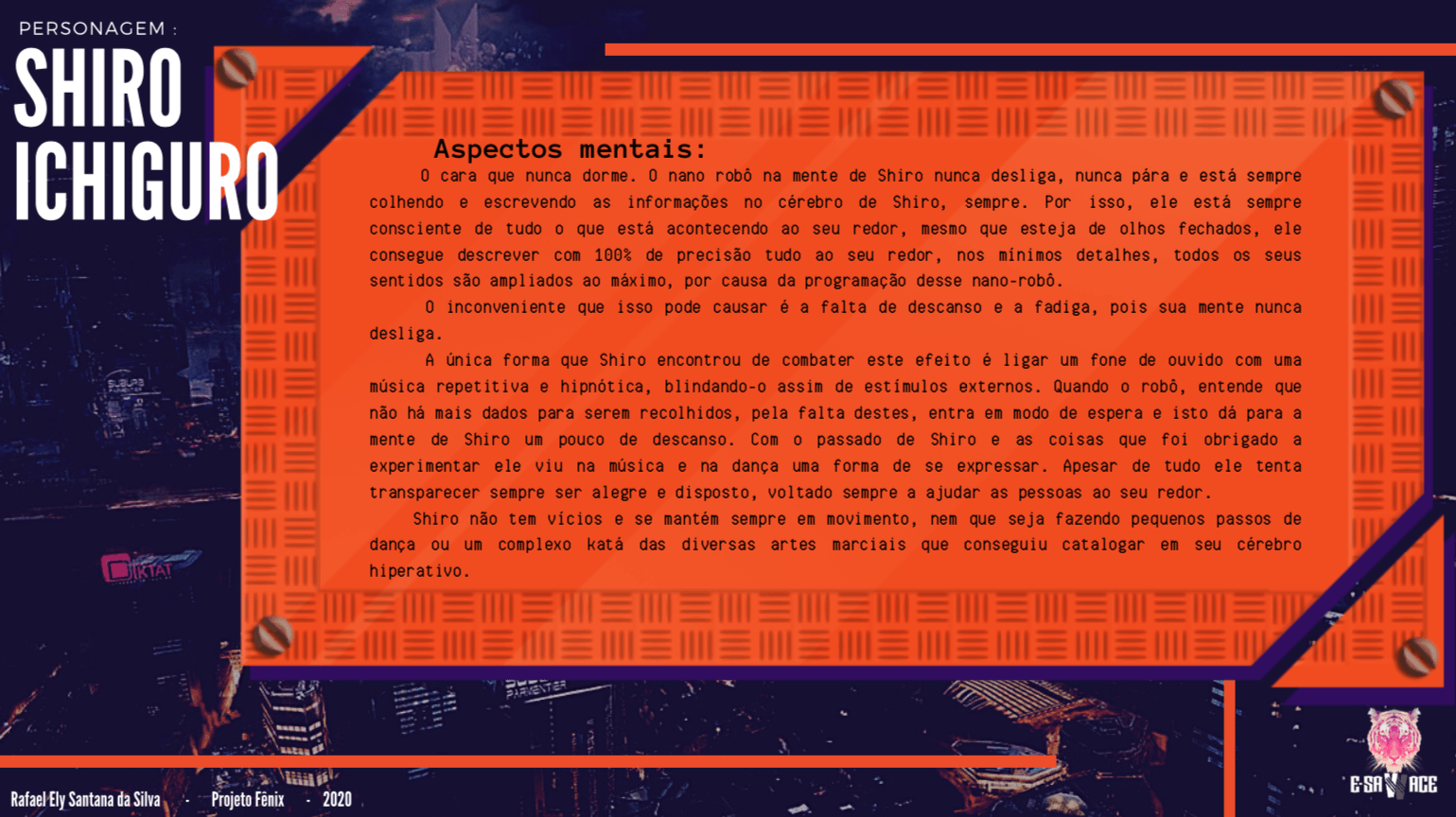 Bom, a história do jogo foi desenvolvida pelo Rick Fernandes alguns anos atrás, quando ele decidiu desenvolver personagens futuristas e queria que os personagens tivessem uma história, e personalidades definidas.