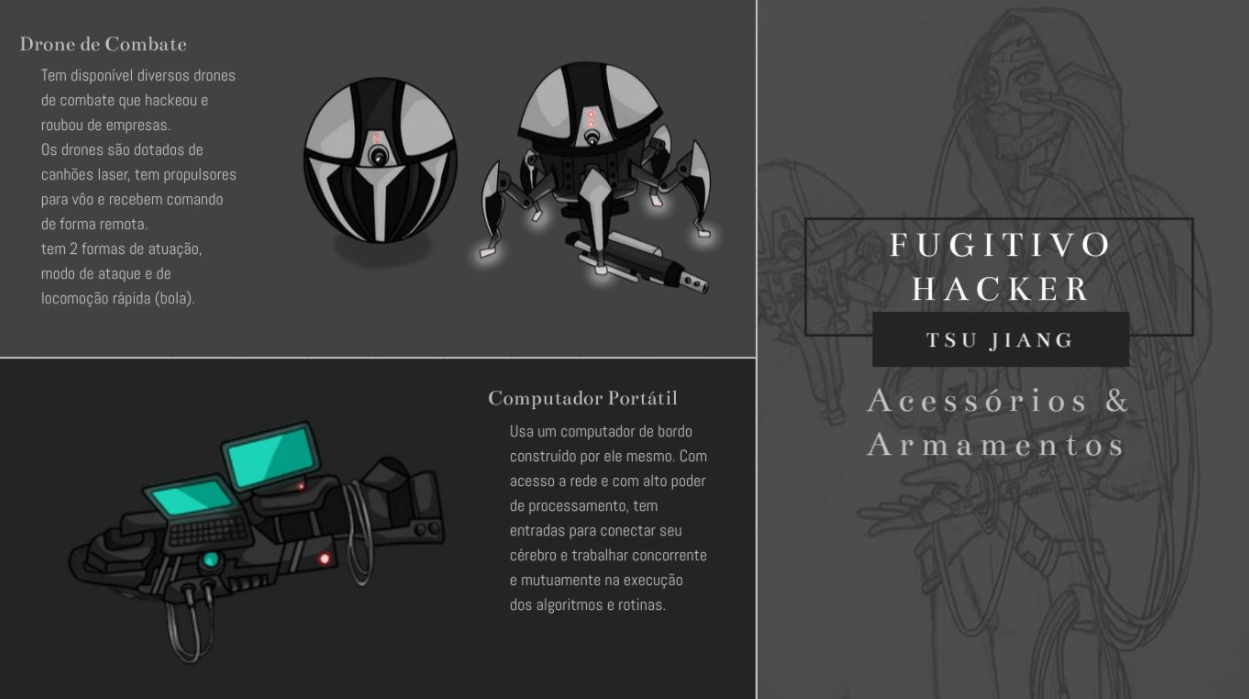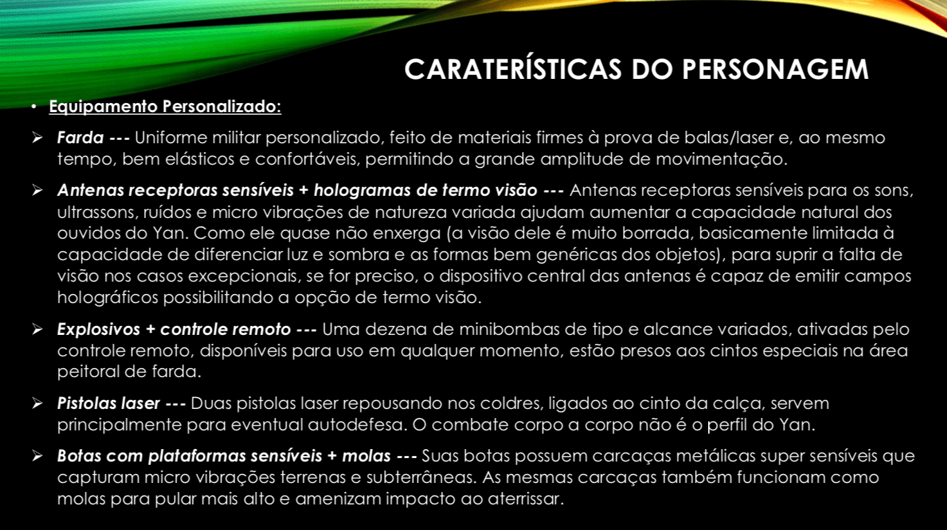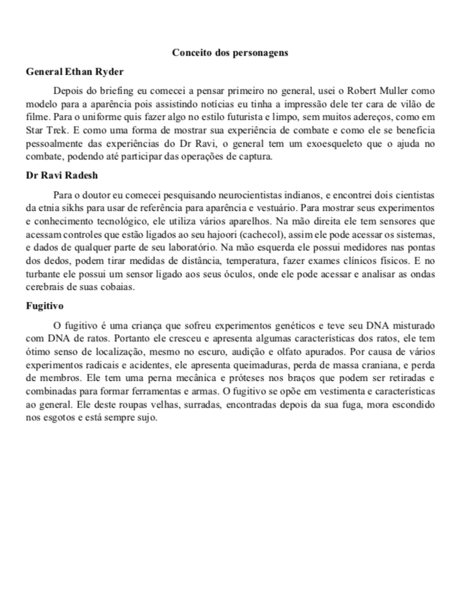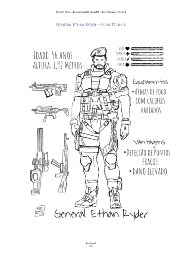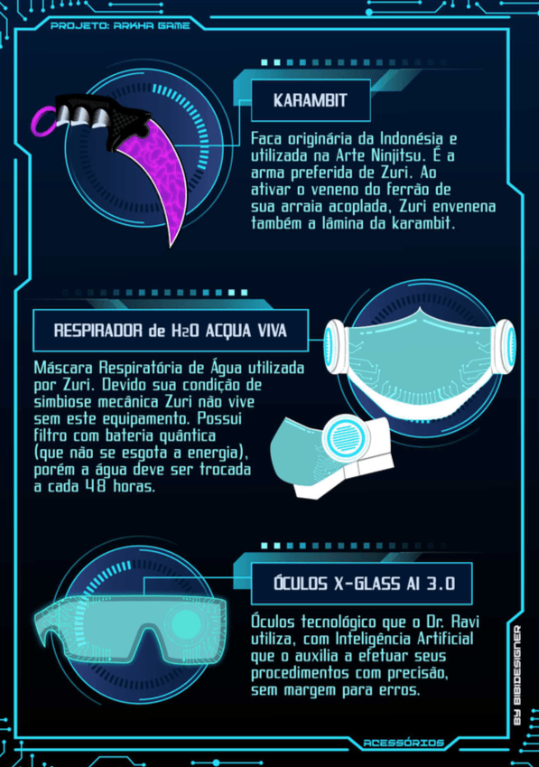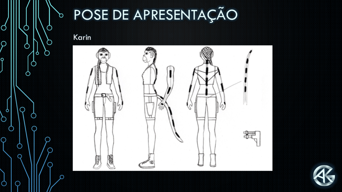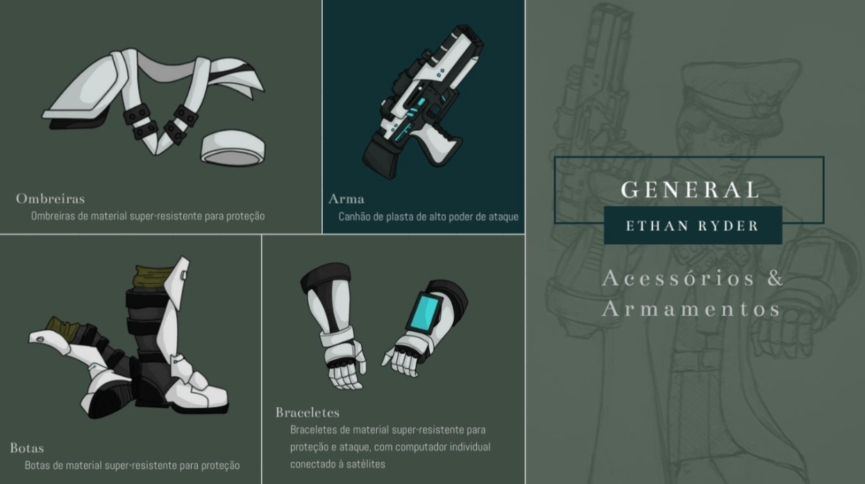 - Personagens - Pose de apresentação + acessórios + ficha técnica