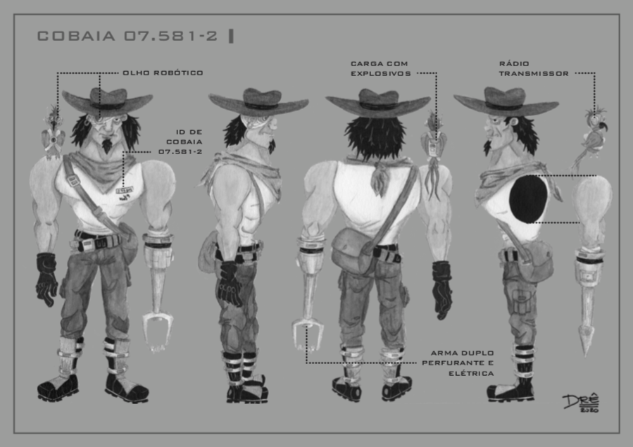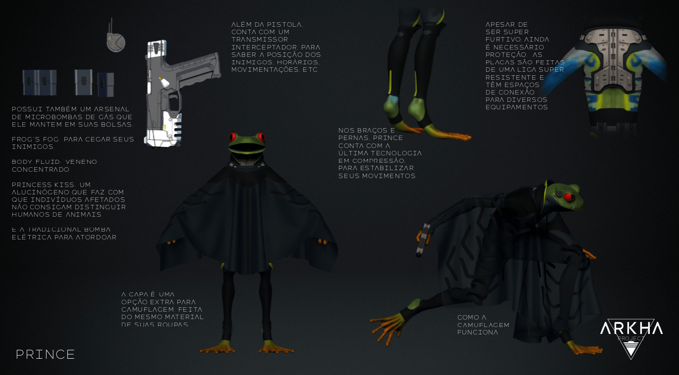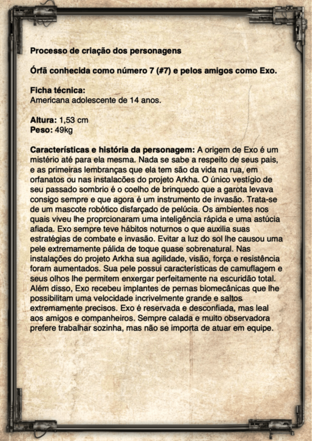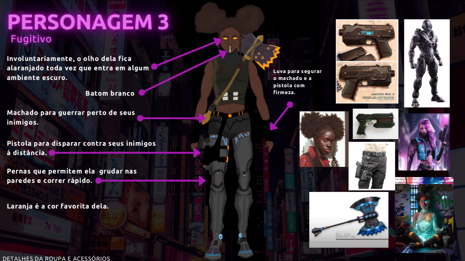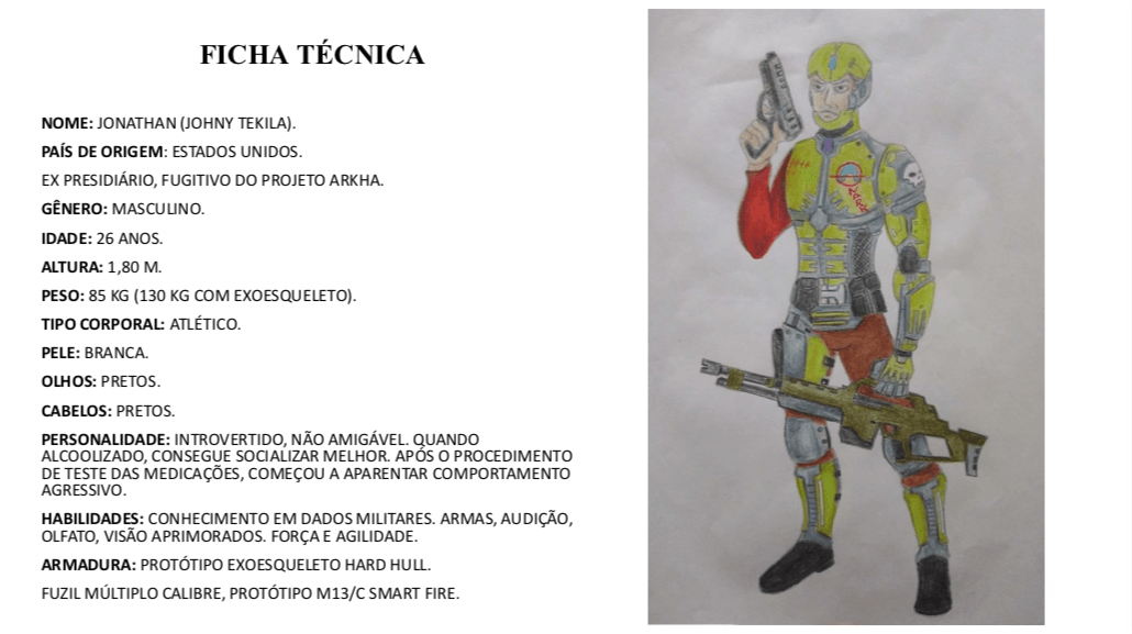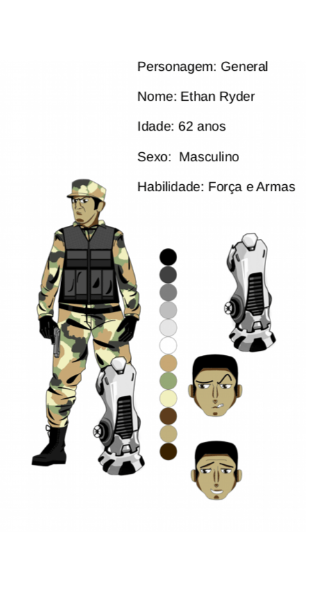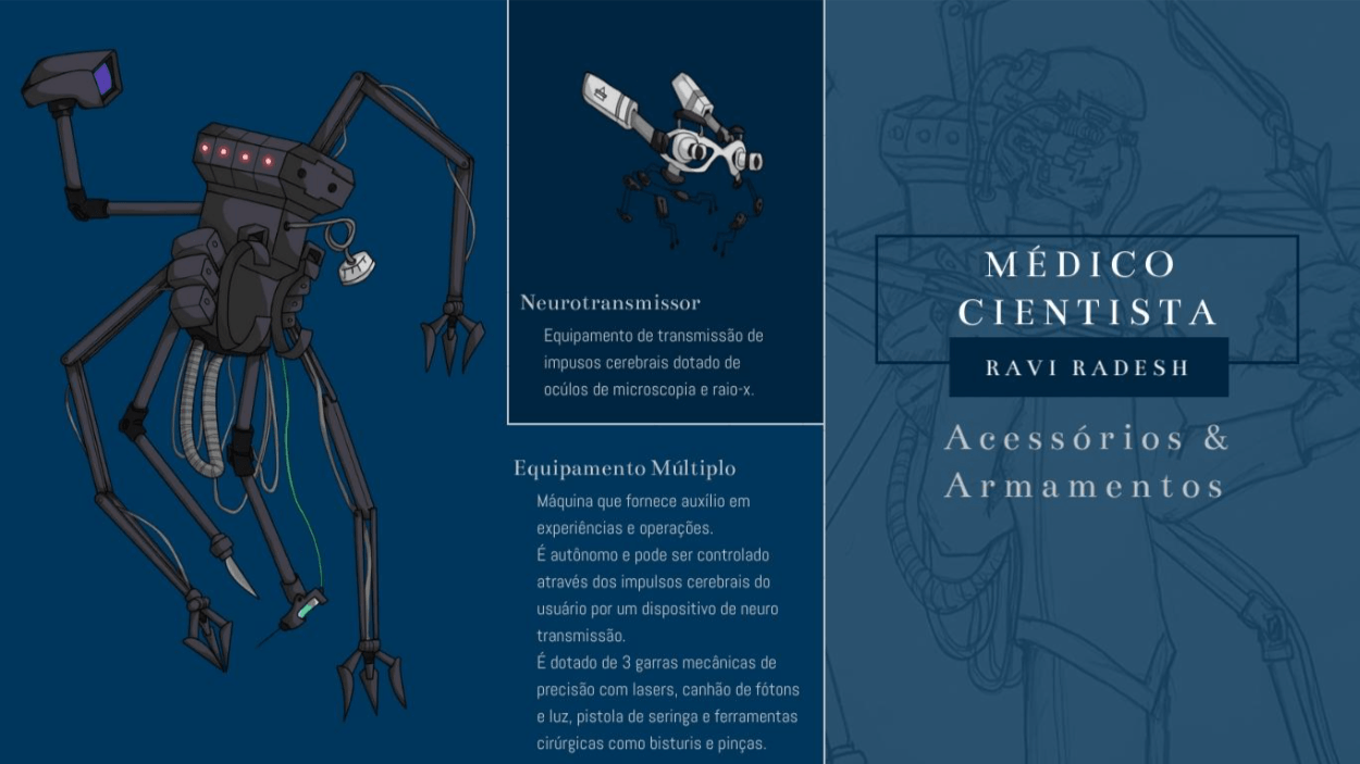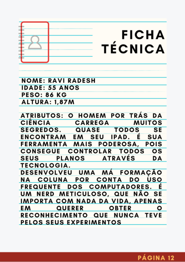 - Personagens - Pose de apresentação + acessórios + ficha técnica