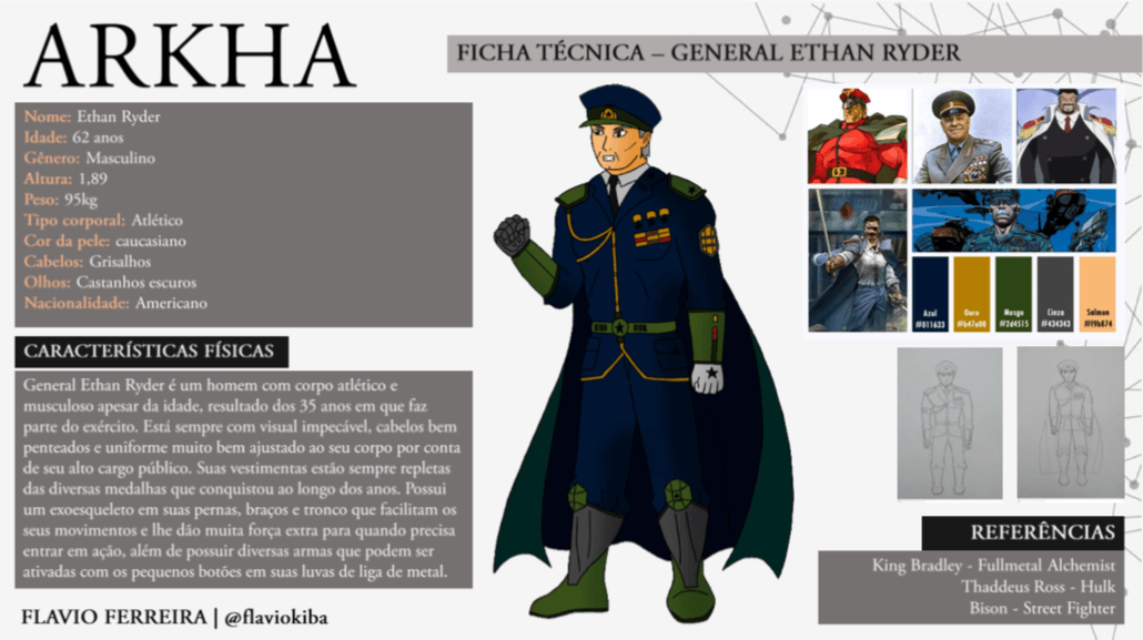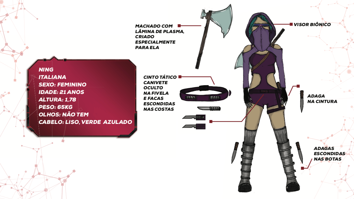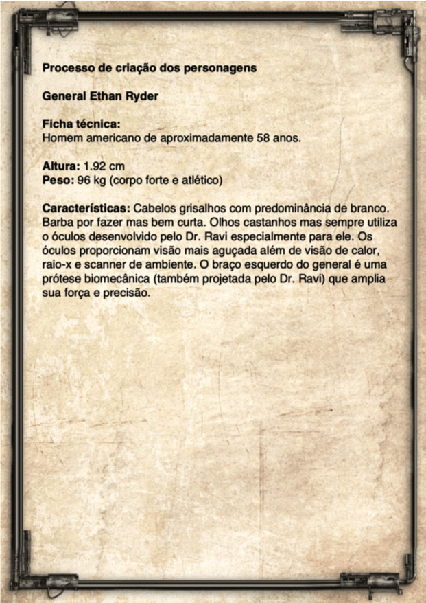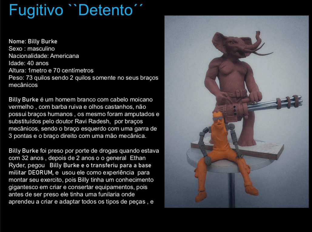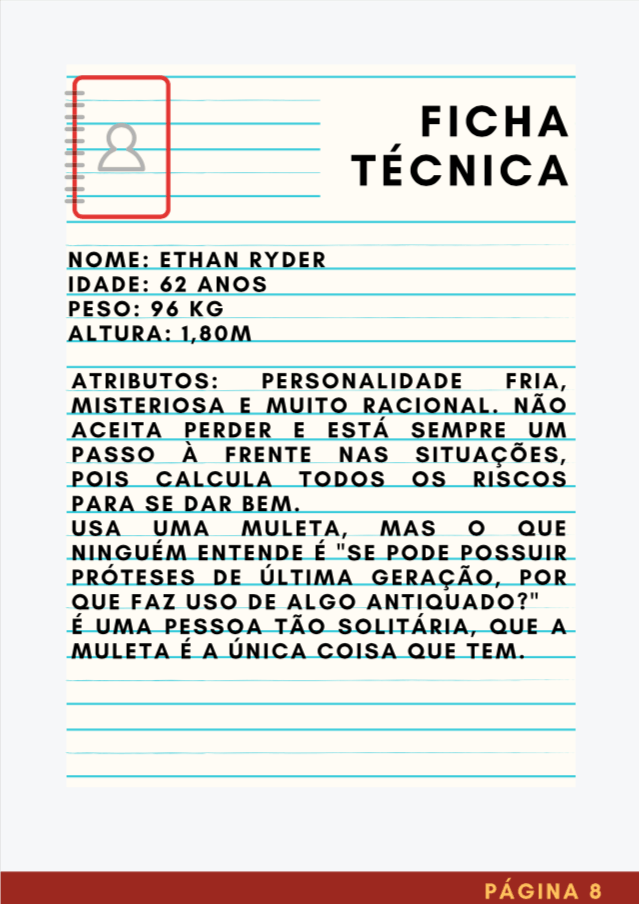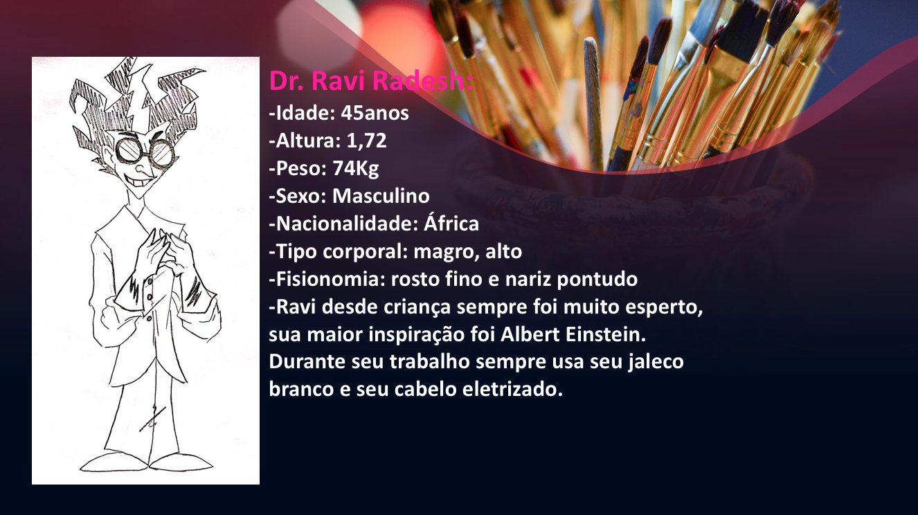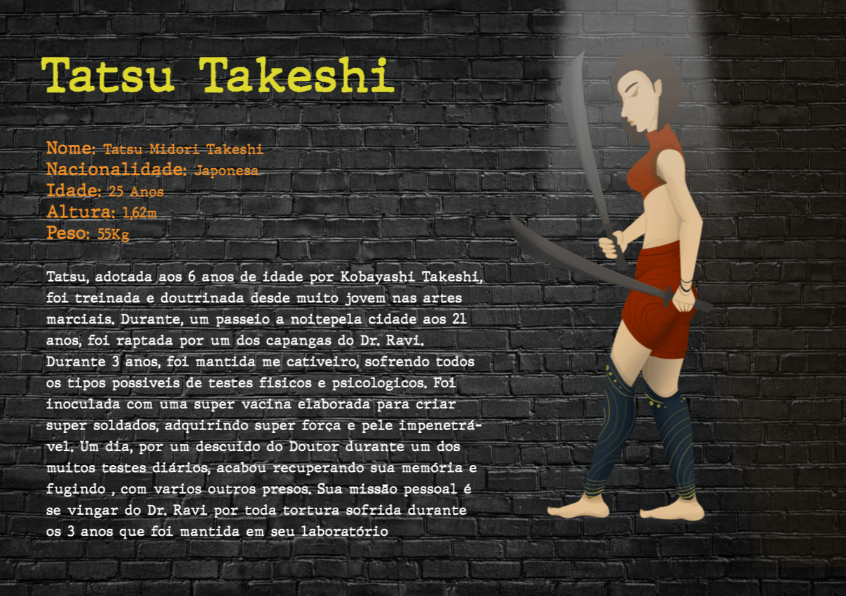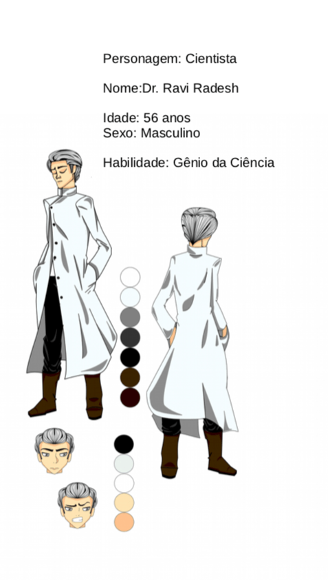 - Personagens - Pose de apresentação + acessórios + ficha técnica