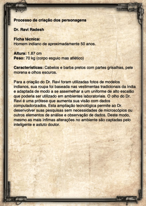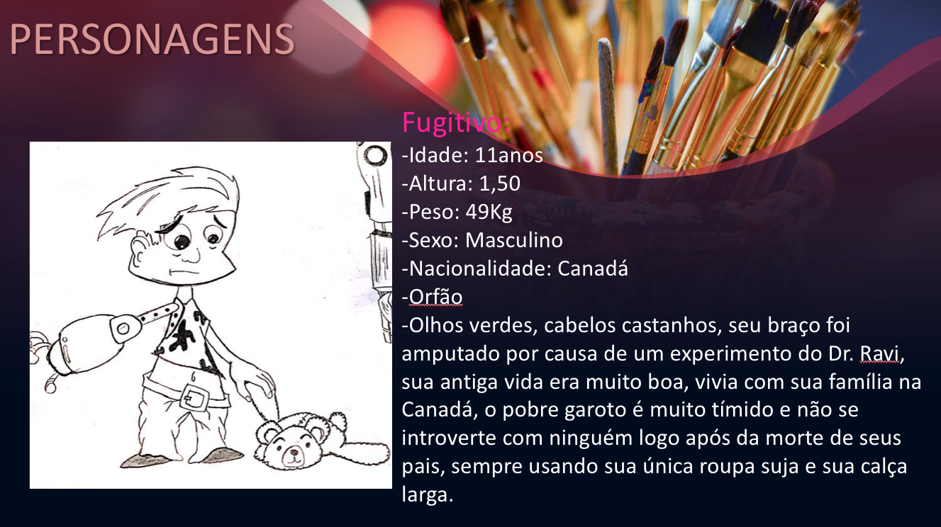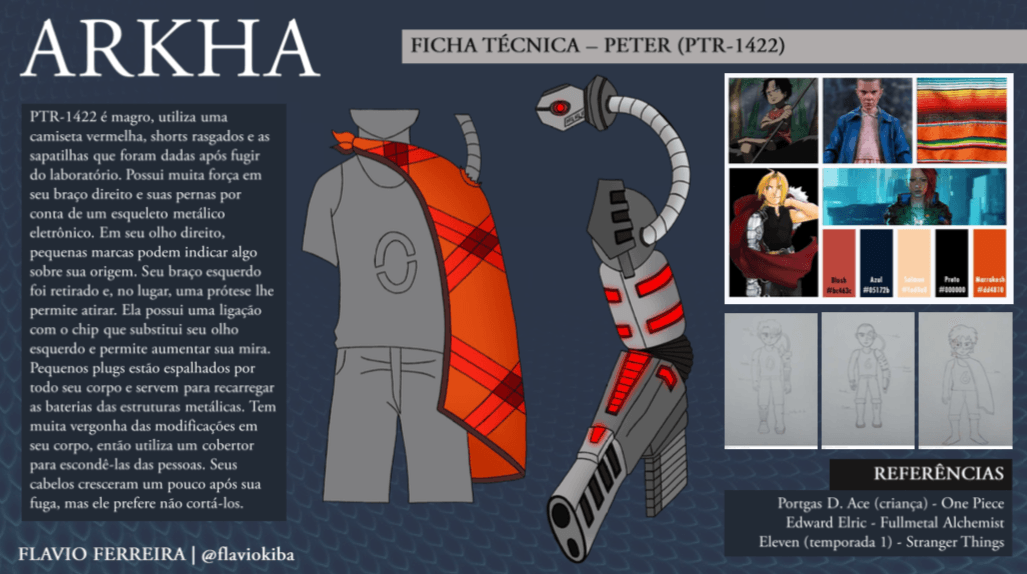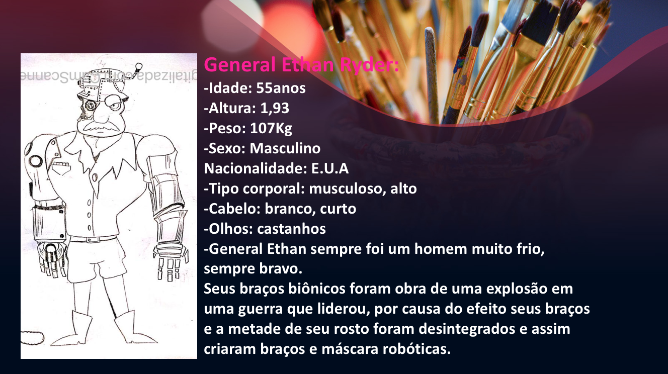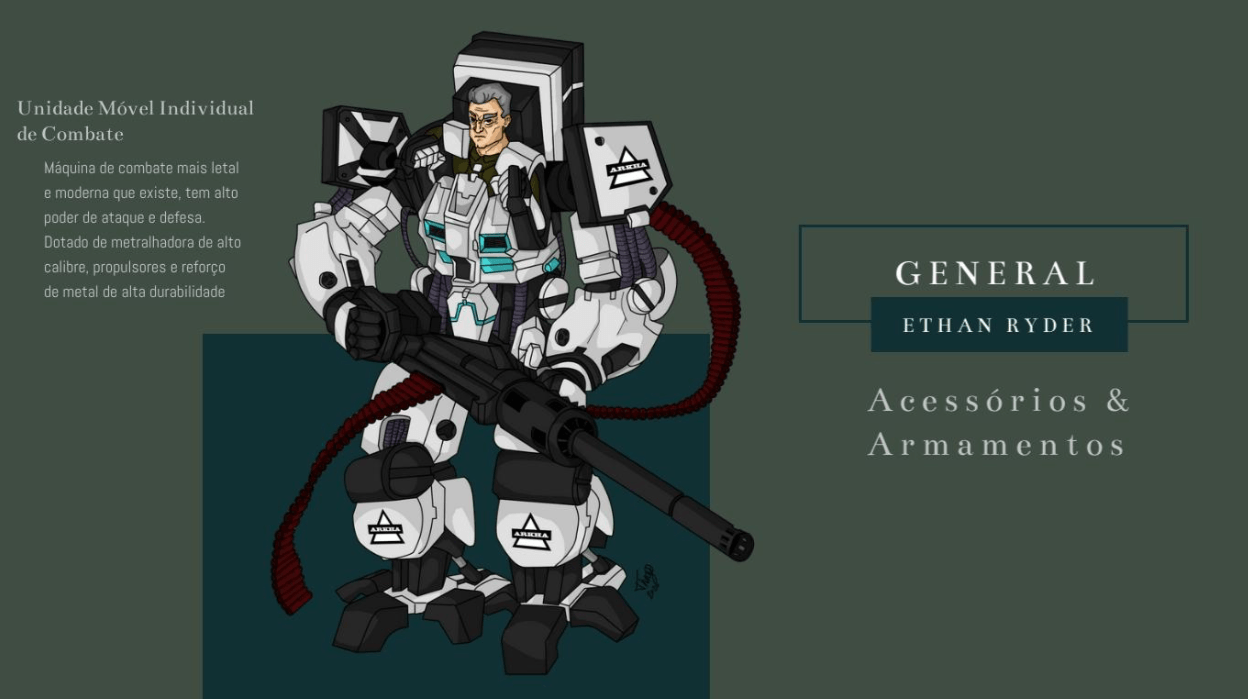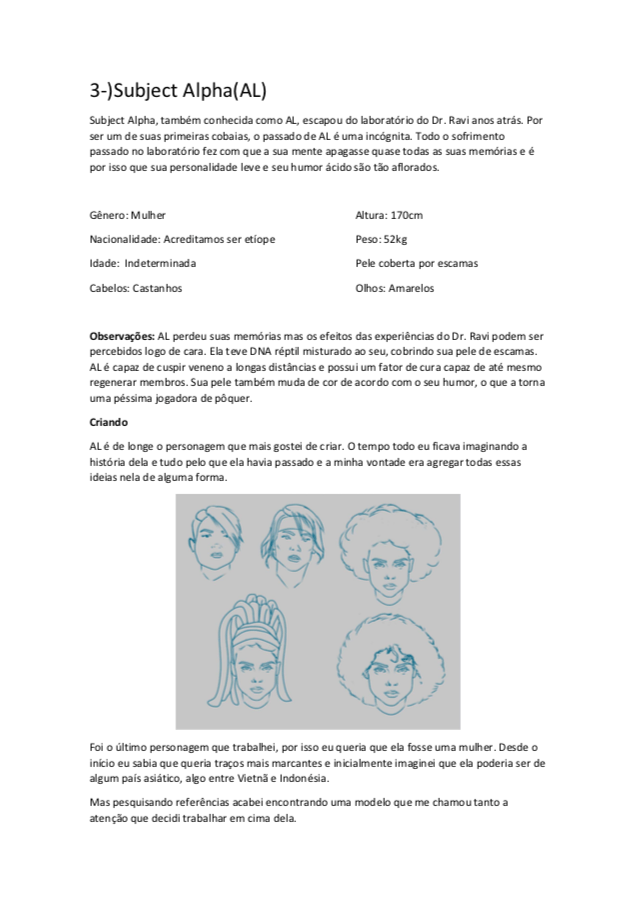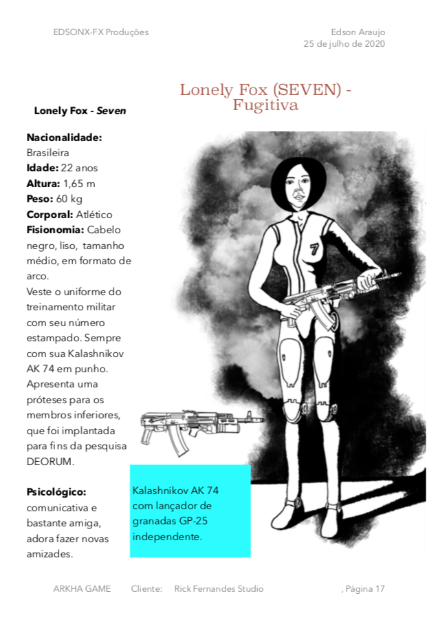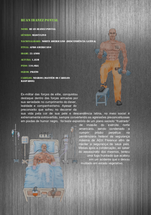 - Personagens - Pose de apresentação + acessórios + ficha técnica