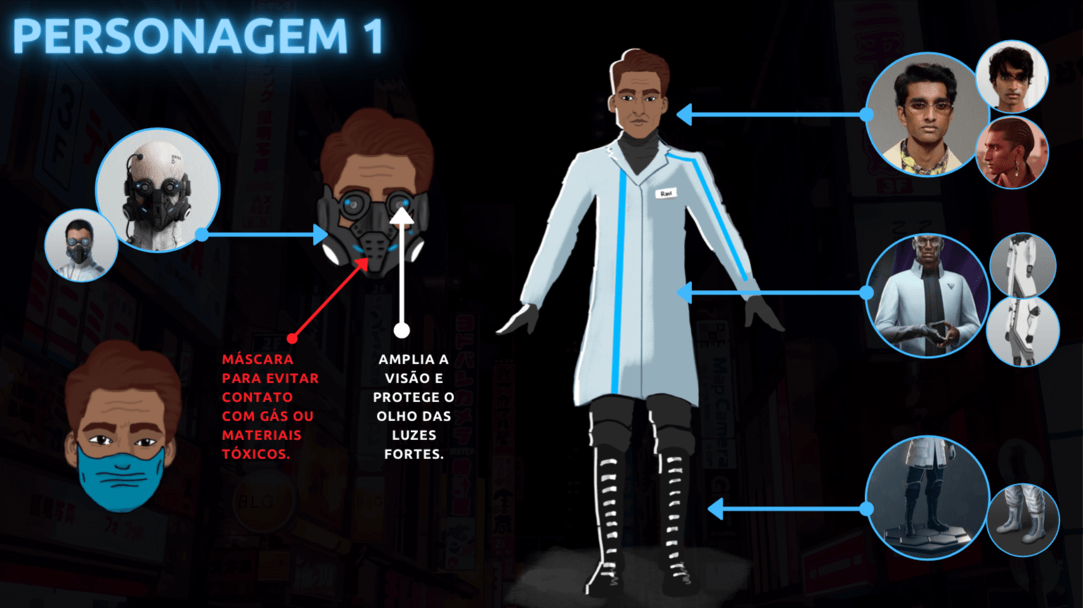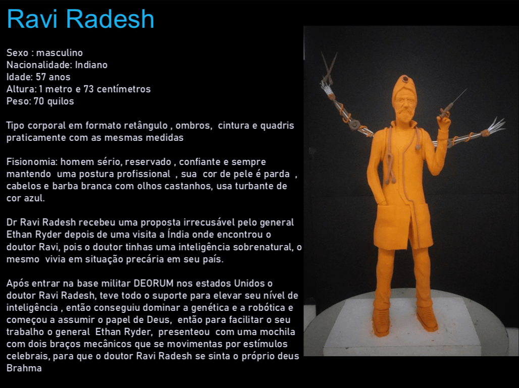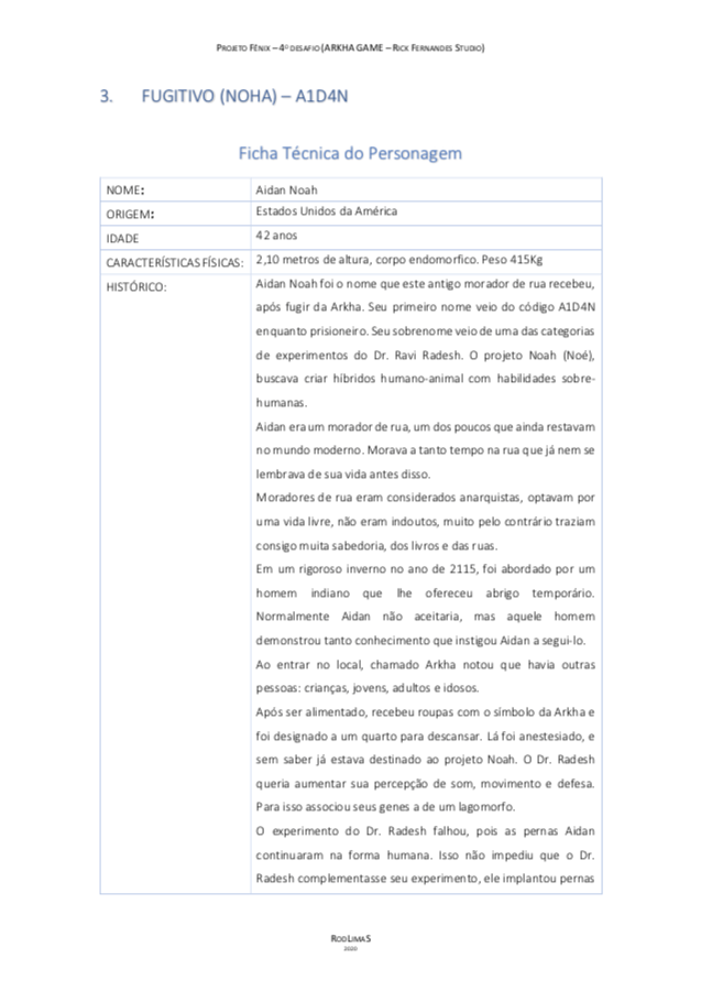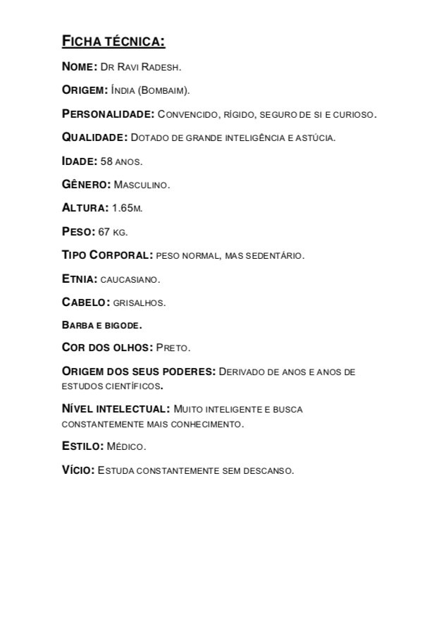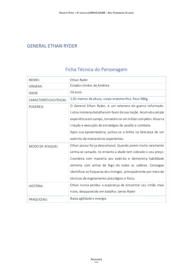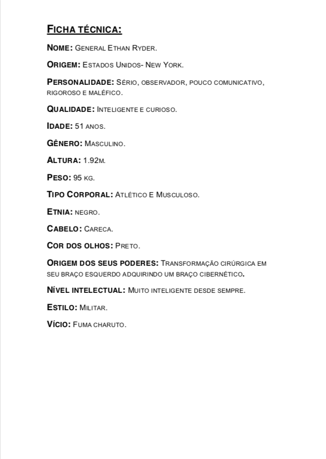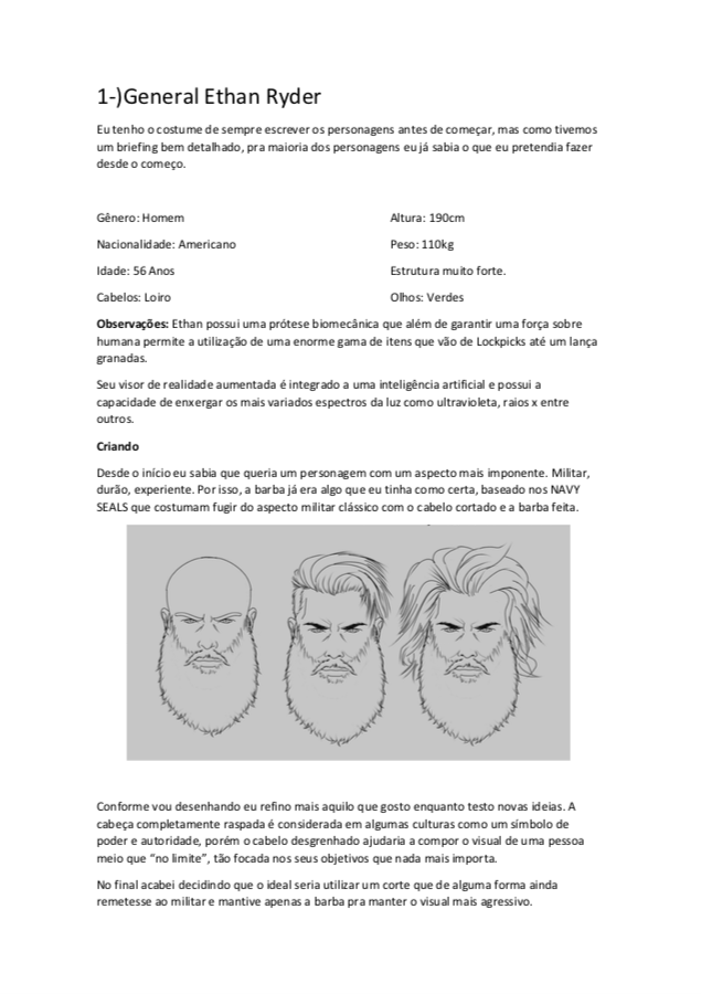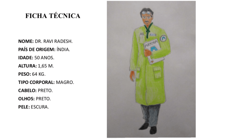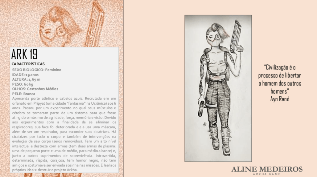 - Personagens - Pose de apresentação + acessórios + ficha técnica