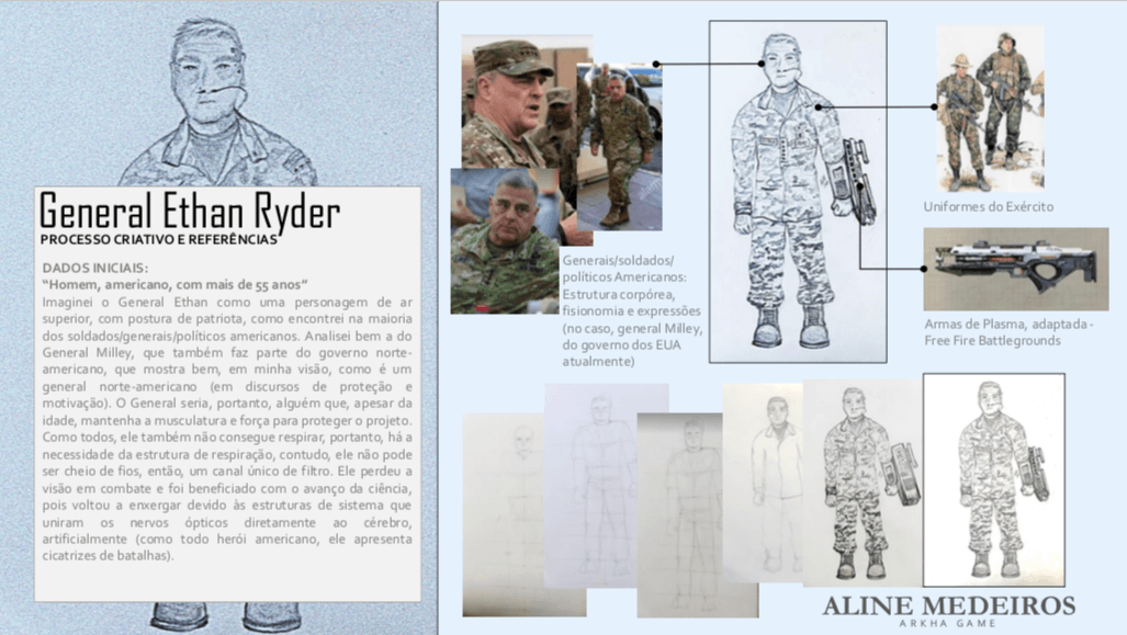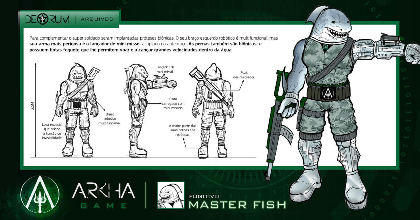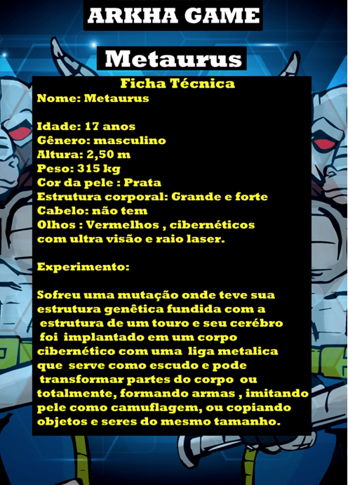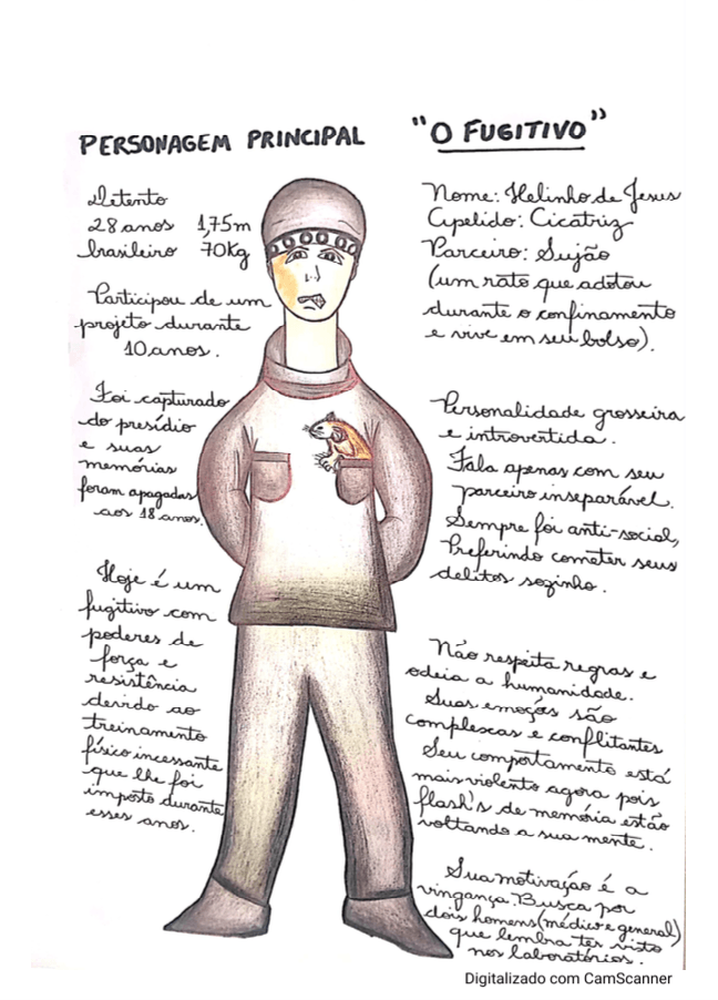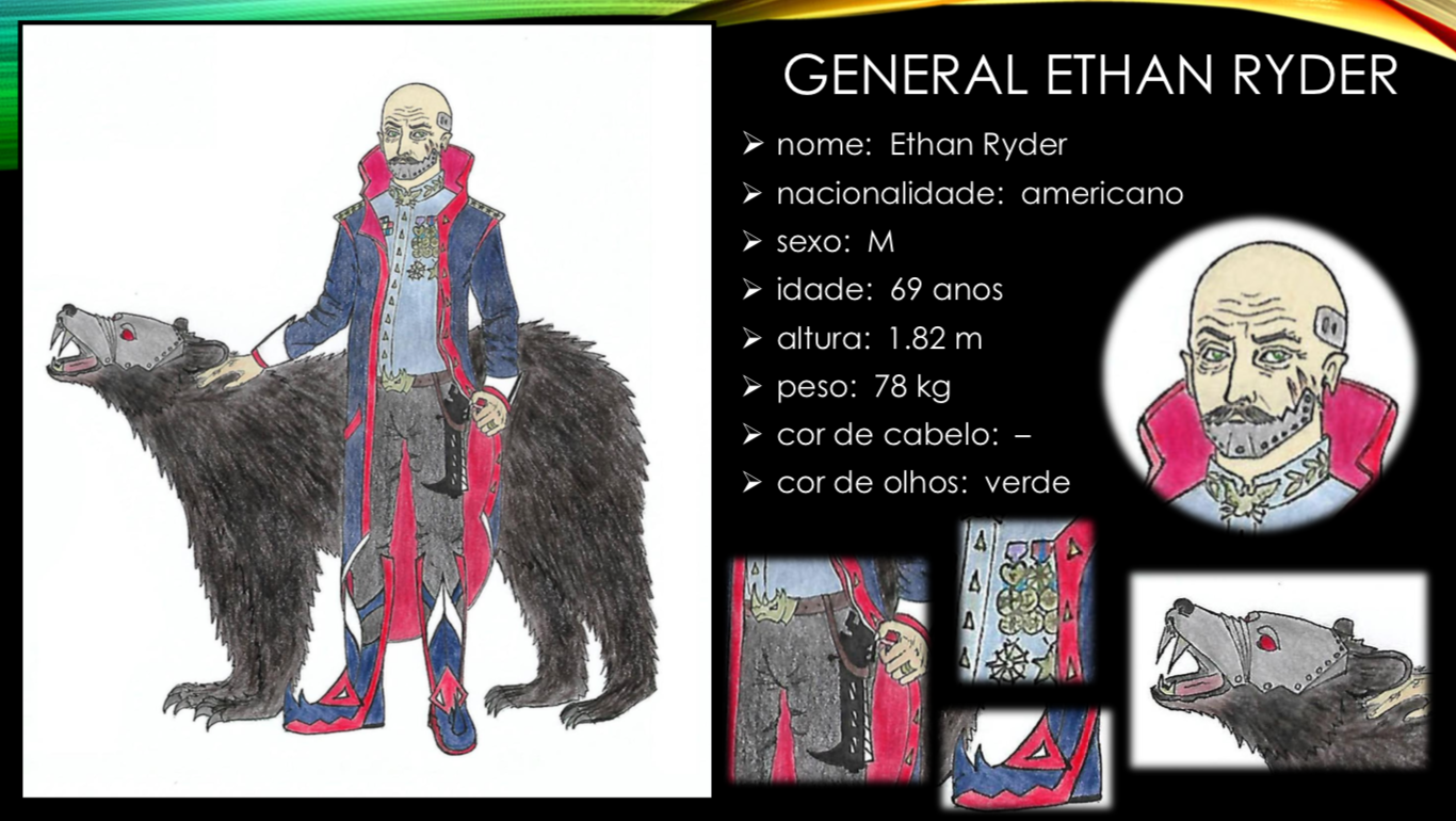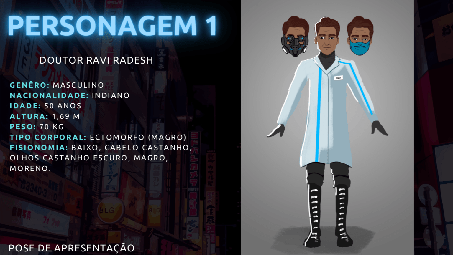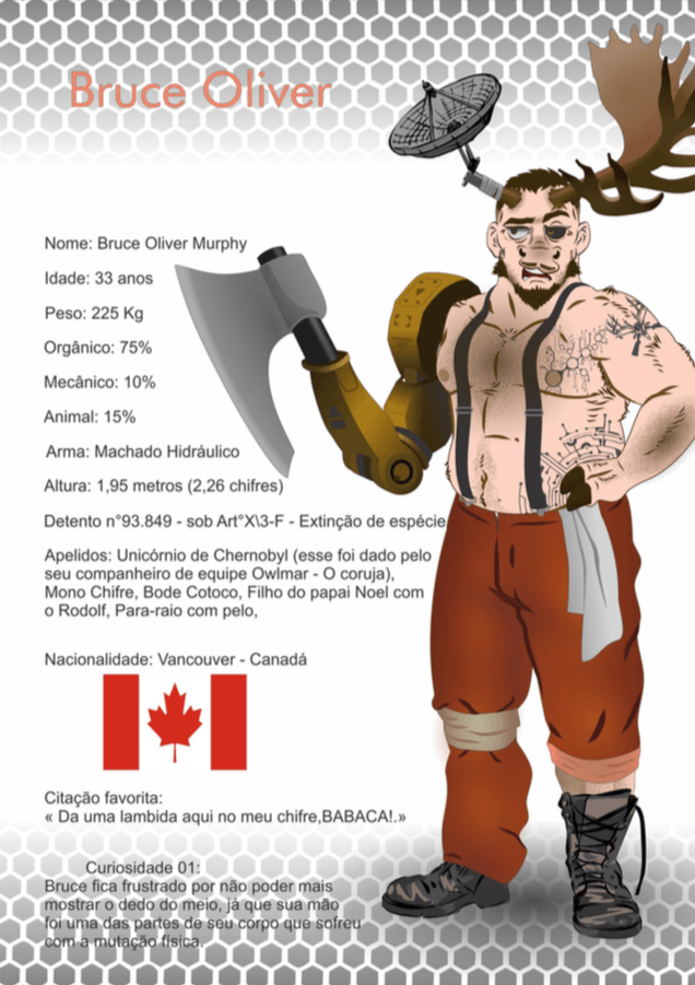 - Personagens - Pose de apresentação + acessórios + ficha técnica