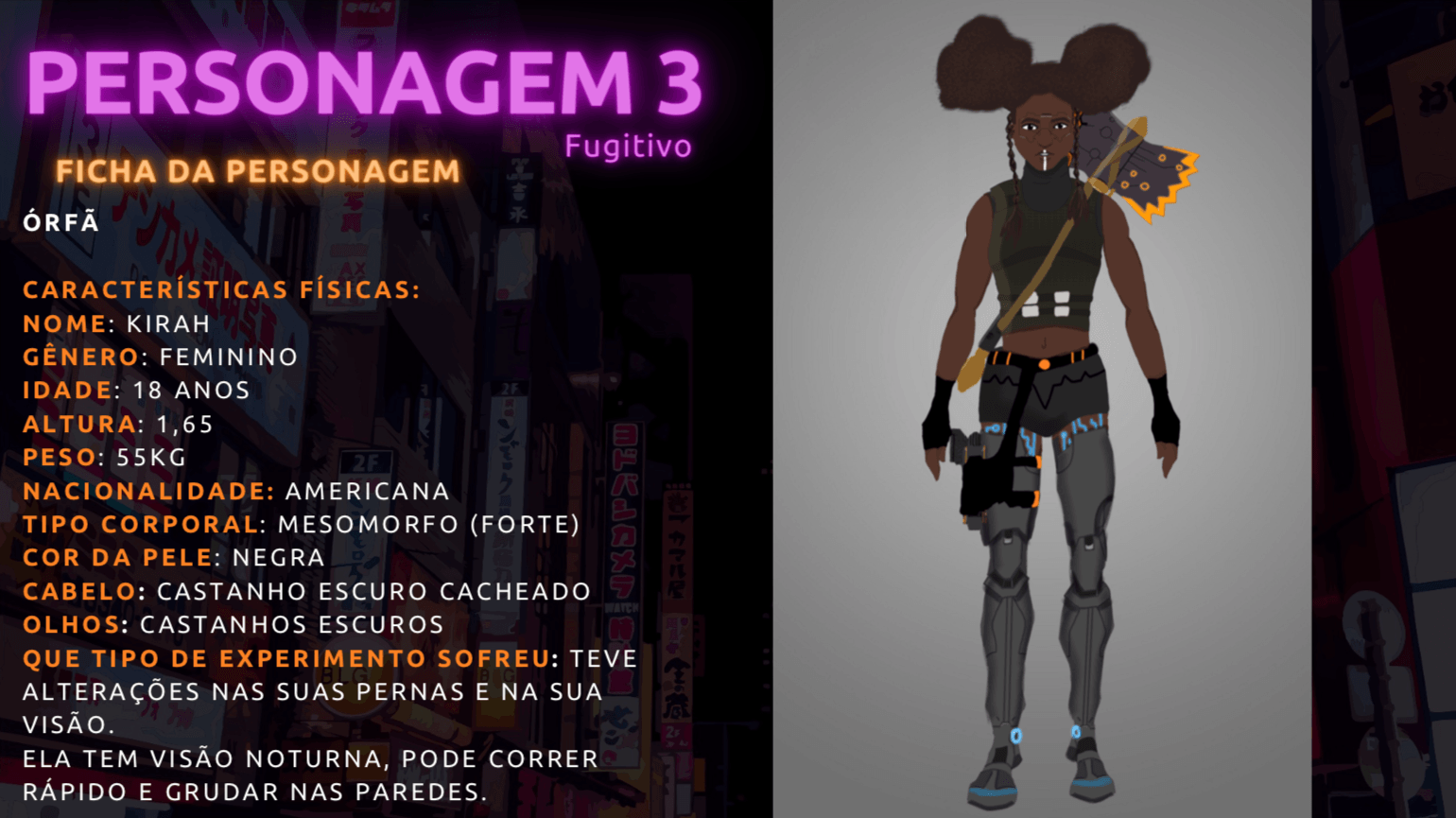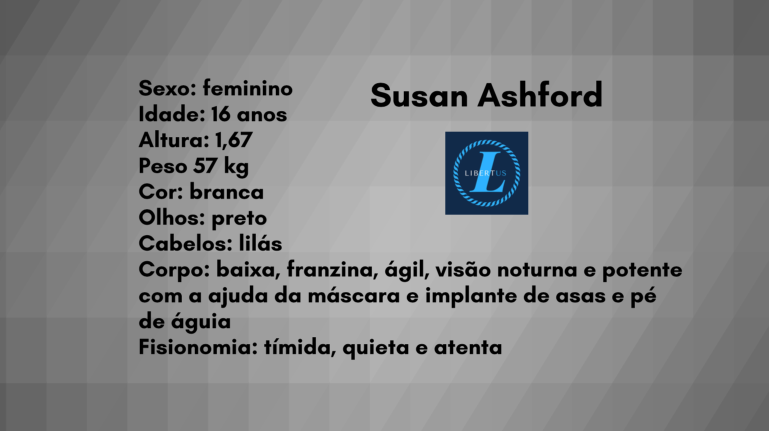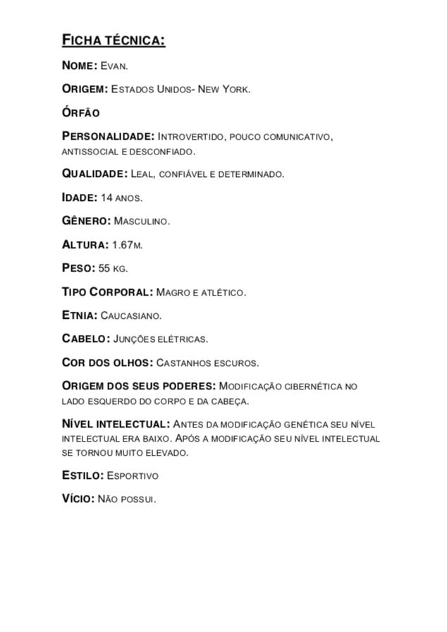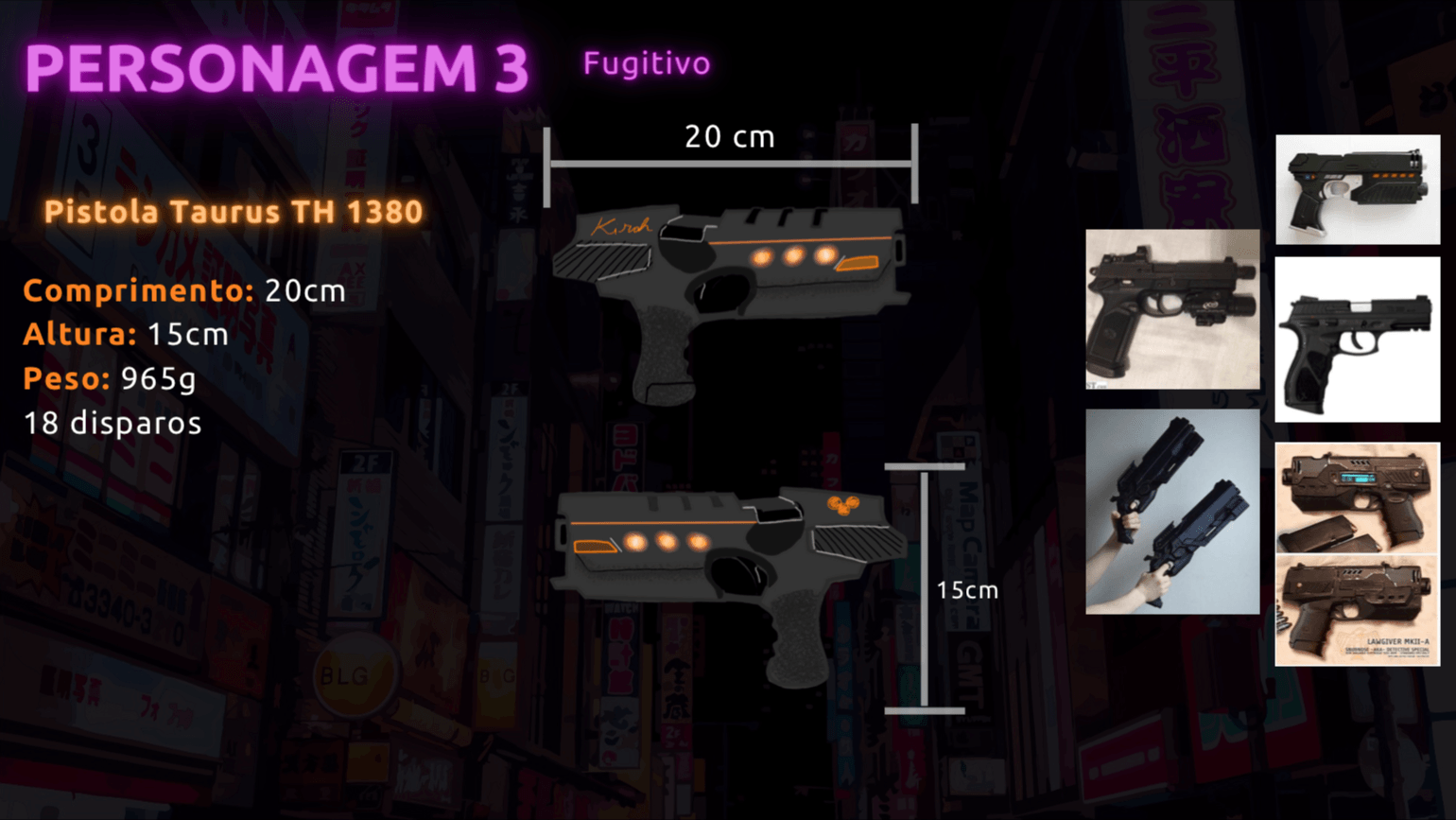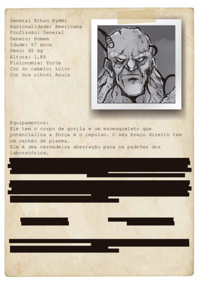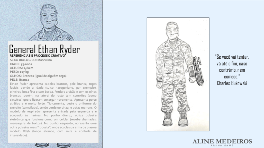 - Personagens - Pose de apresentação + acessórios + ficha técnica