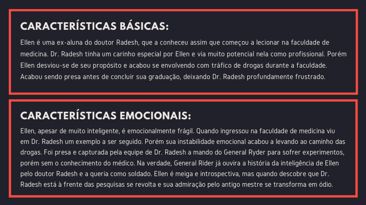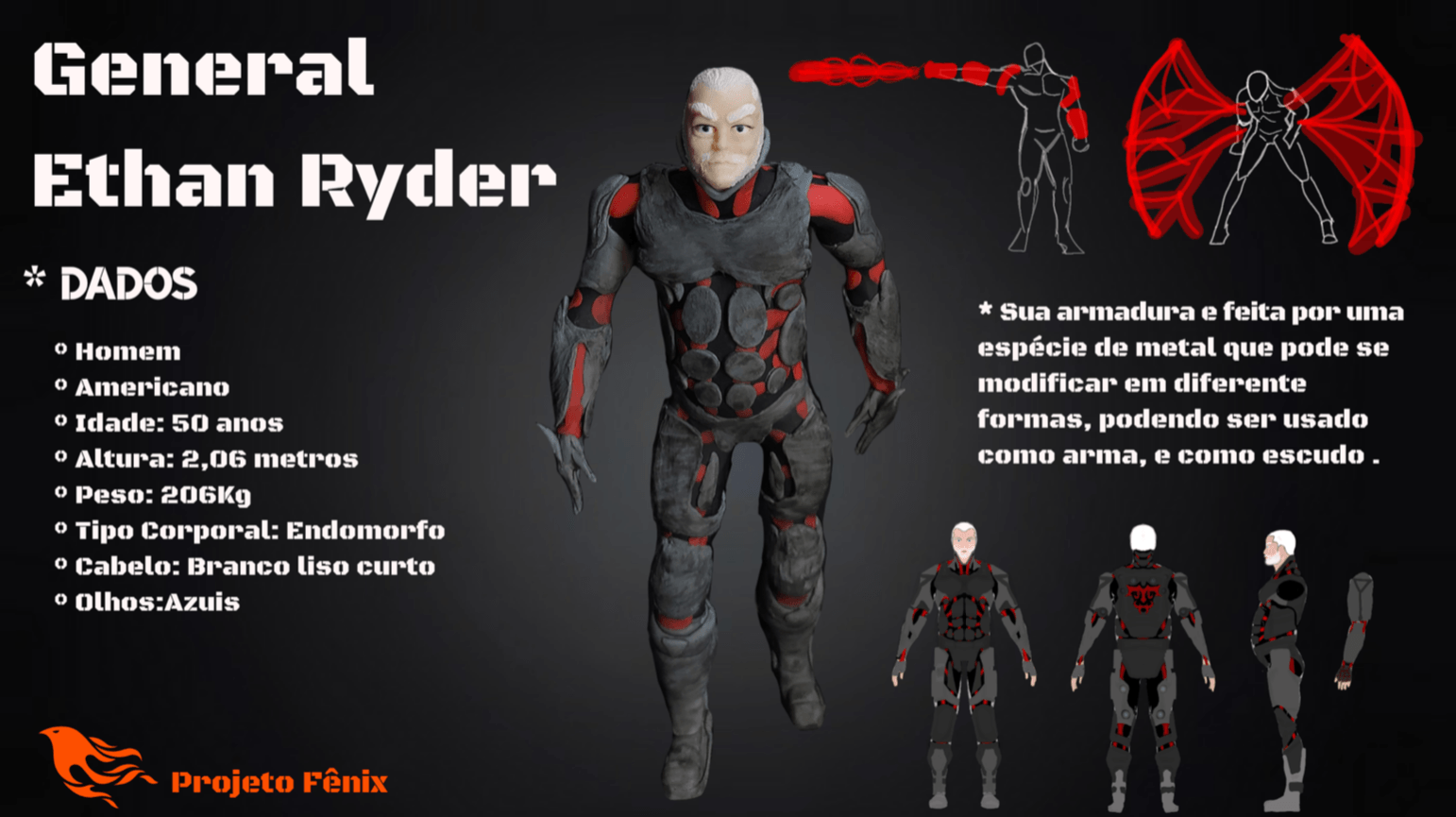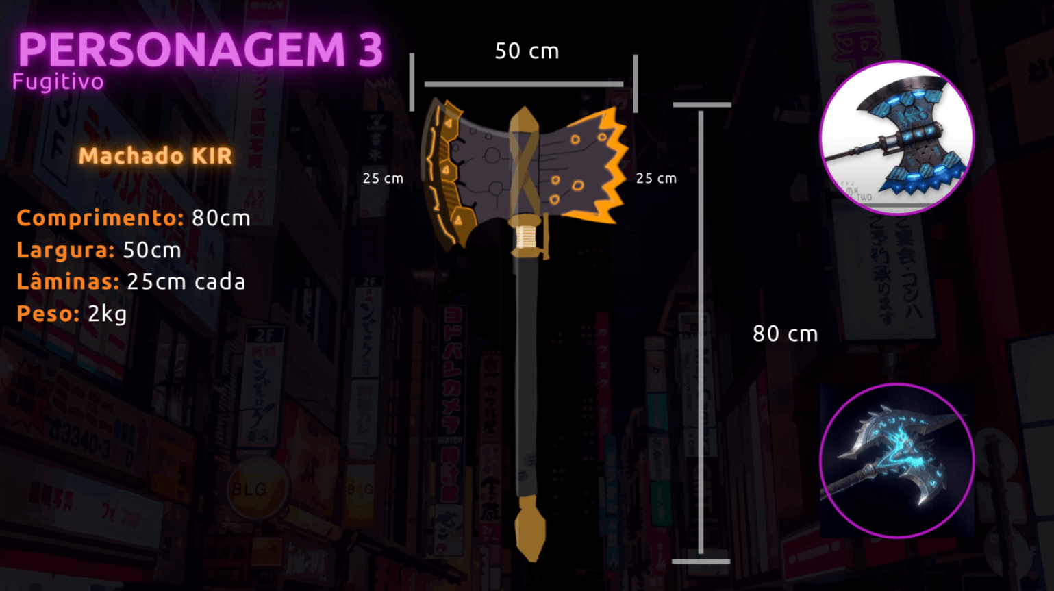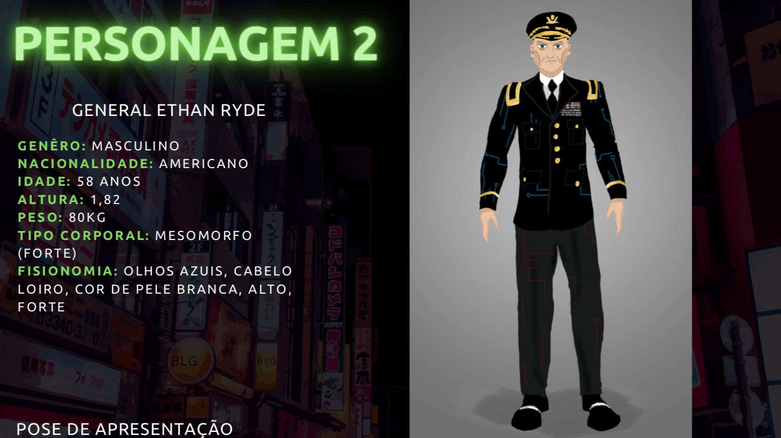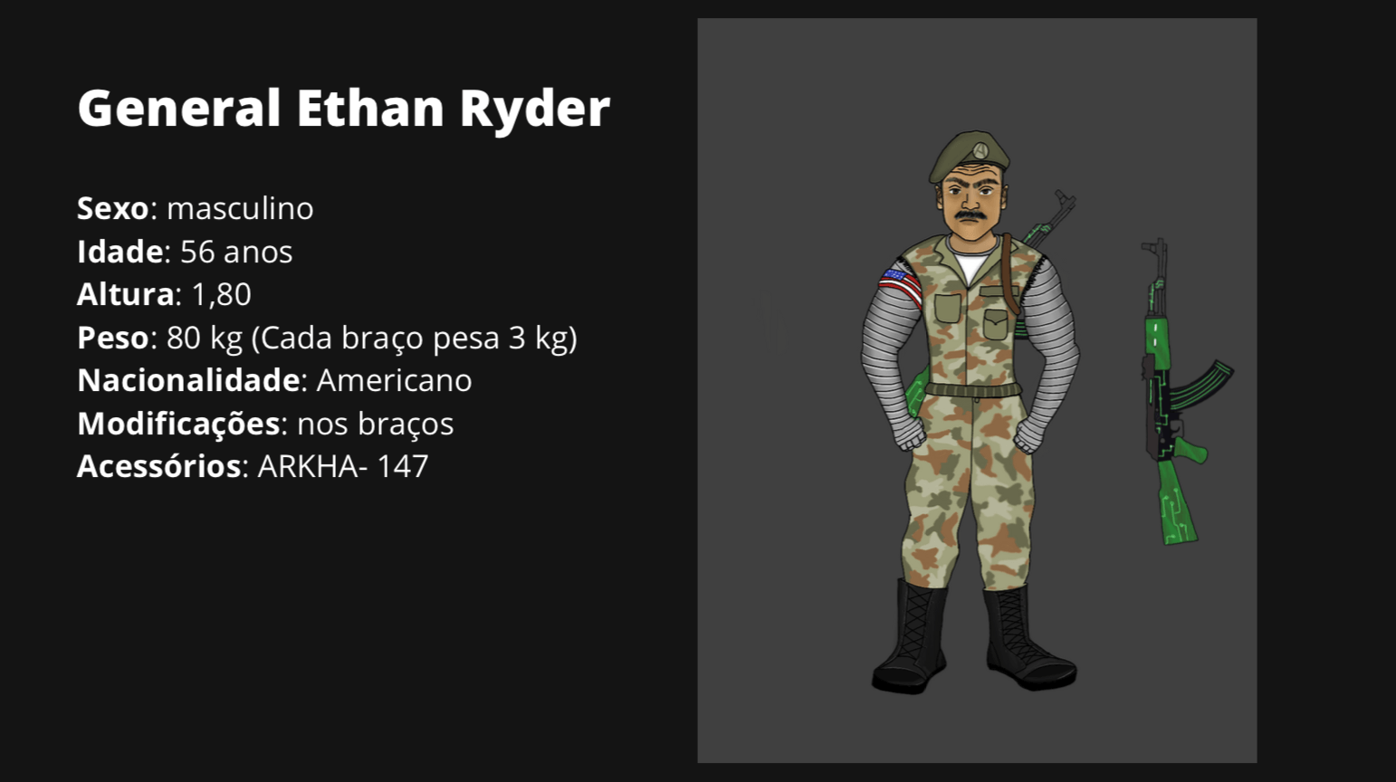- Personagens - Pose de apresentação + acessórios + ficha técnica