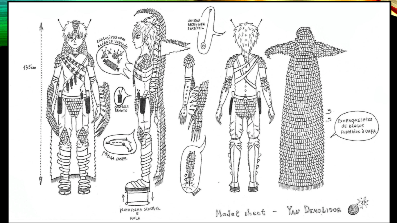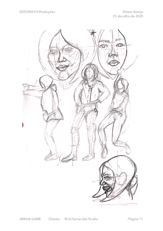 - Opcional personagens - Model sheet, ilustrações, pose de ação, estudos de expressão